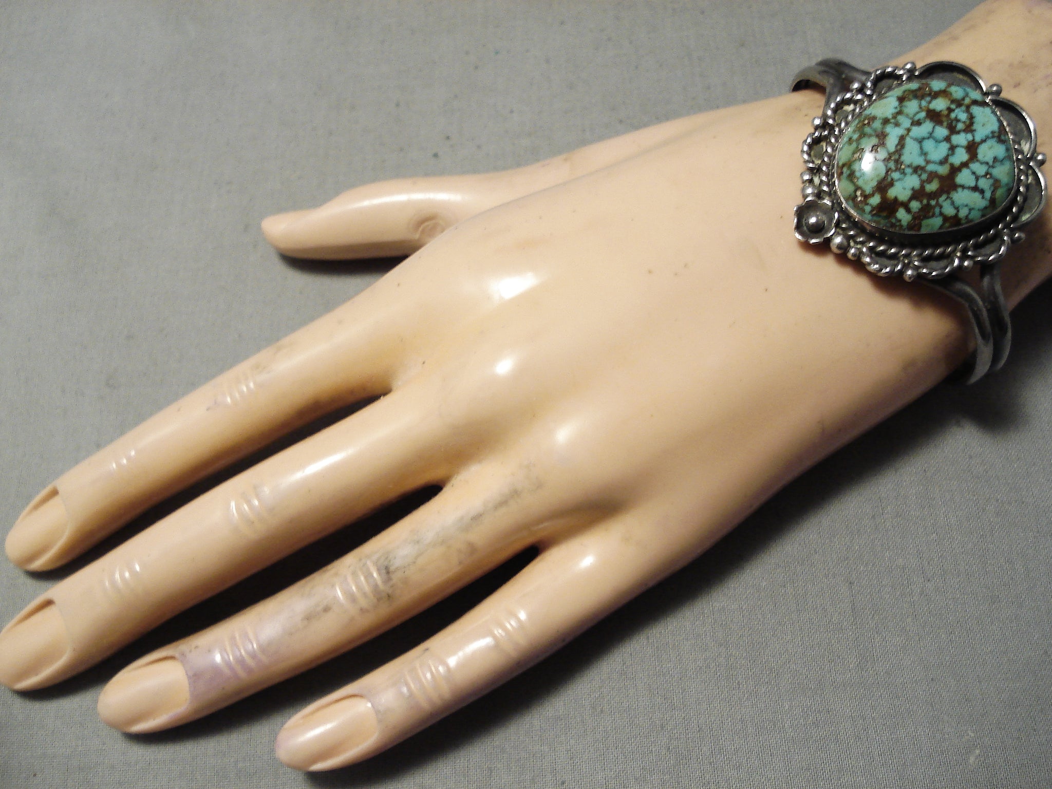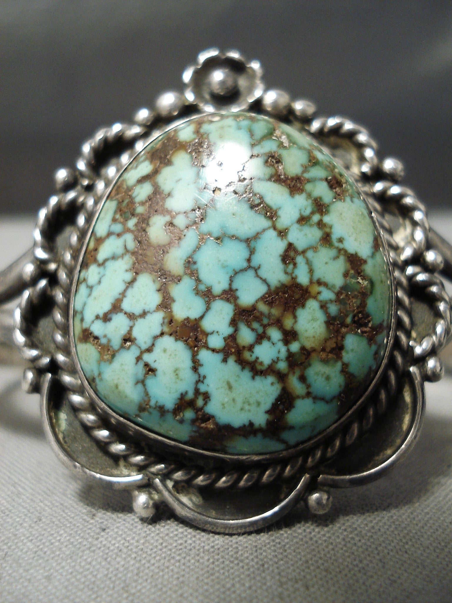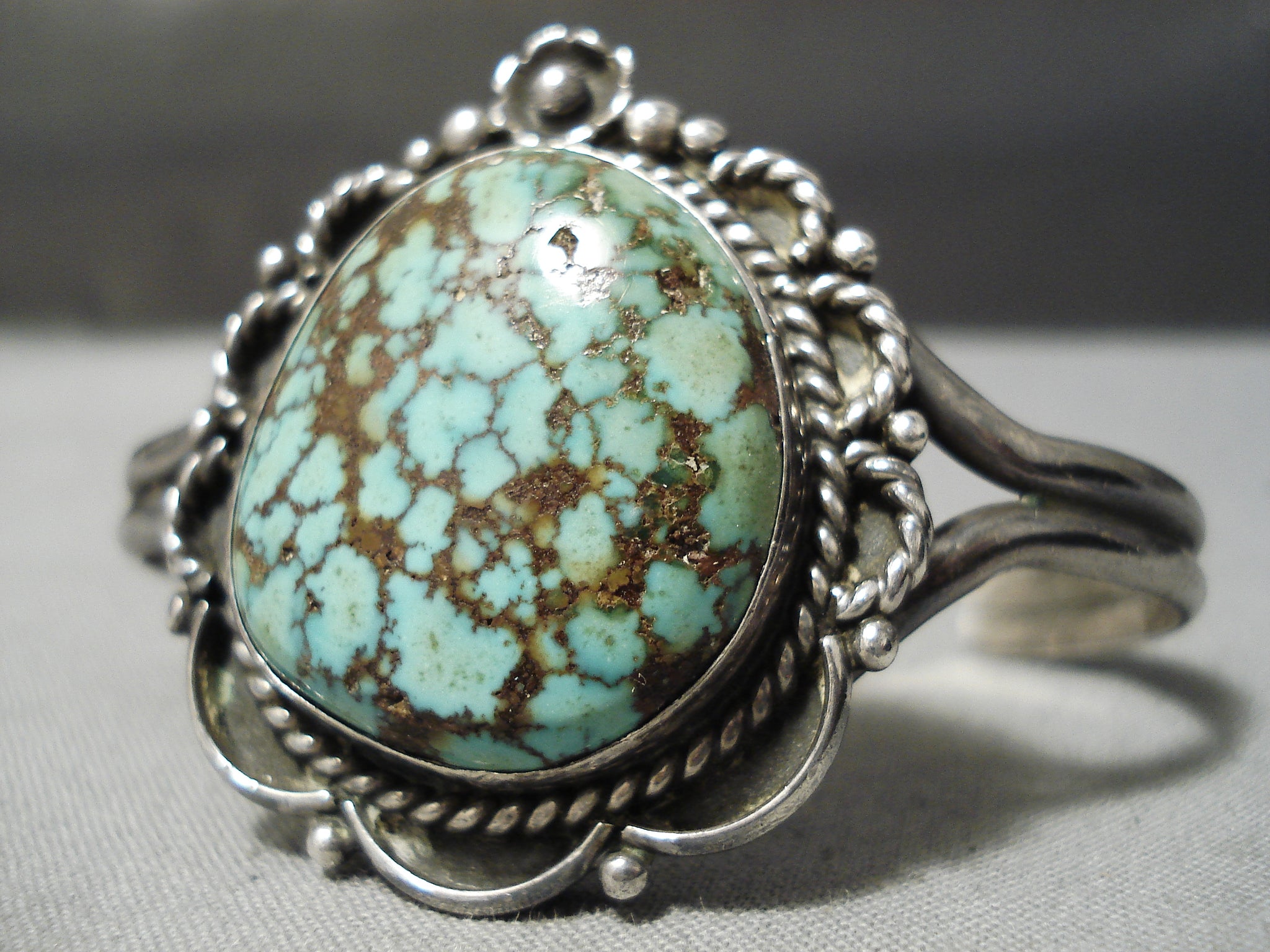 So Vivid!! Vintage Native American Navajo Carico Lake Turquoise Sterling Silver Bracelet Old