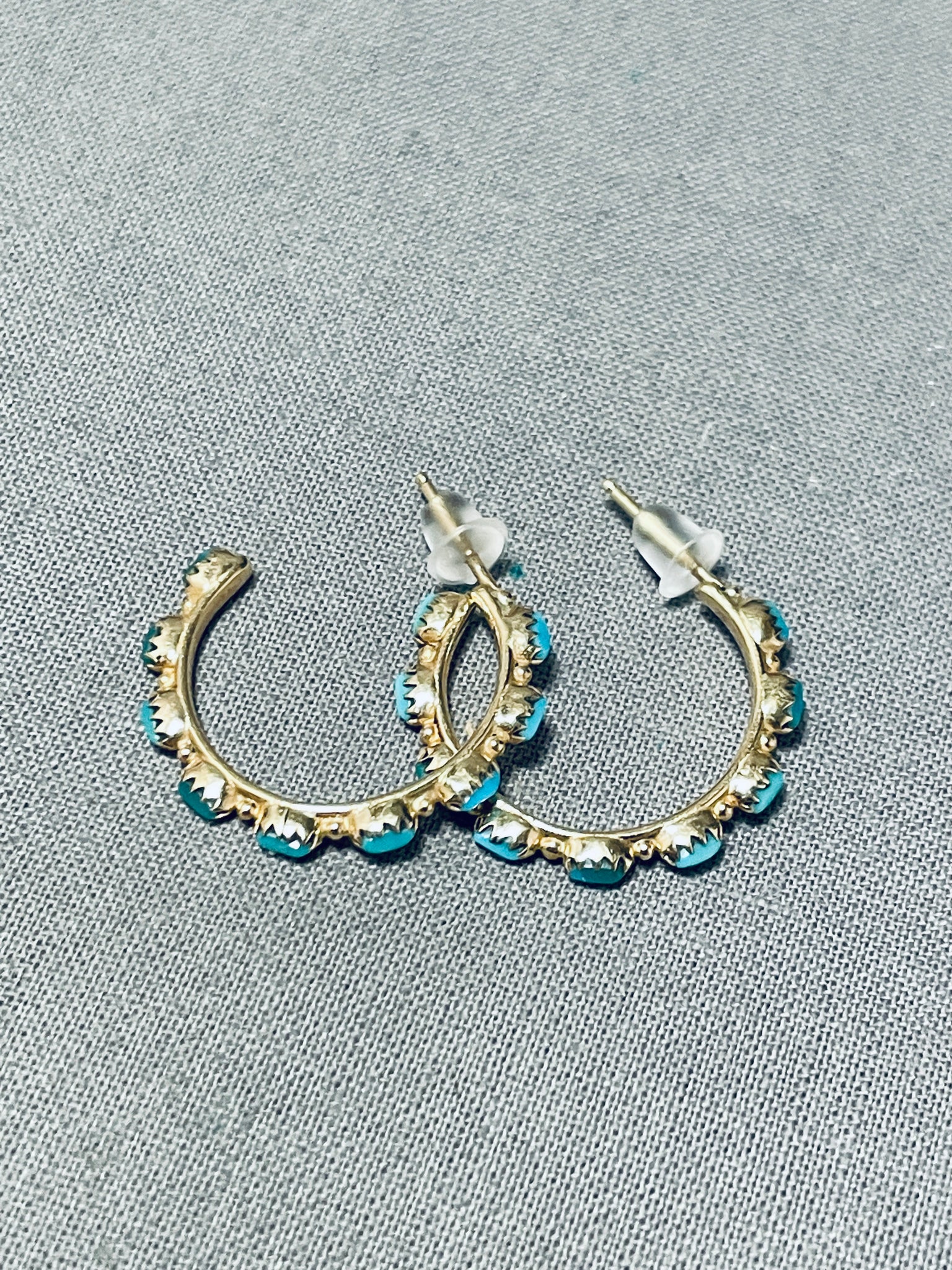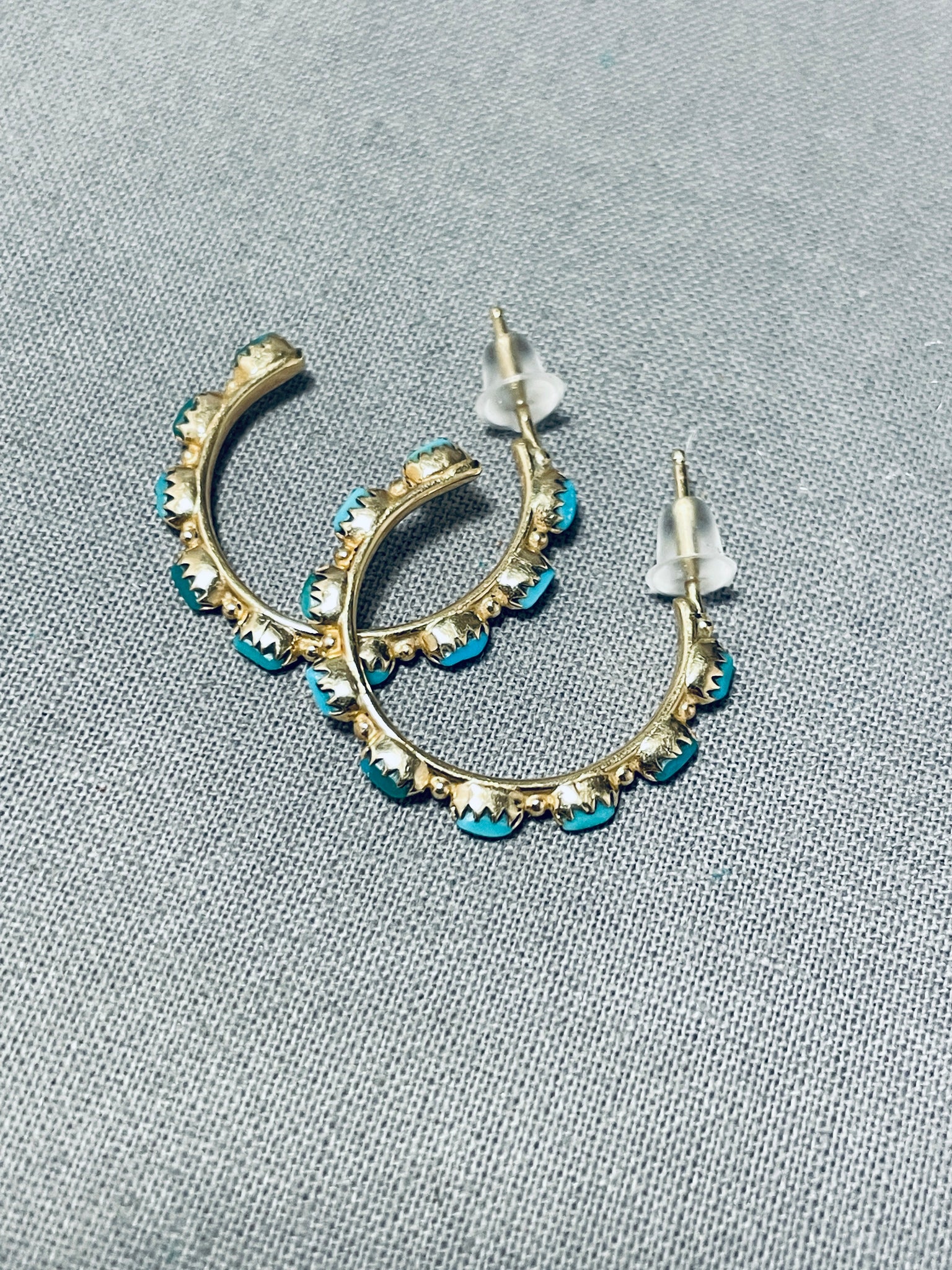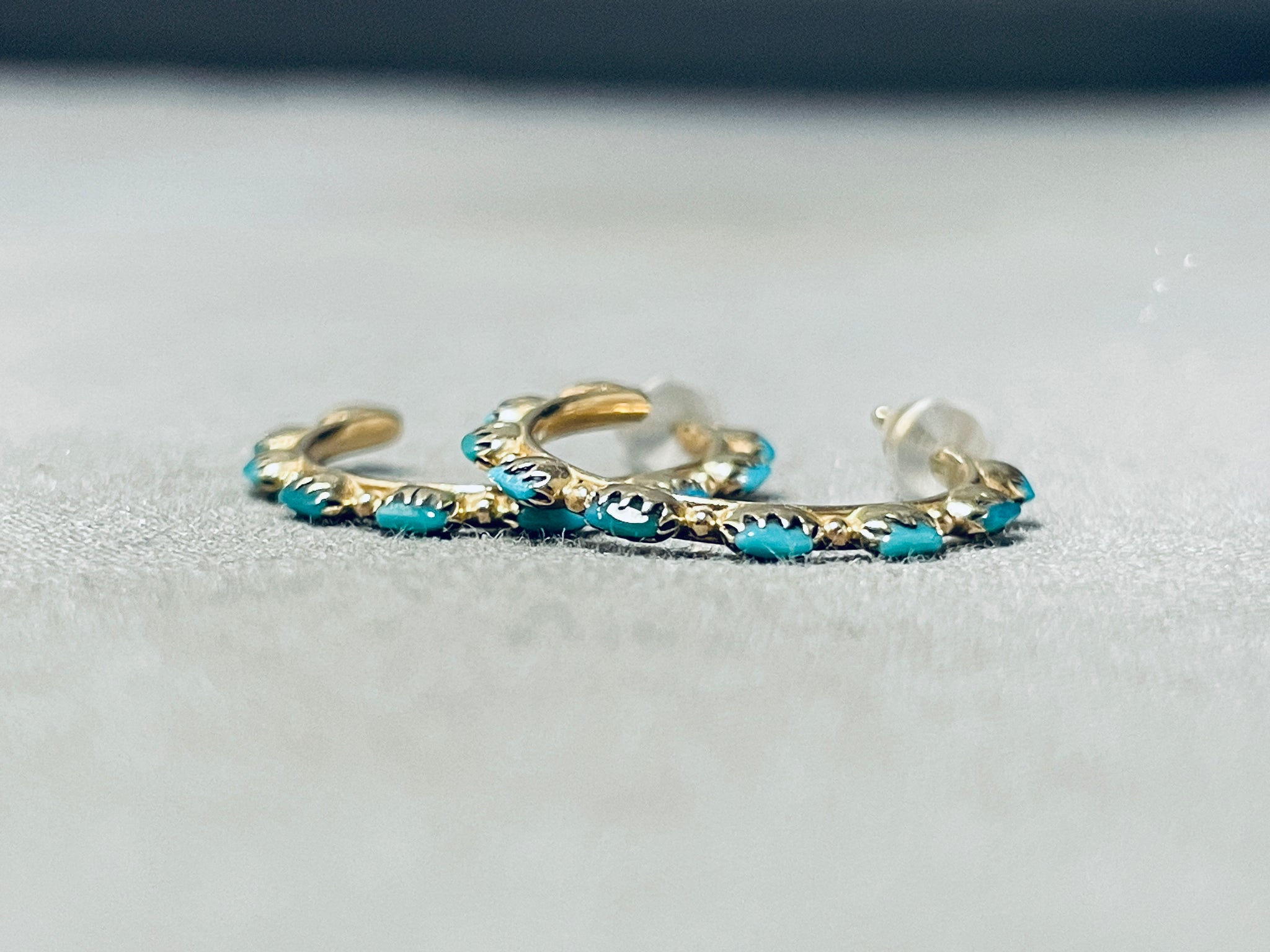 Solid 14 Gold Vintage Native American Navajo Turquoise Earrings