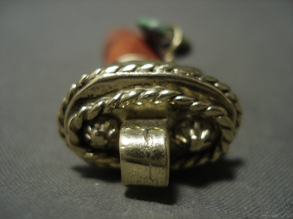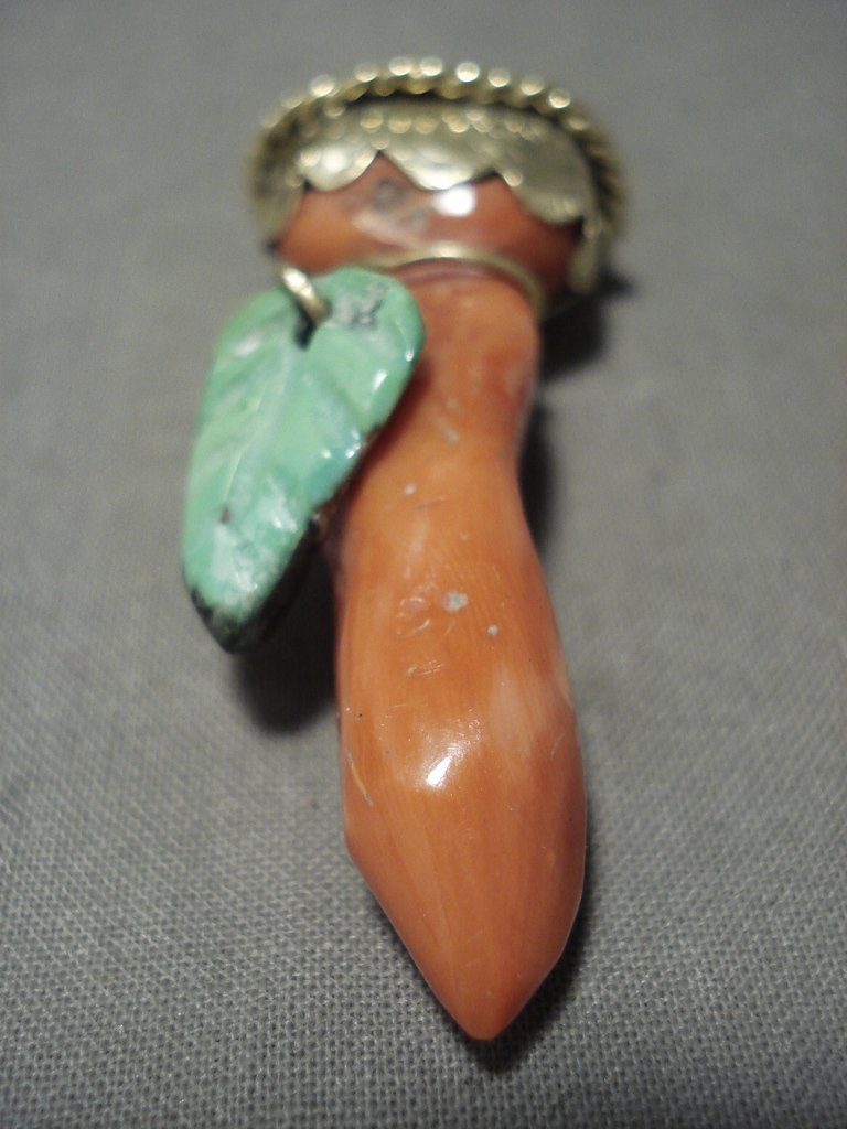 Solid 18k Gold Huge Coral Lime Green Turquoise Pendant