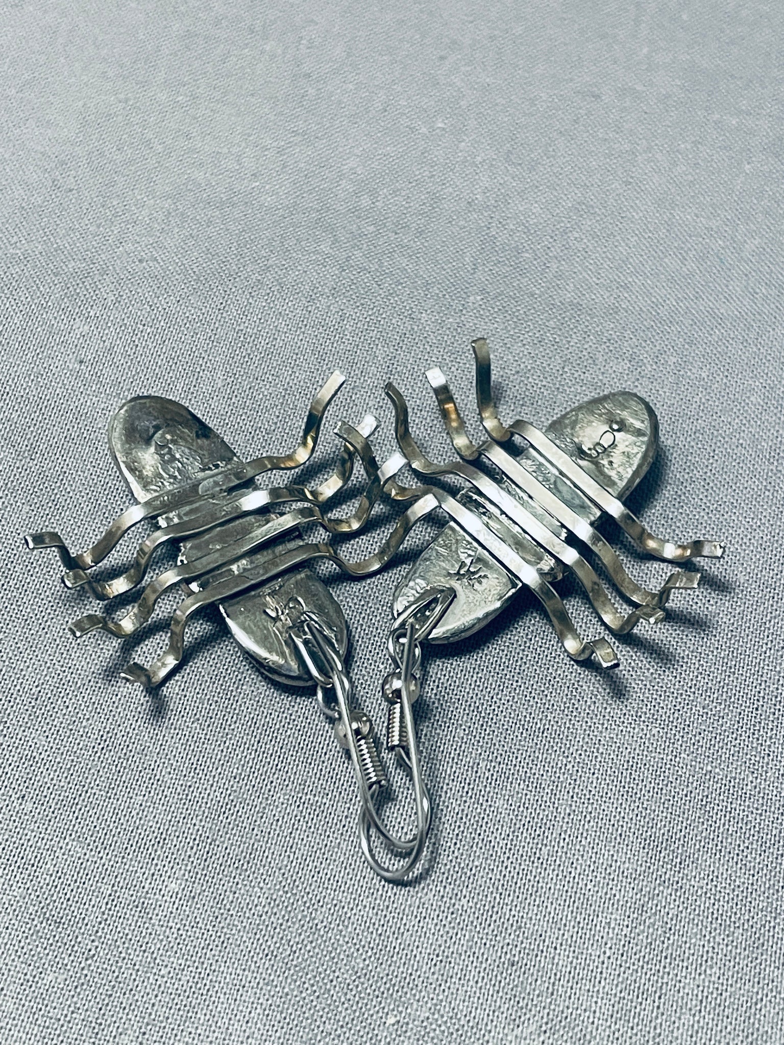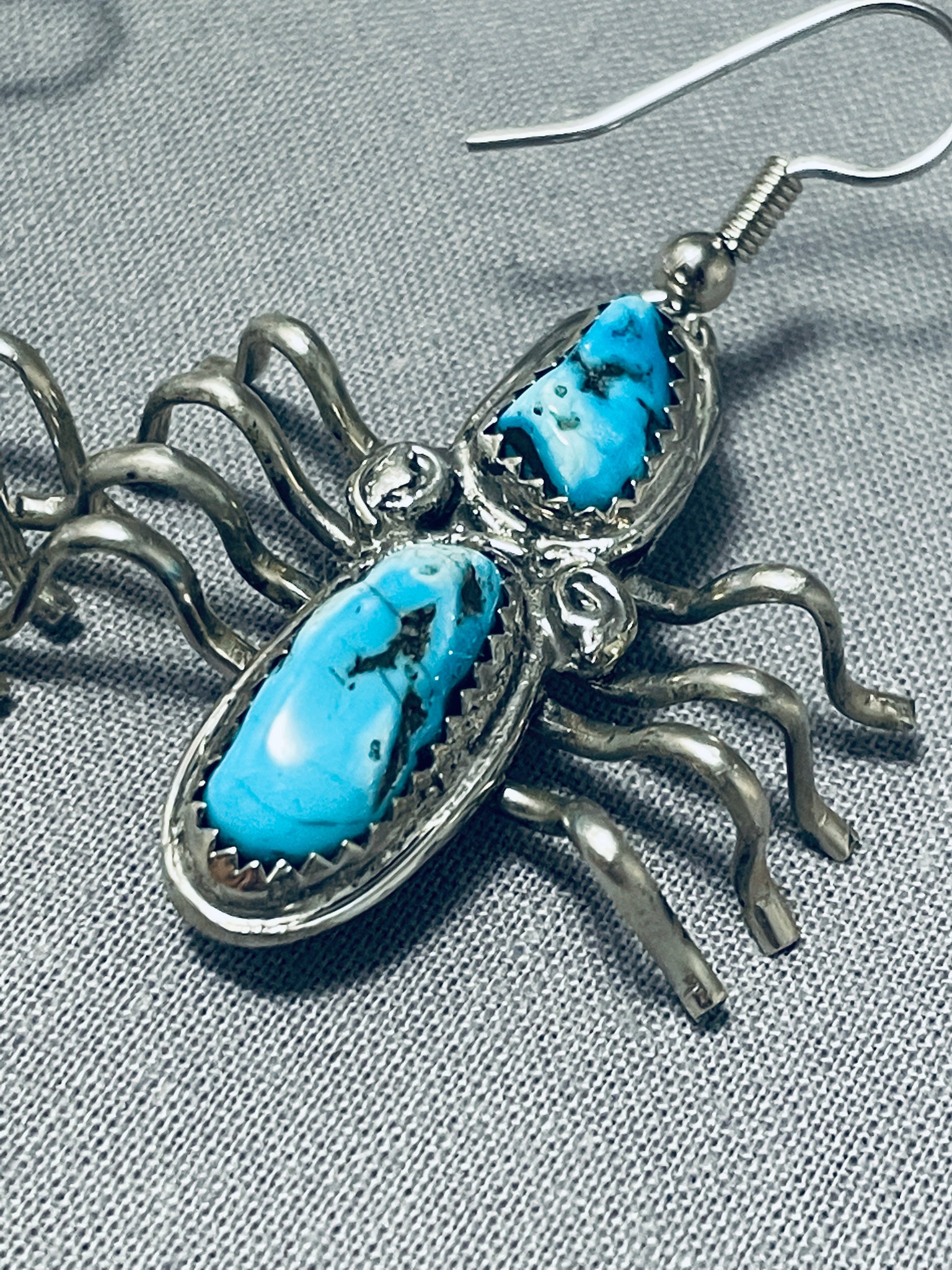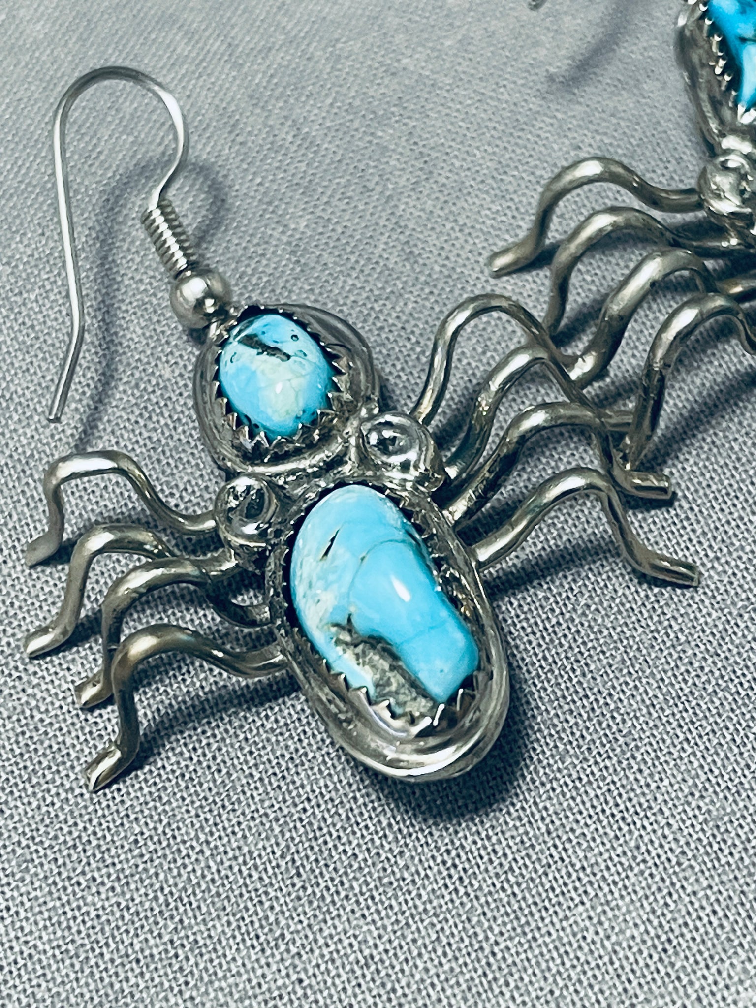 Sonunique Vintage Native American Navajo Spider Turquoise Sterling Silver Earrings