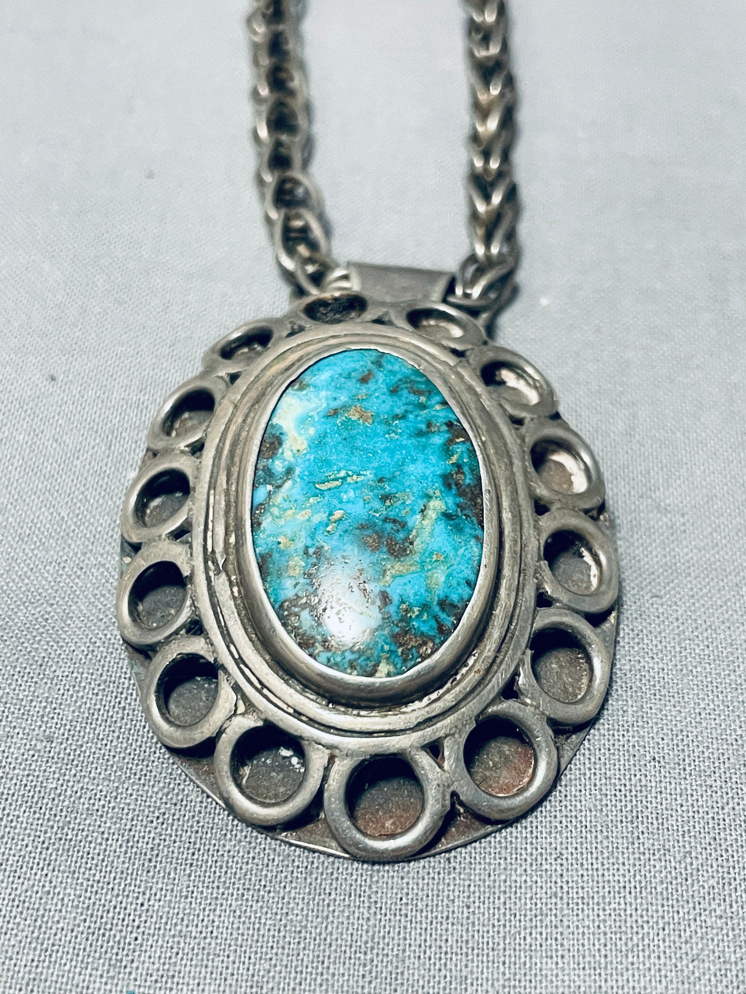 Southwest Amazing Blue Gem Turquoise Sterling Silver Necklace