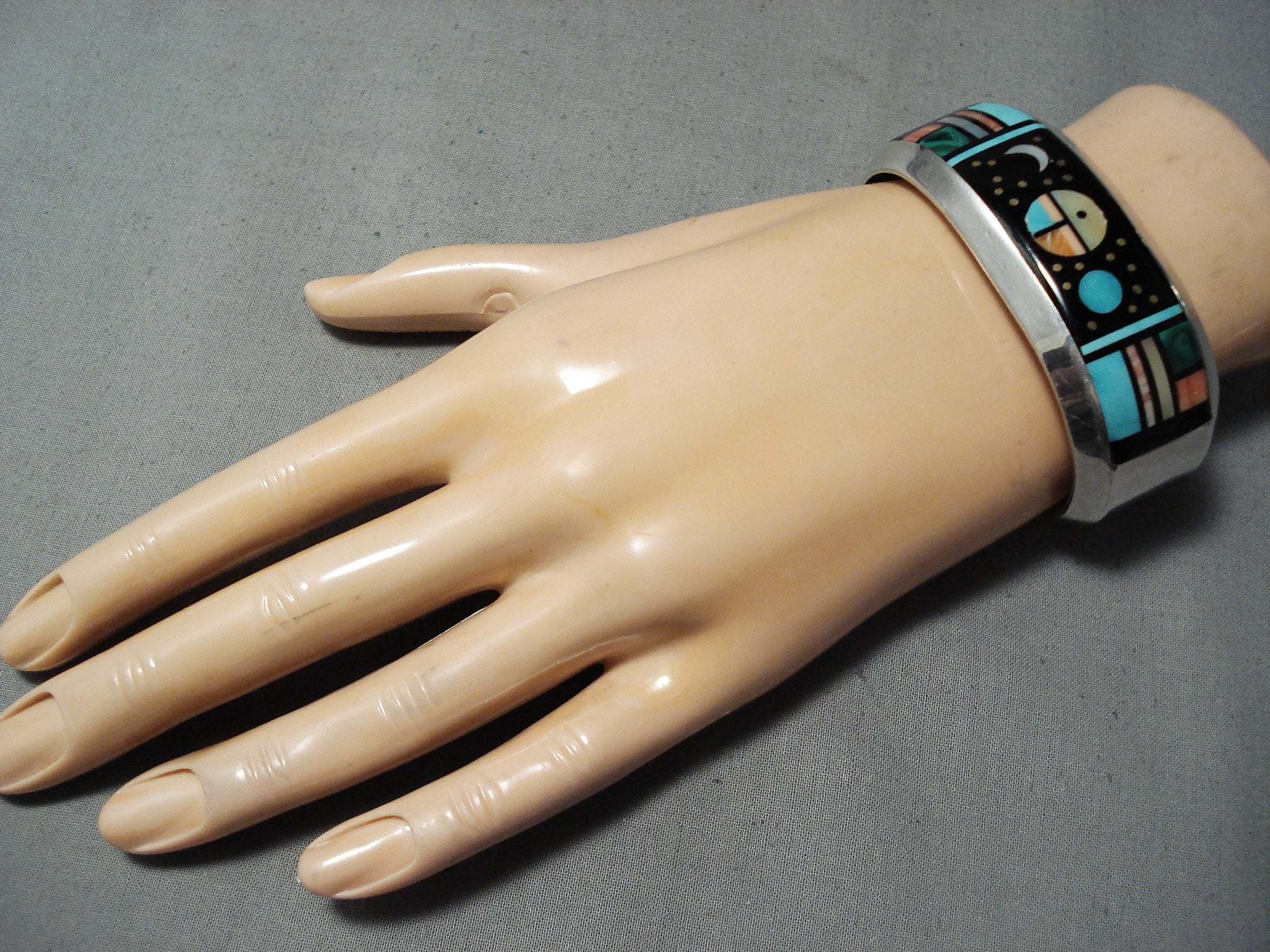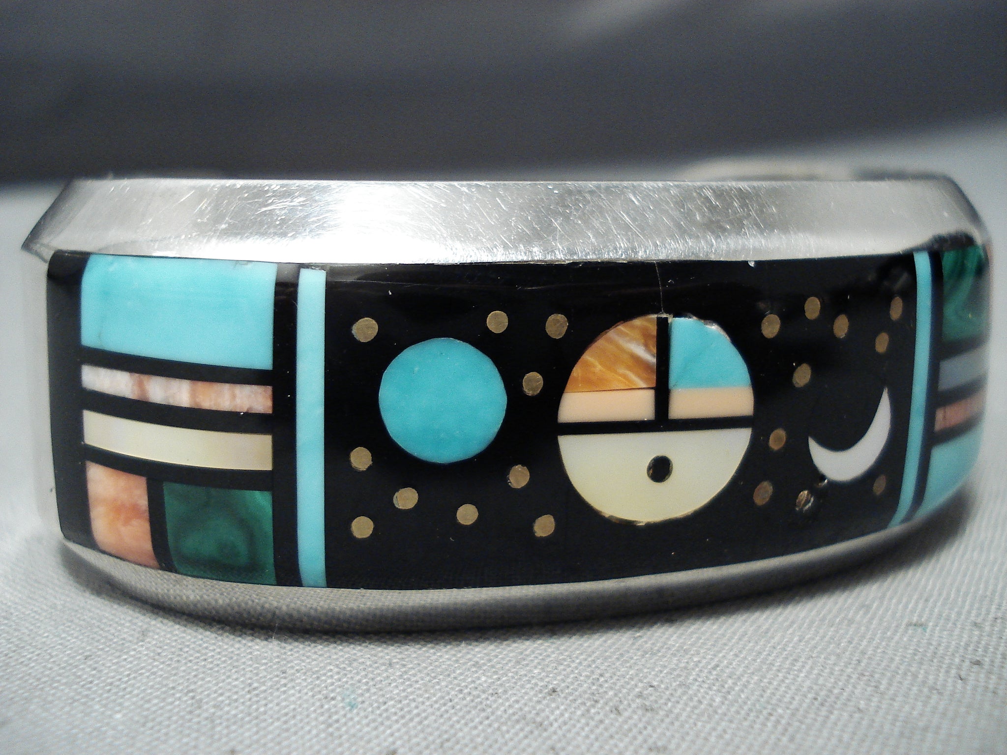 Space Inlay Vintage Native American Navajo Turquoise Sterling Silver Bracelet Cuff