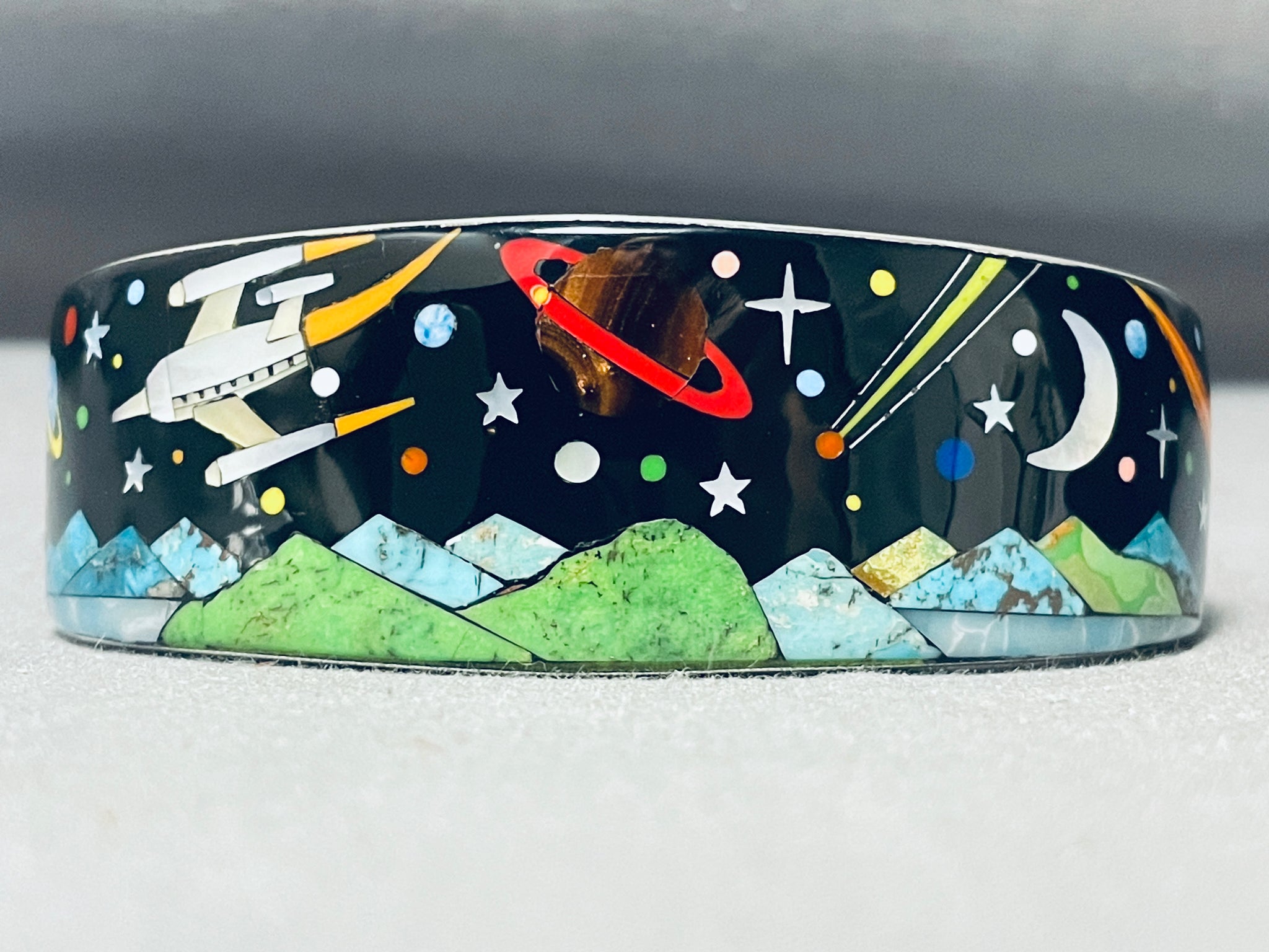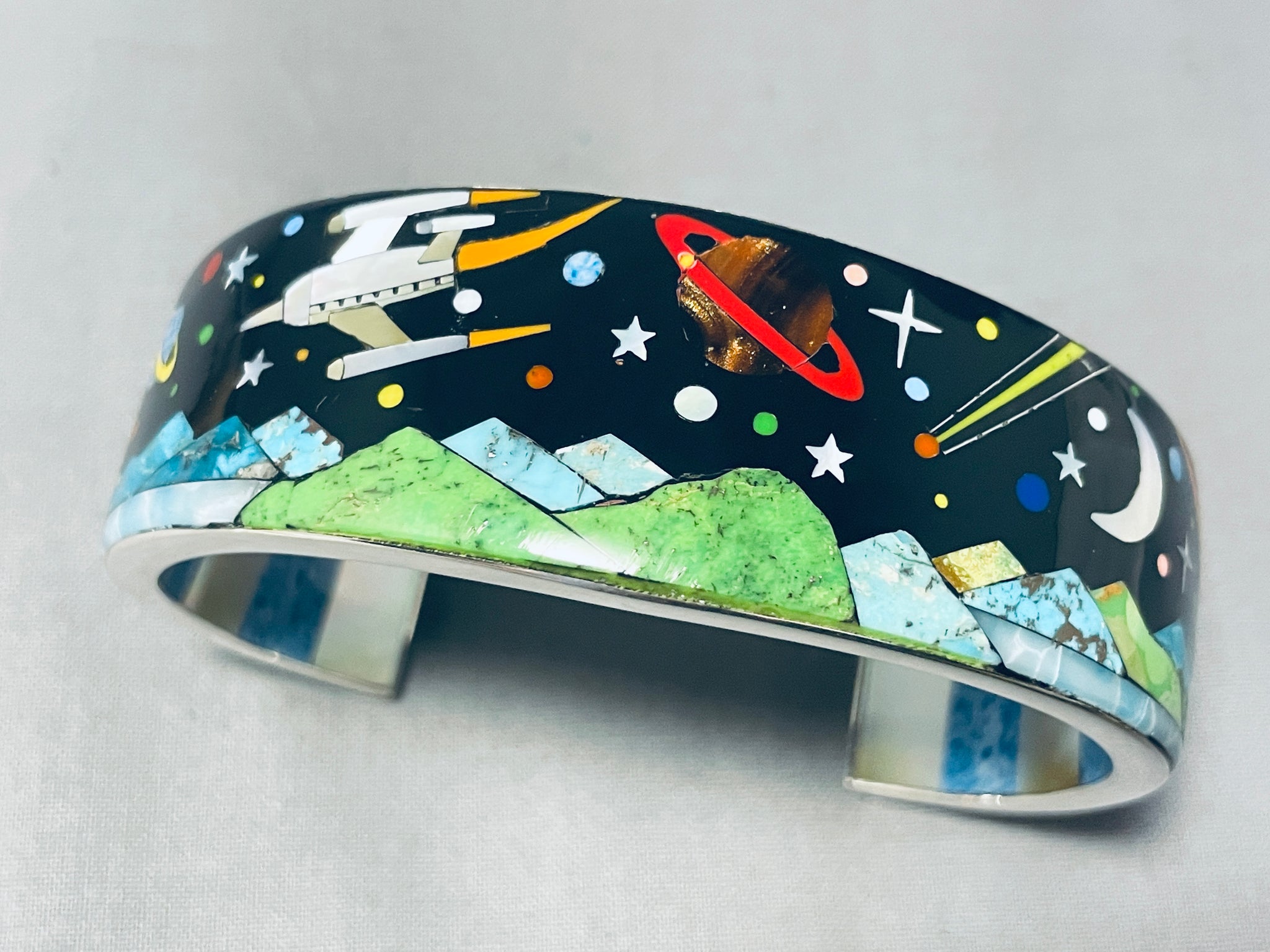 Spaceship Southwestern Turquoise Sterling Silver Inlay Bracelet
