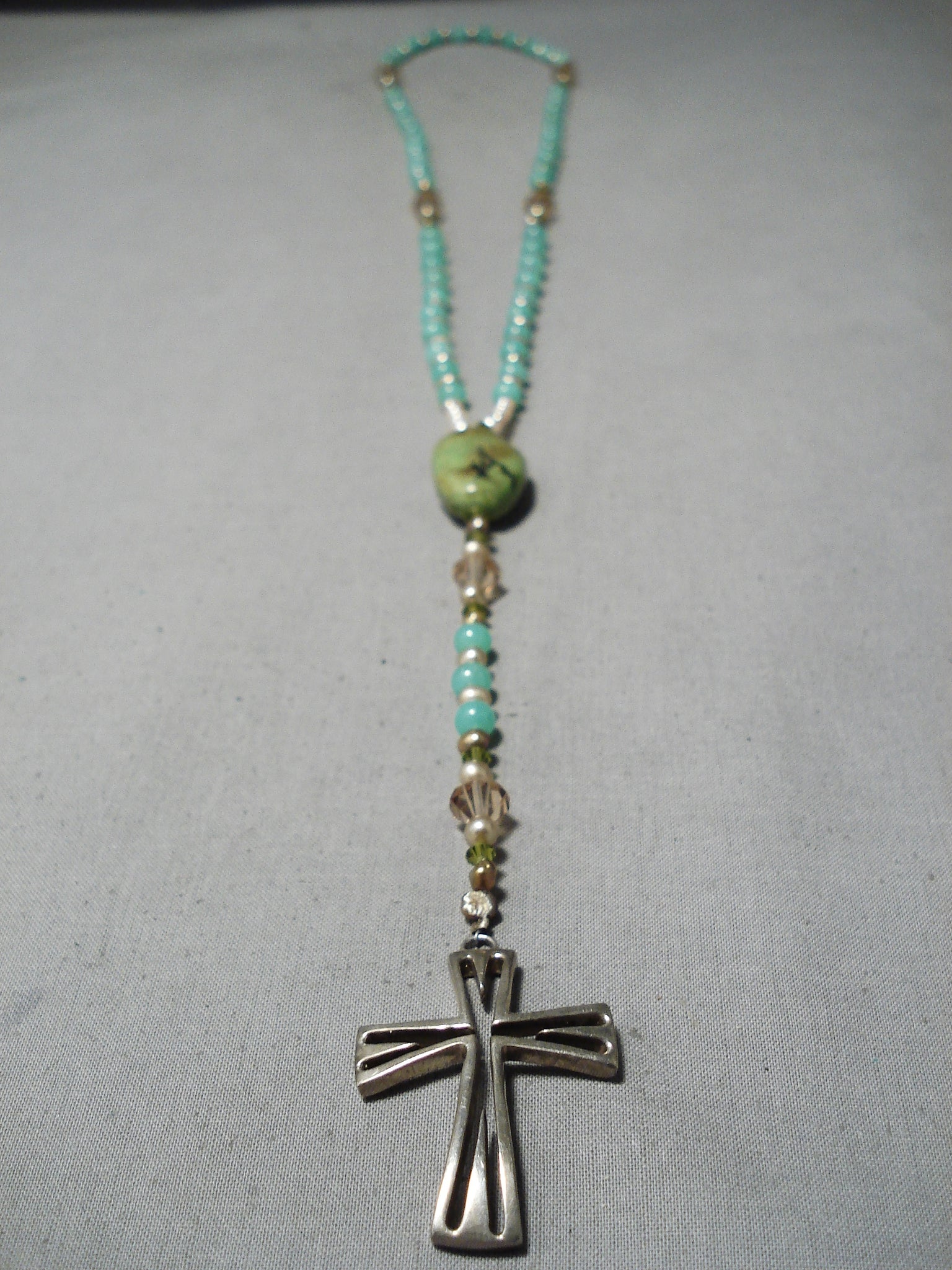 Special Navajo Chrysophrase Sterling Silver Rosary Necklace Native American