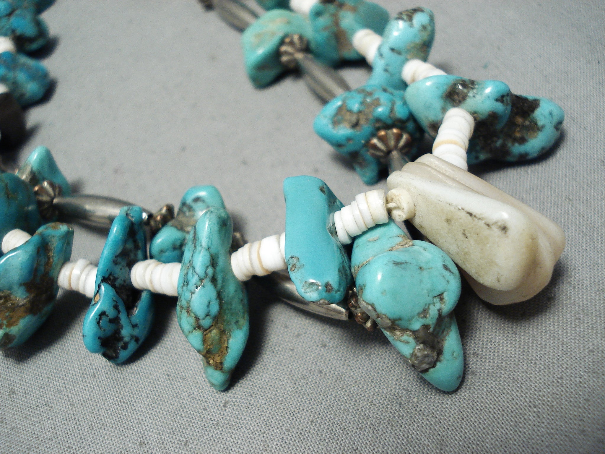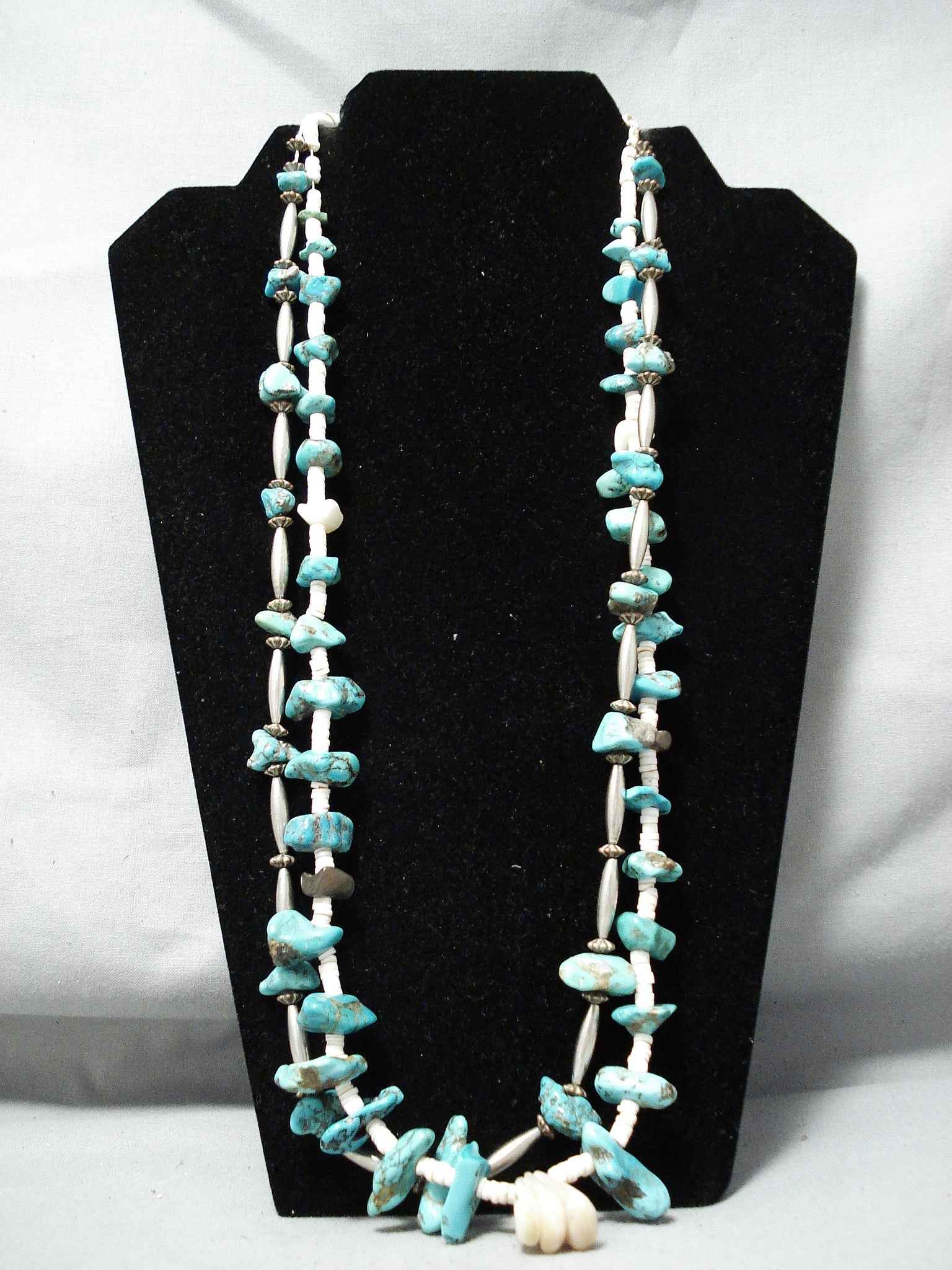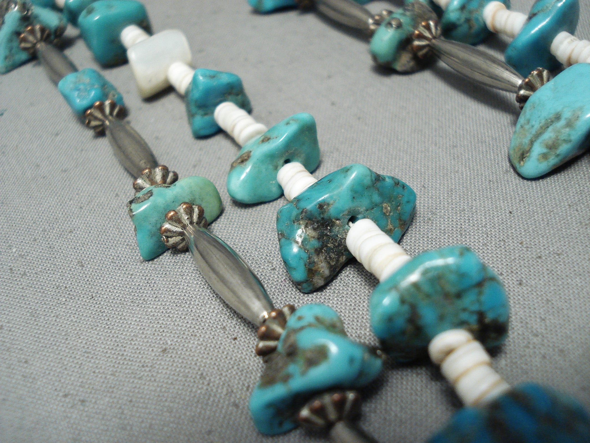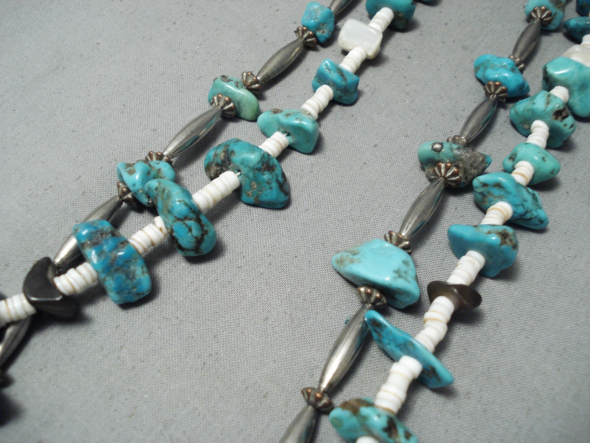 Special Vintage Native American Navajo Royston & Kingman Turquoise Sterling Silver Necklace Old