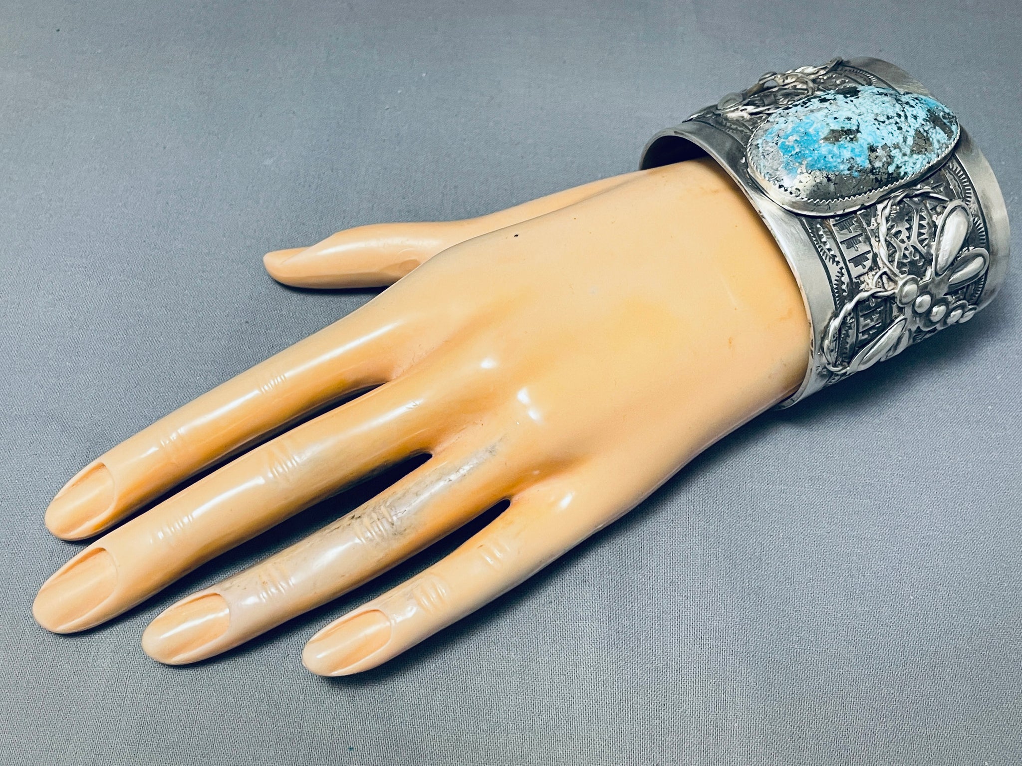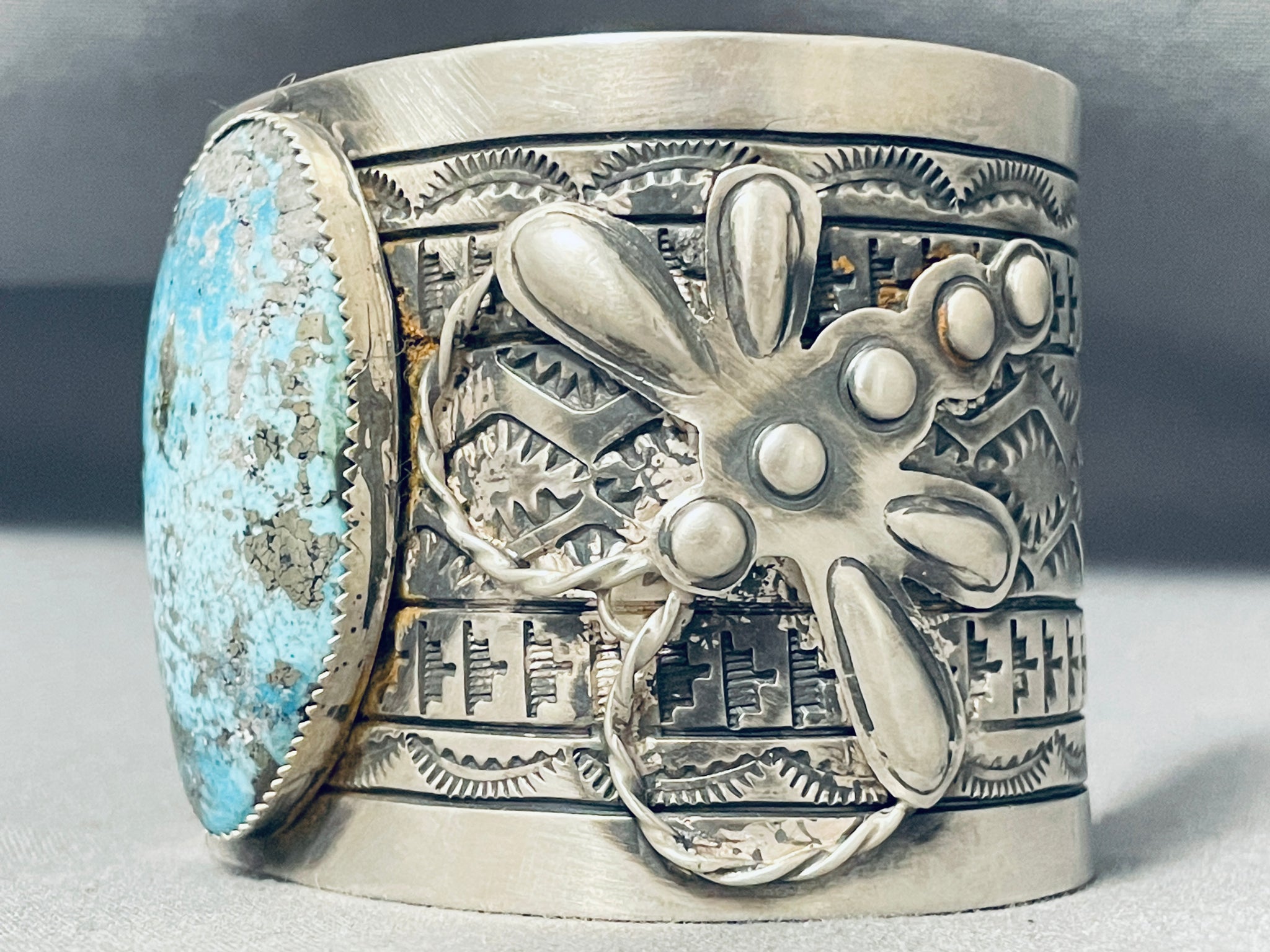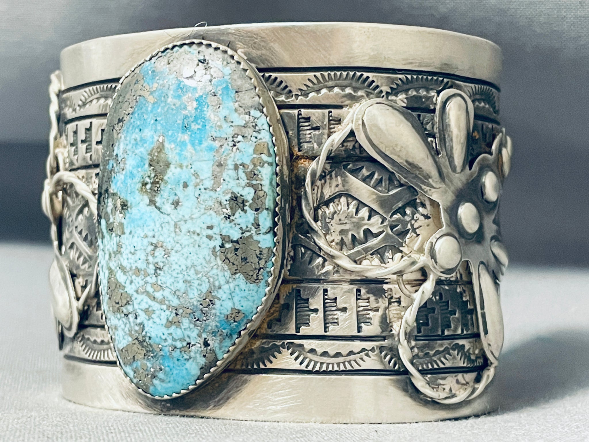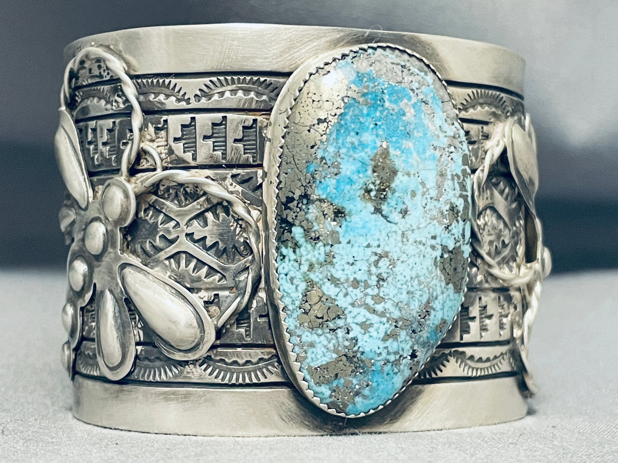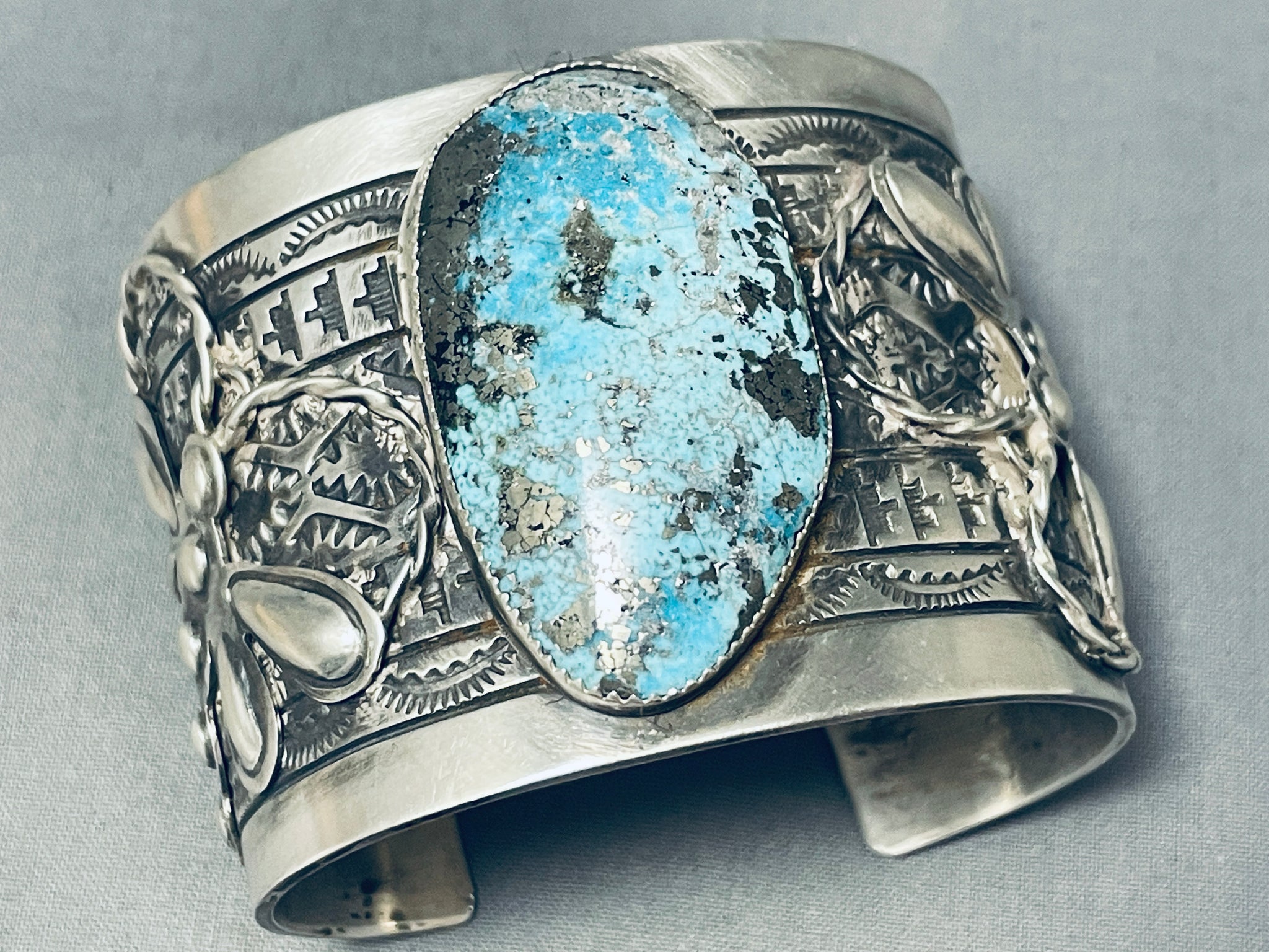 Spectacular Native American Navajo Blue Diamond Turquoise Sterling Silver Bracelet Signed
