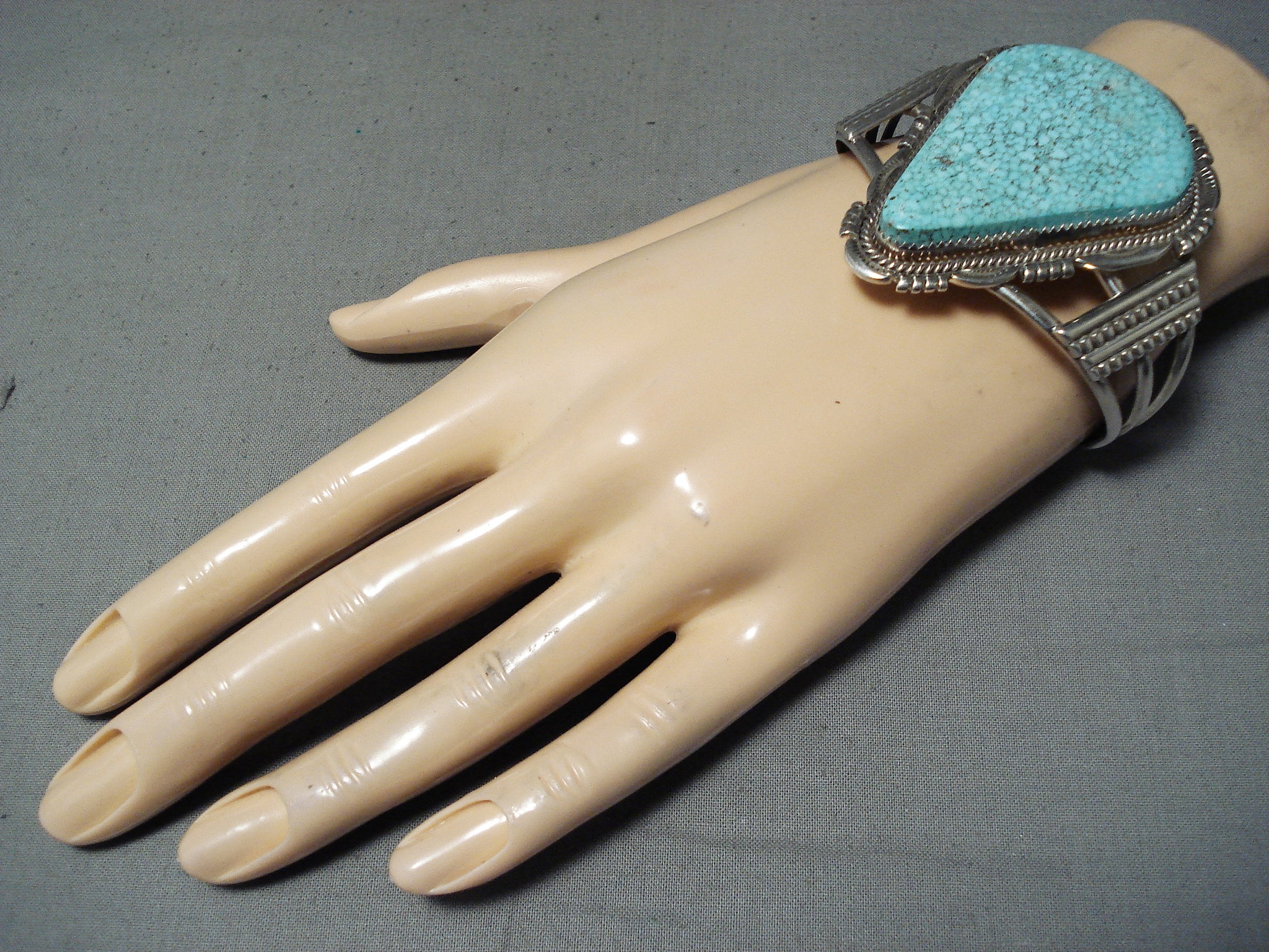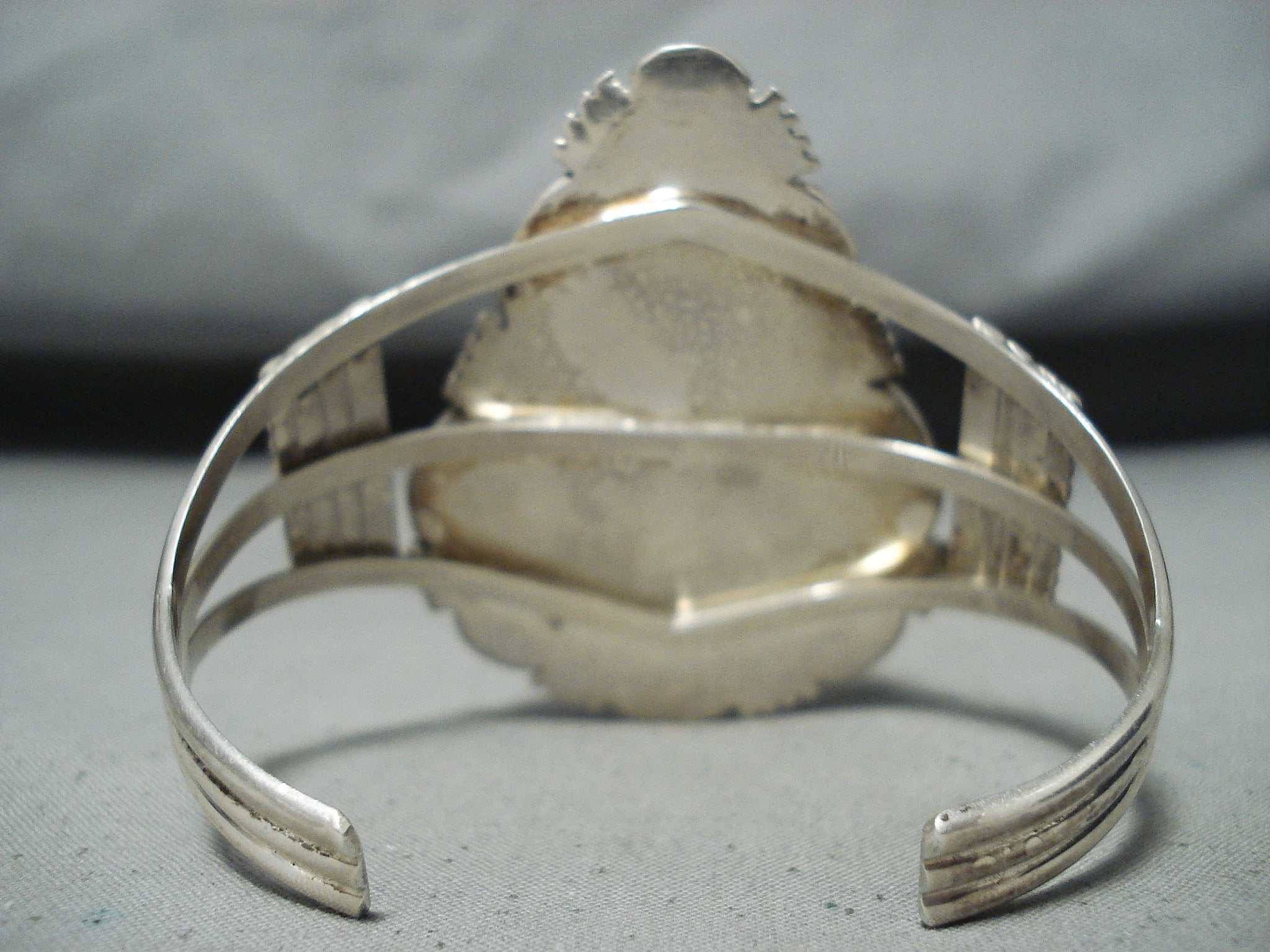 Spectacular Native American Navajo Signed Tight Spiderweb Turquoise Sterling Silver Bracelet