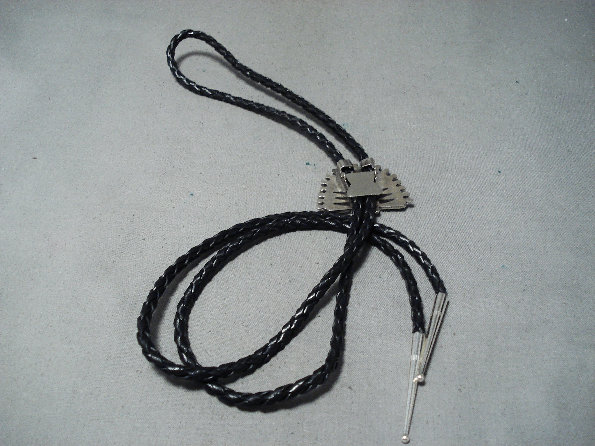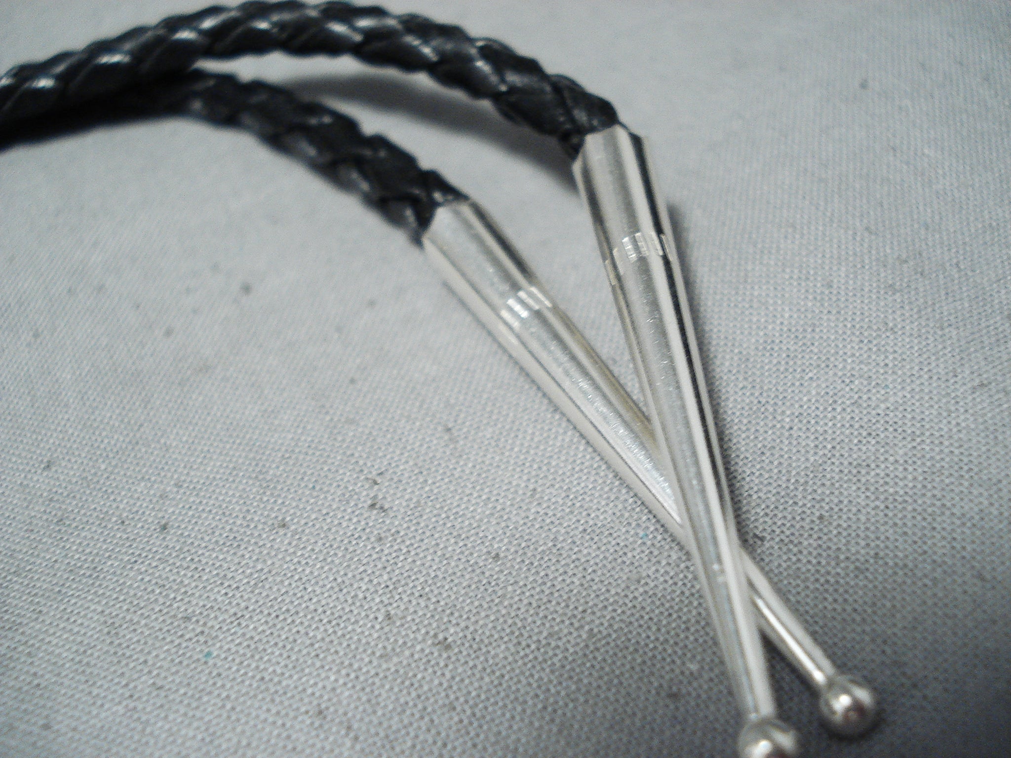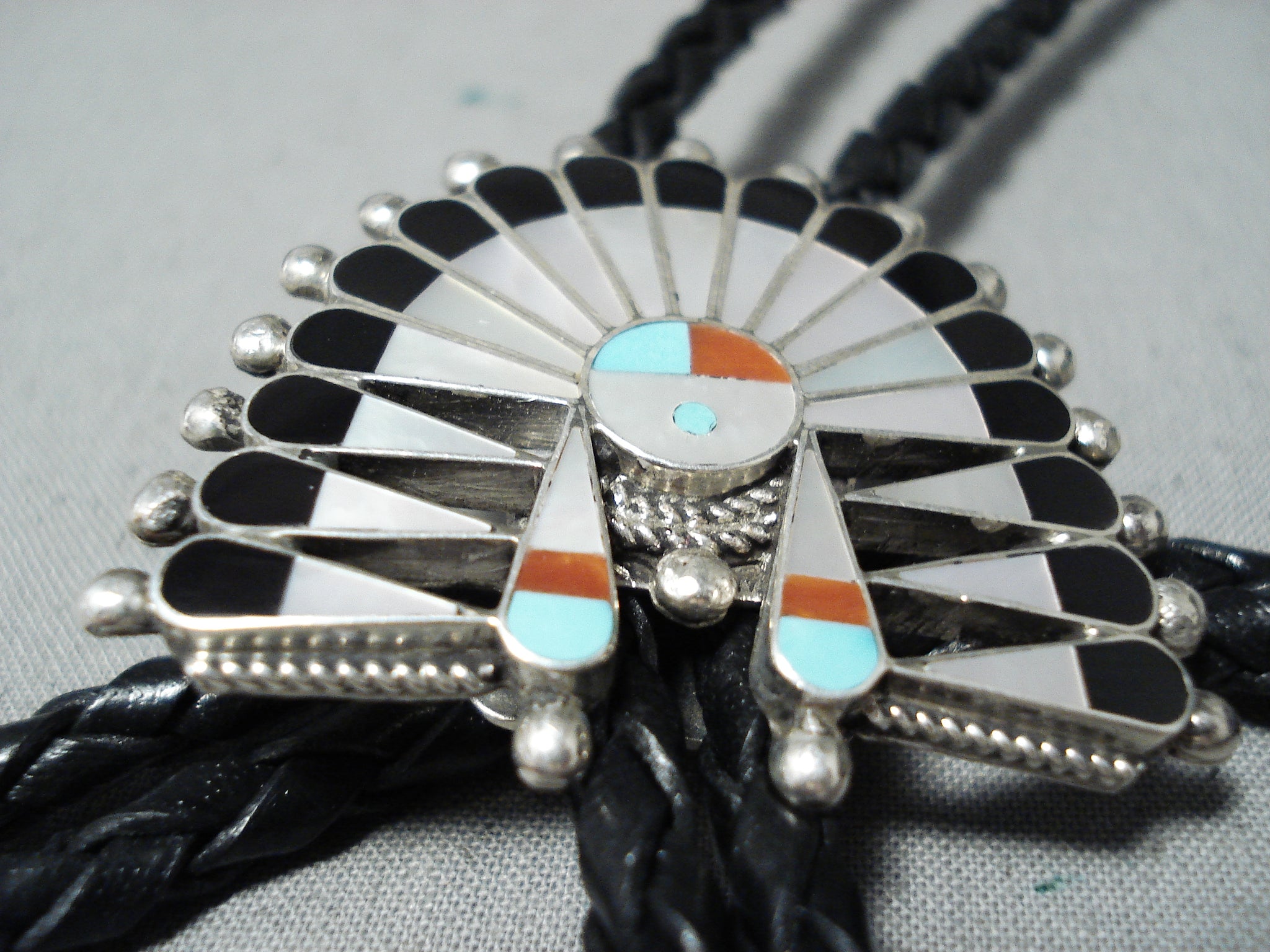 Spectacular Native American Zuni Inlay Coral Turquoise Jet Kachina Sterling Silver Bolo