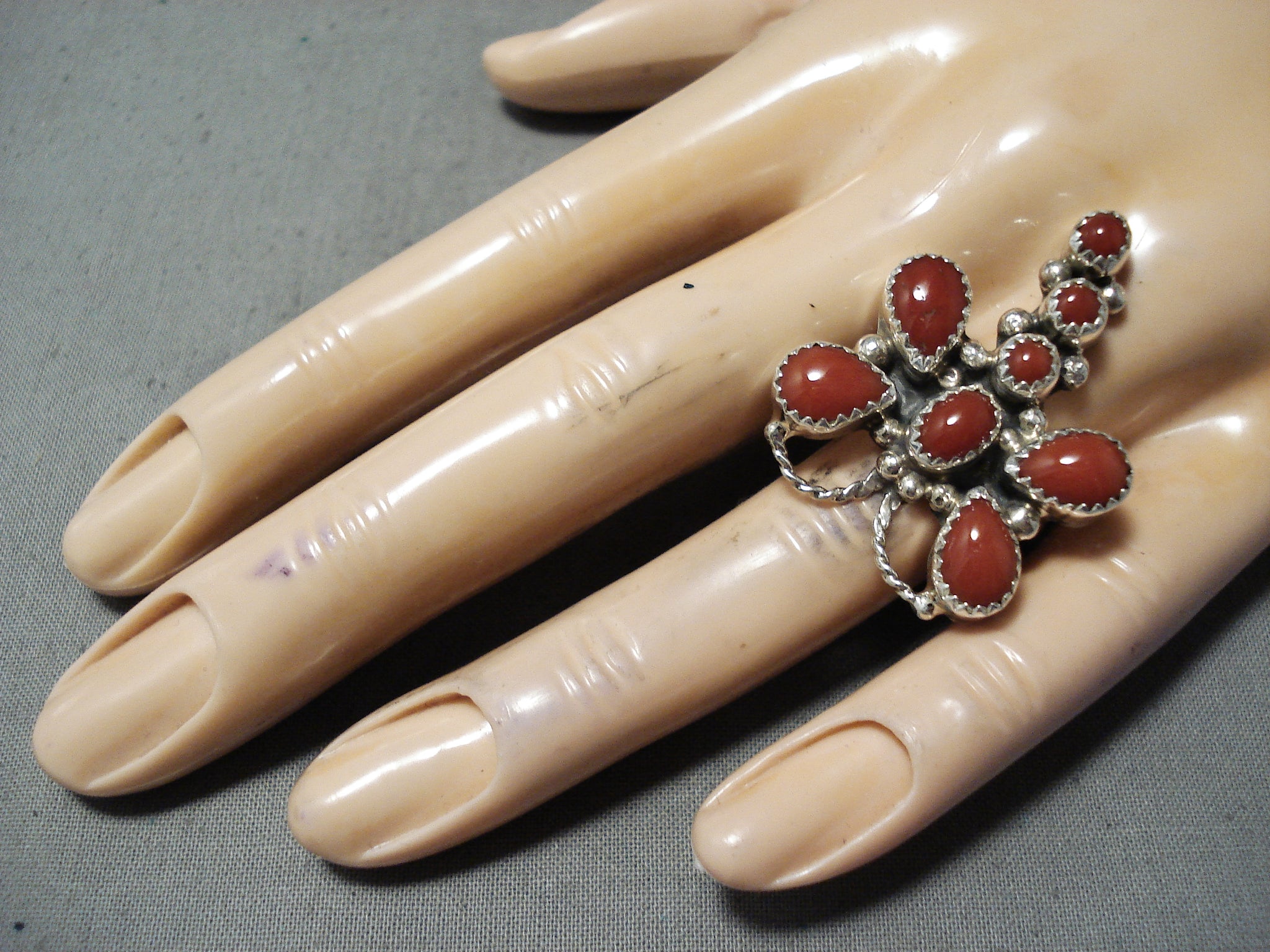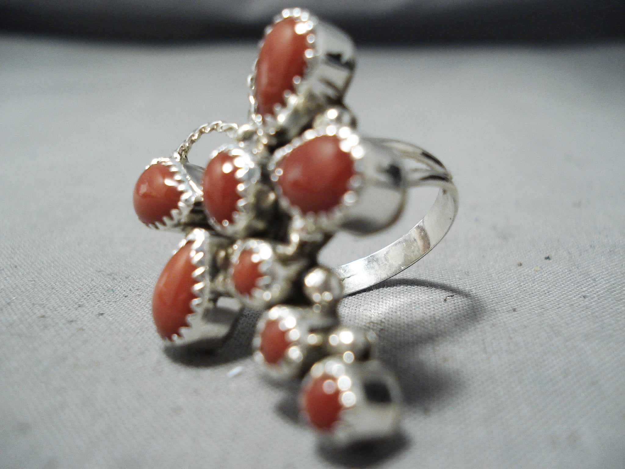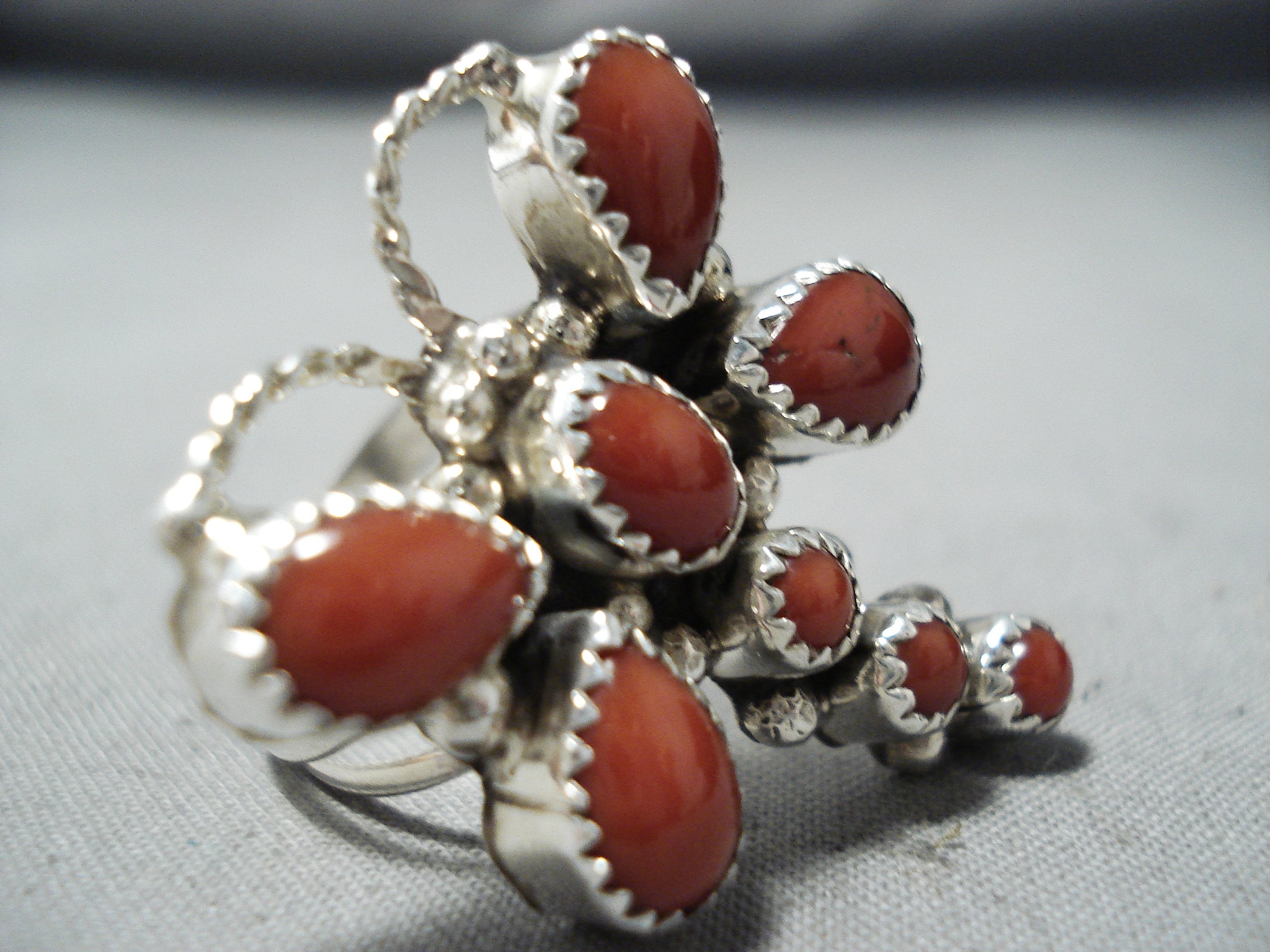 Spectacular Navajo Coral Sterling Silver Dragonfly Ring Native American