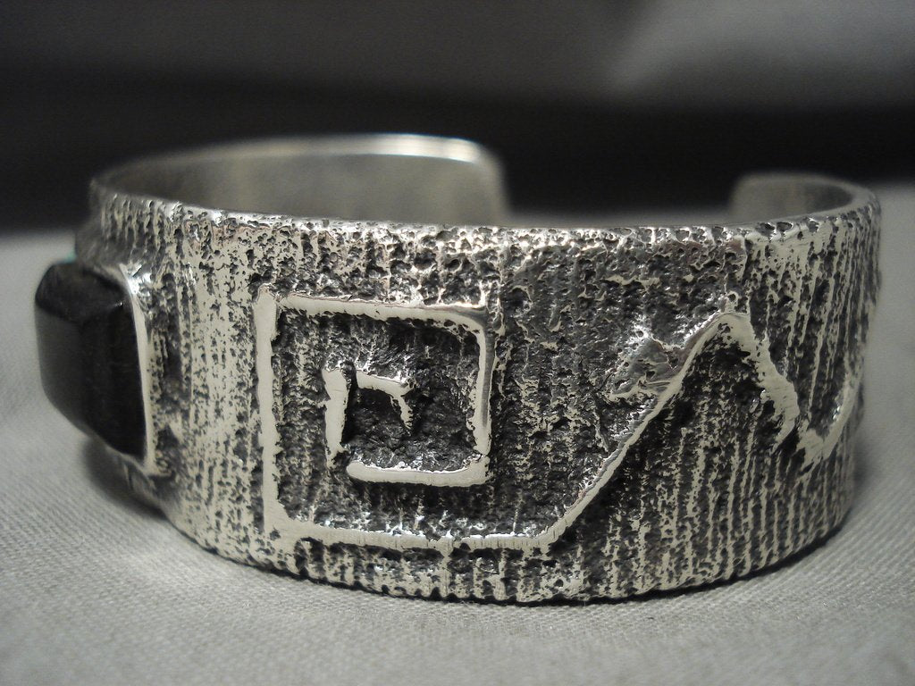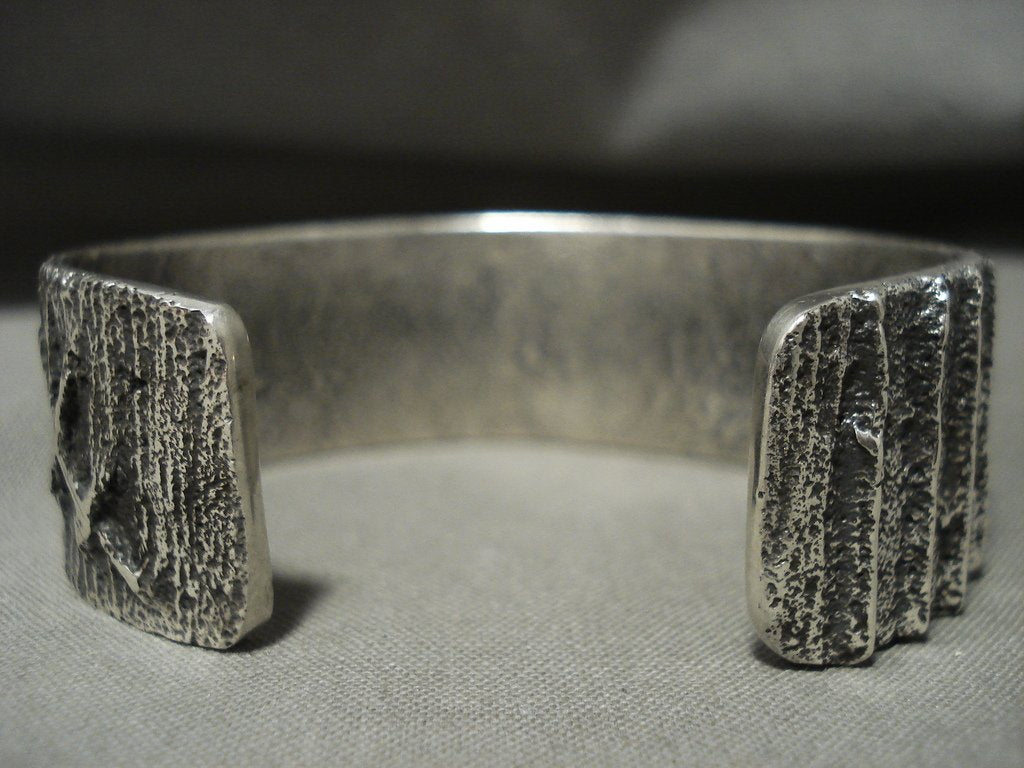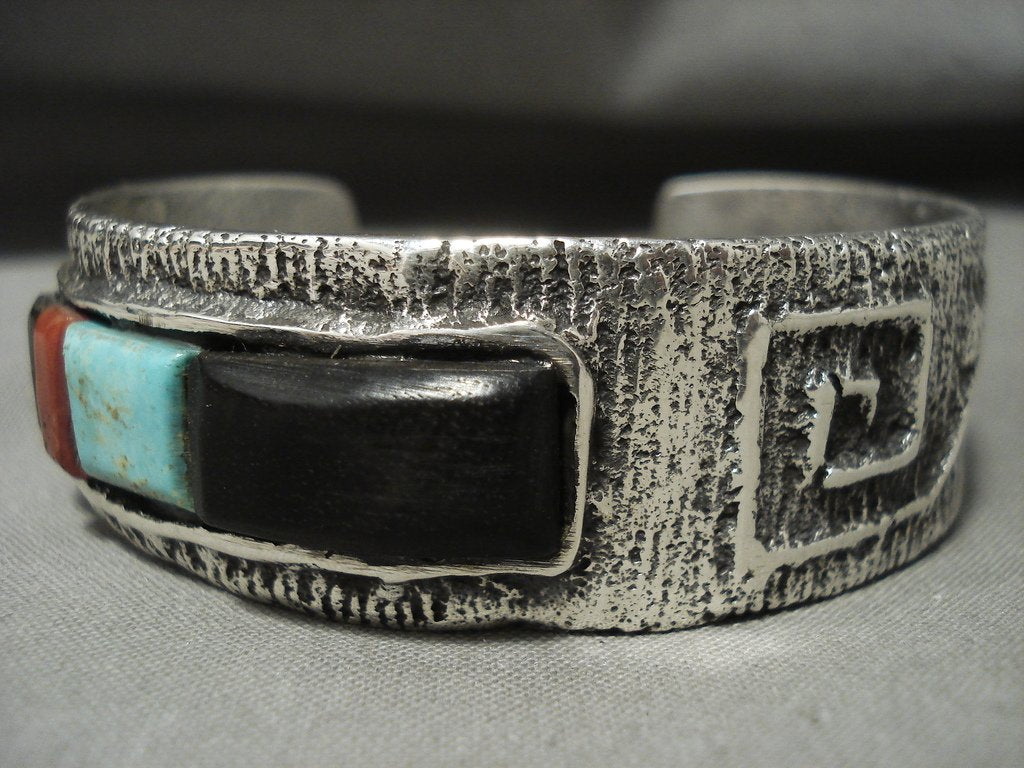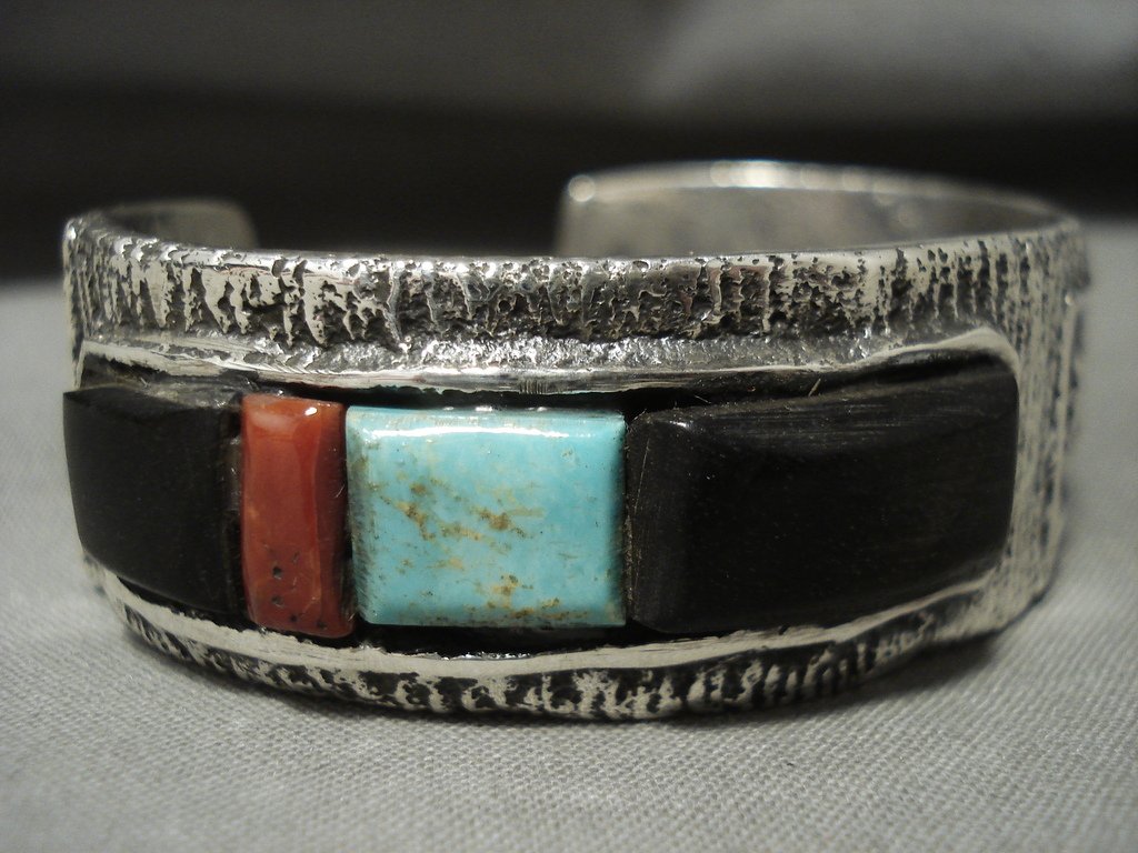 Spectacular Navajo 'Duel Technique' Turquoise Coral Native American Jewelry Silver Wood Bracelet