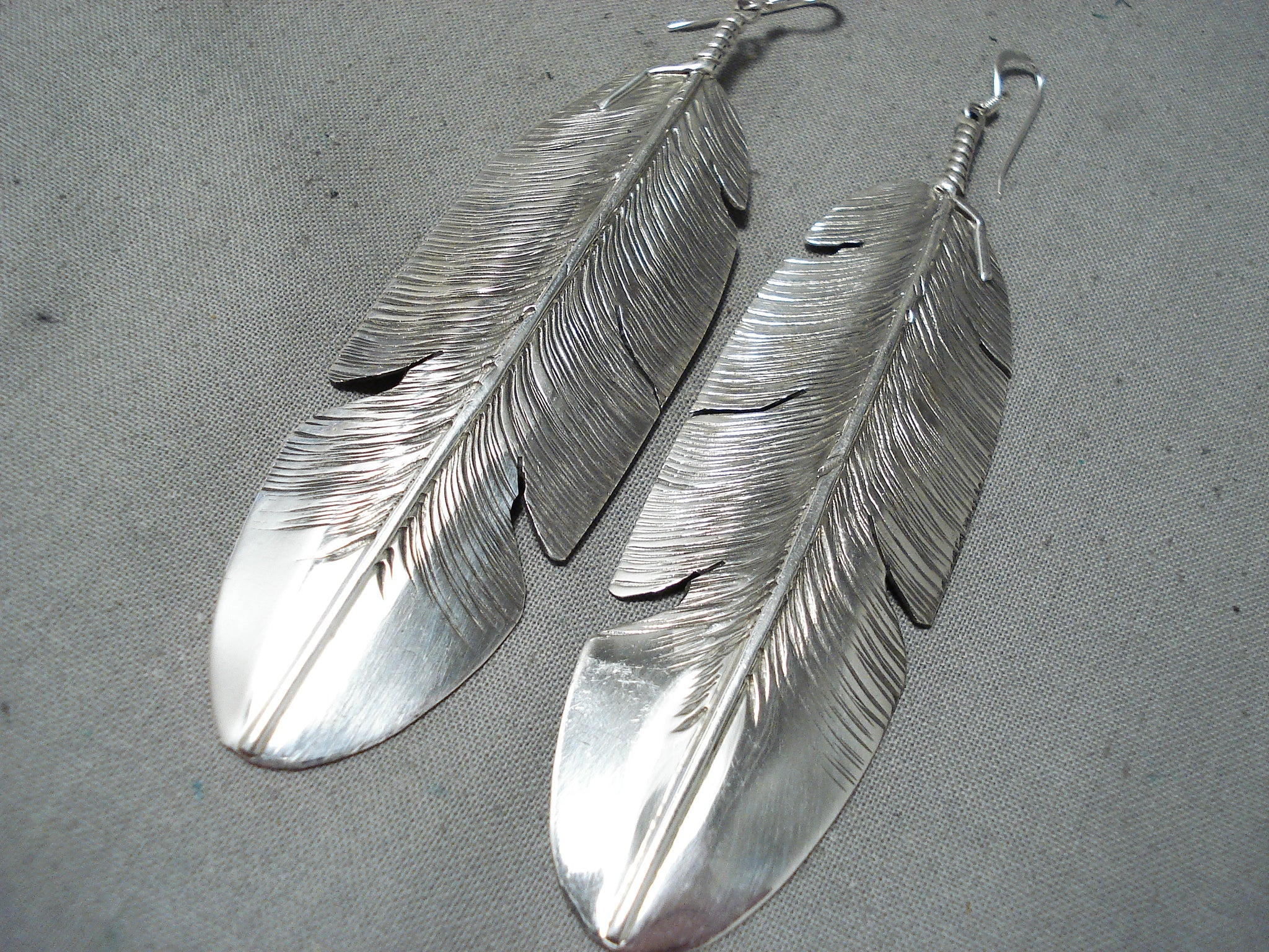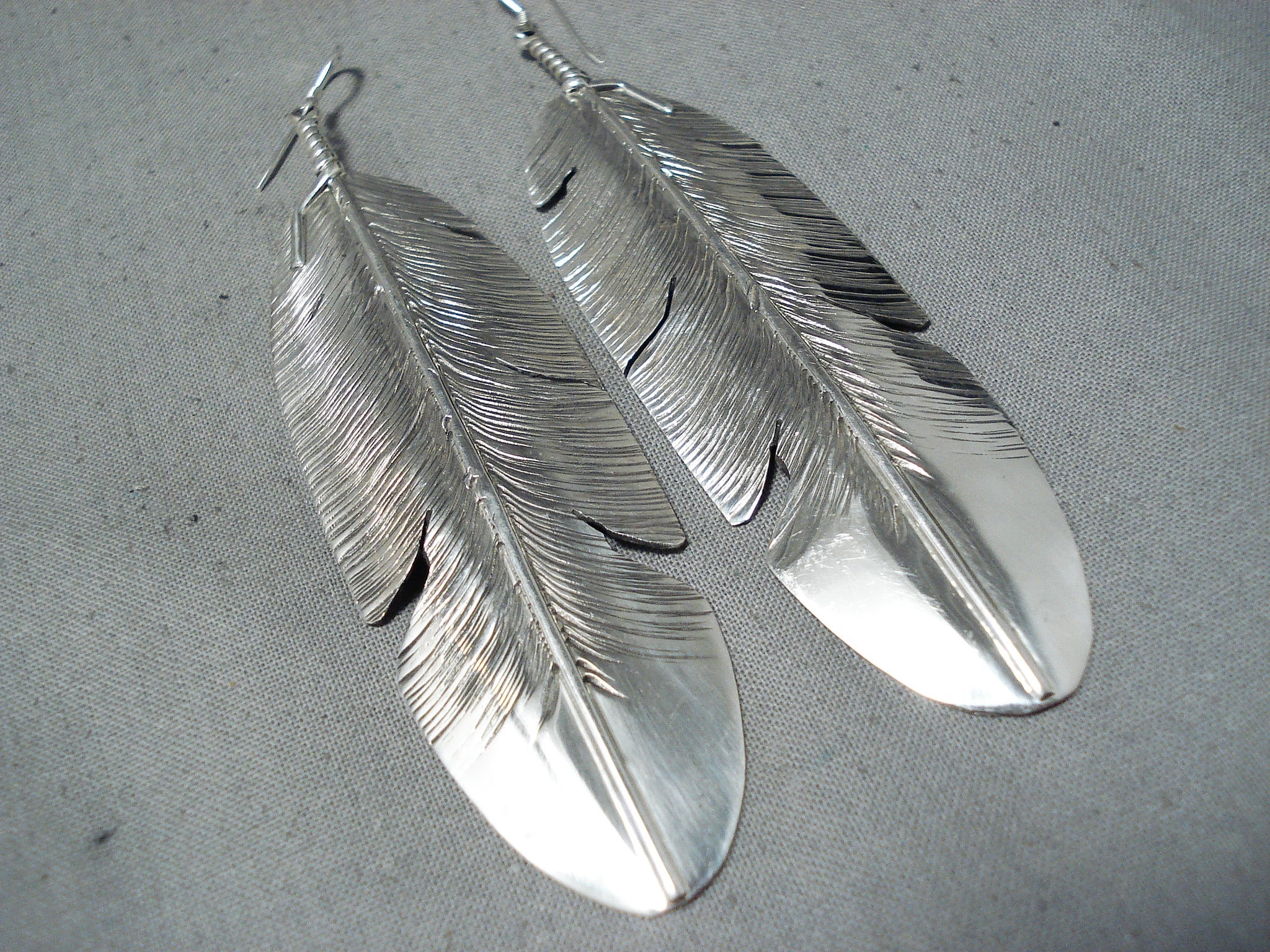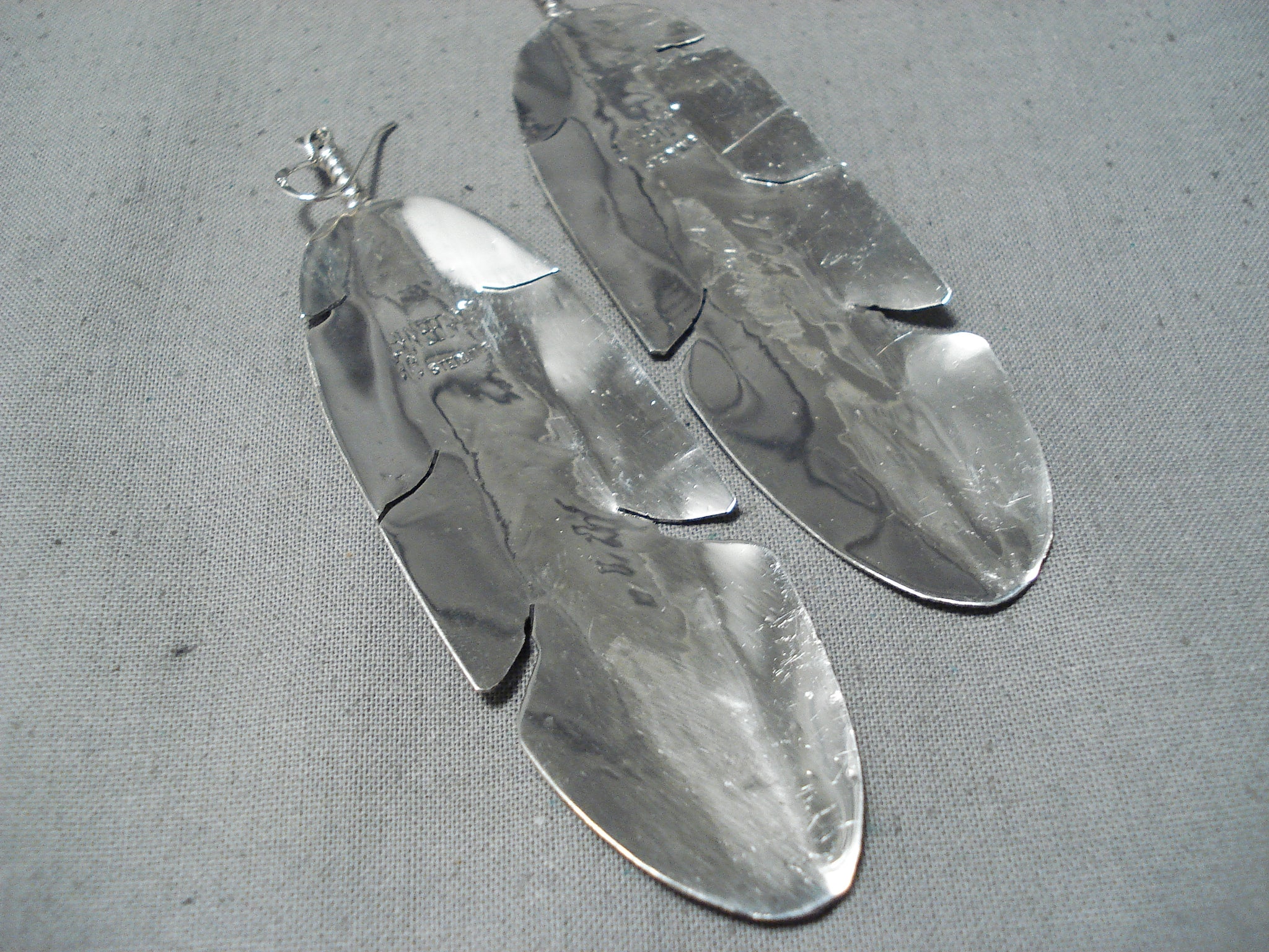 Spectacular Navajo Sterling Silver Feather Earrings Native American