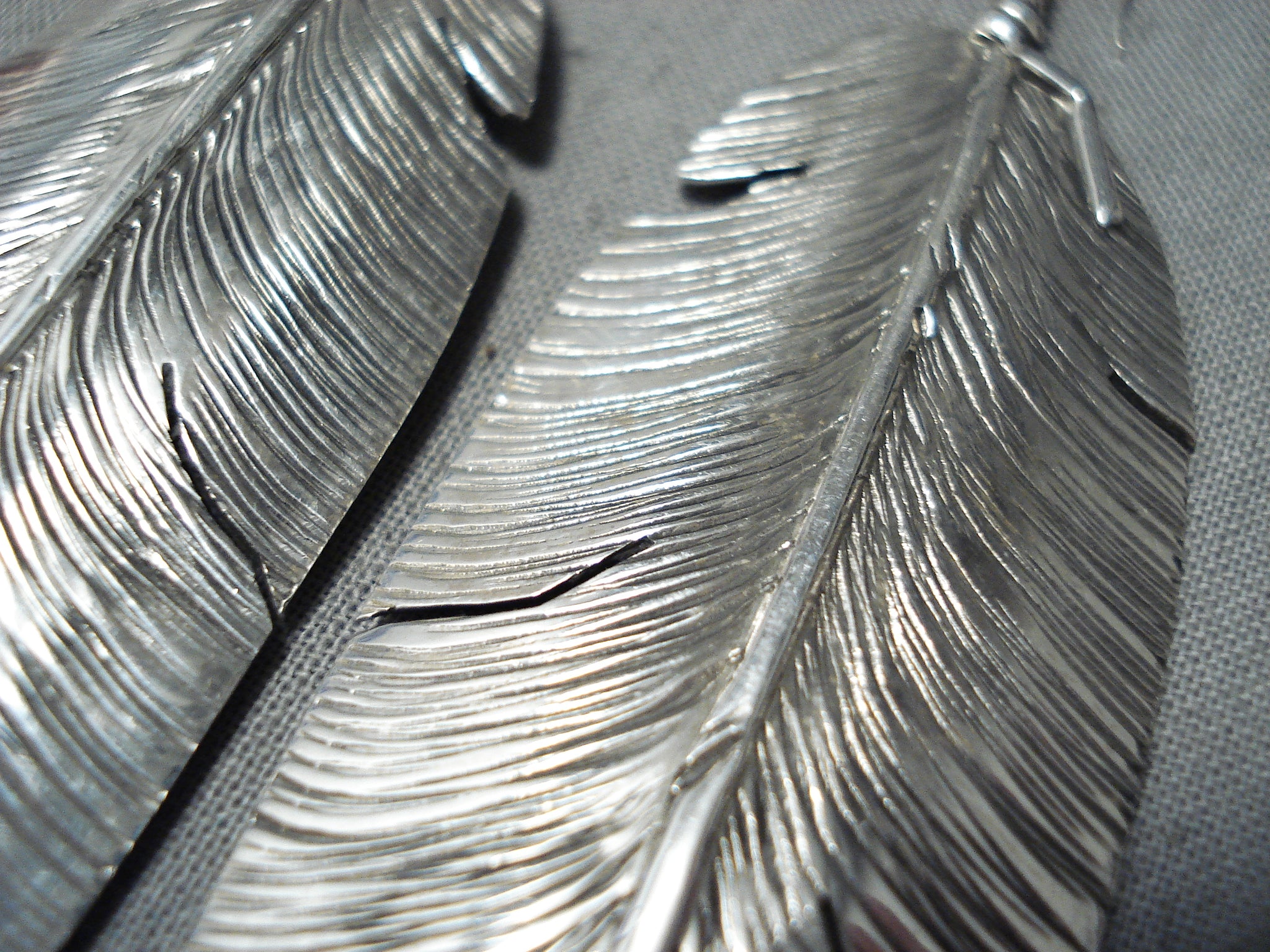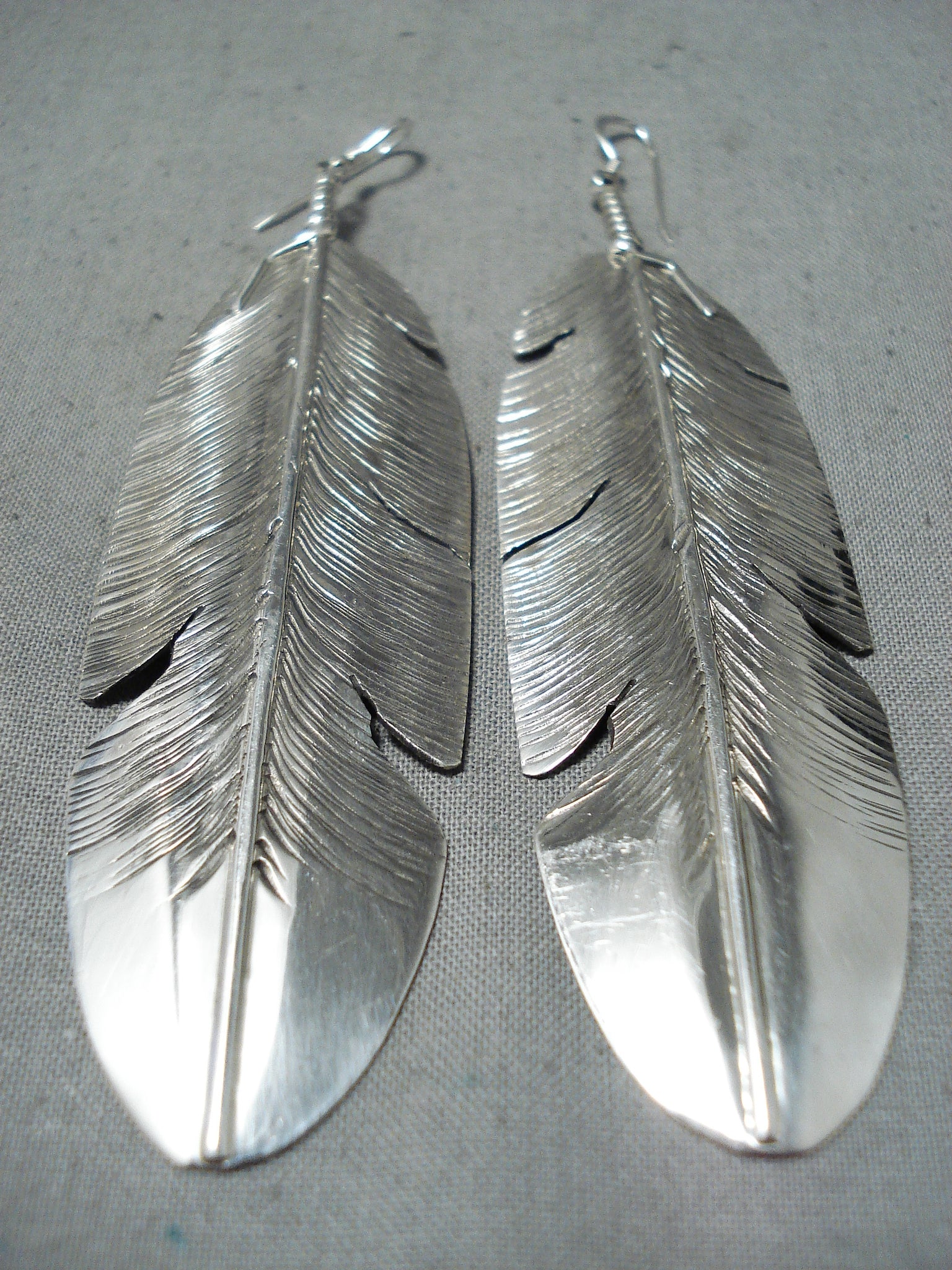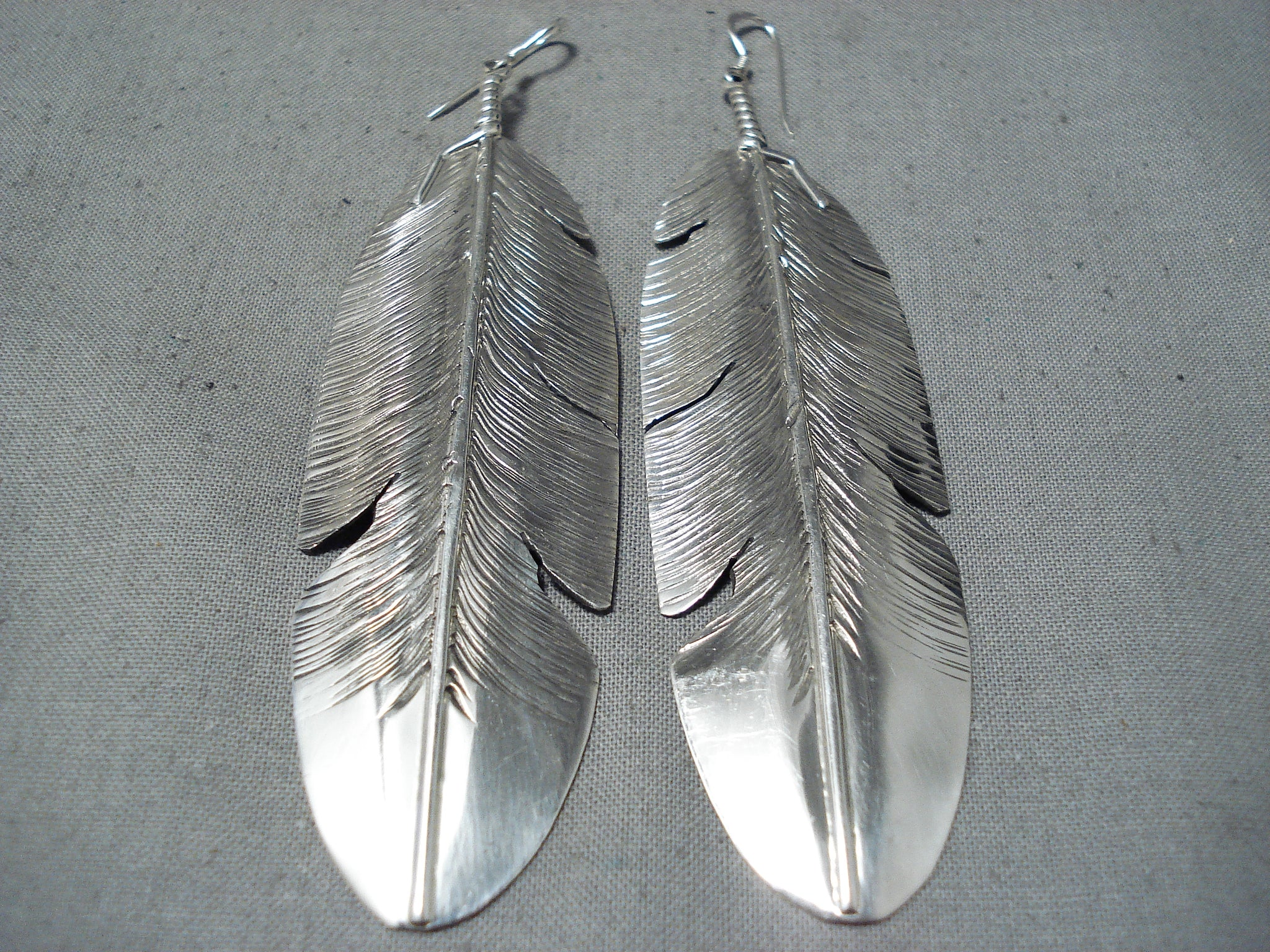 Spectacular Navajo Sterling Silver Feather Earrings Native American