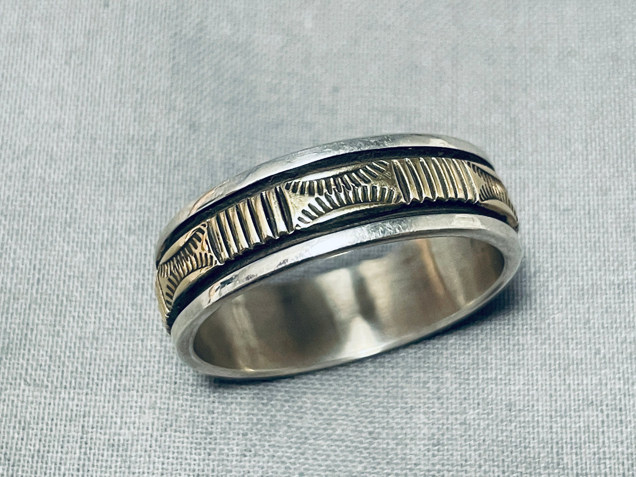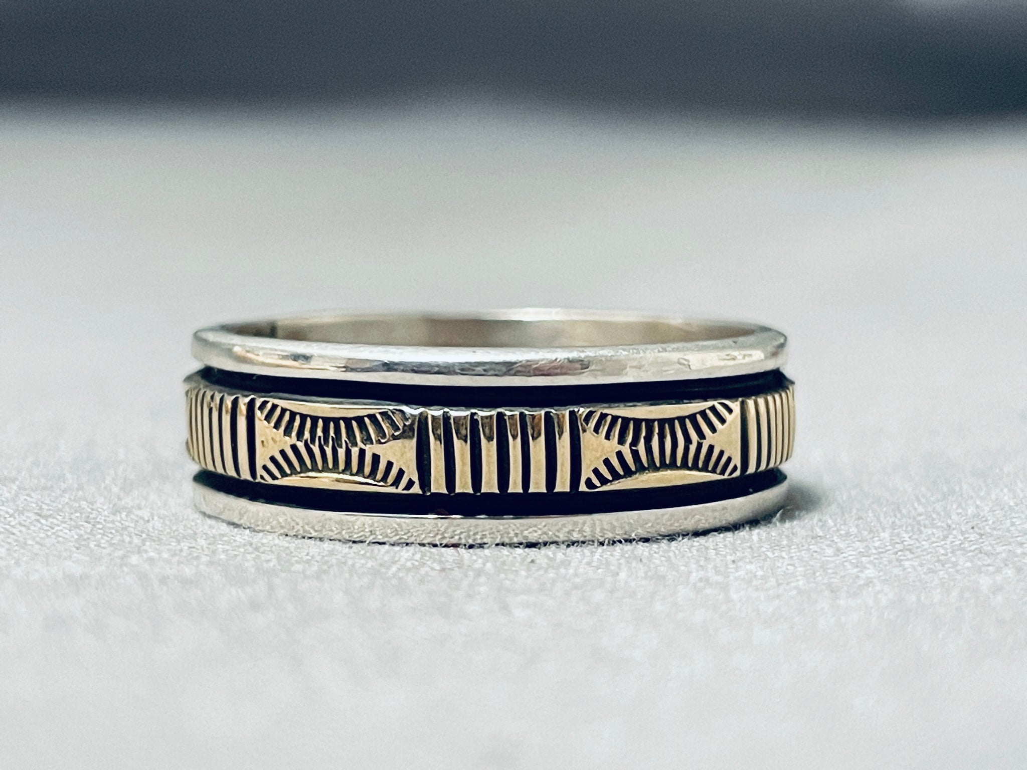 Spectacular Vintage Native American Navajo 14k Gold Sterling Silver Ring