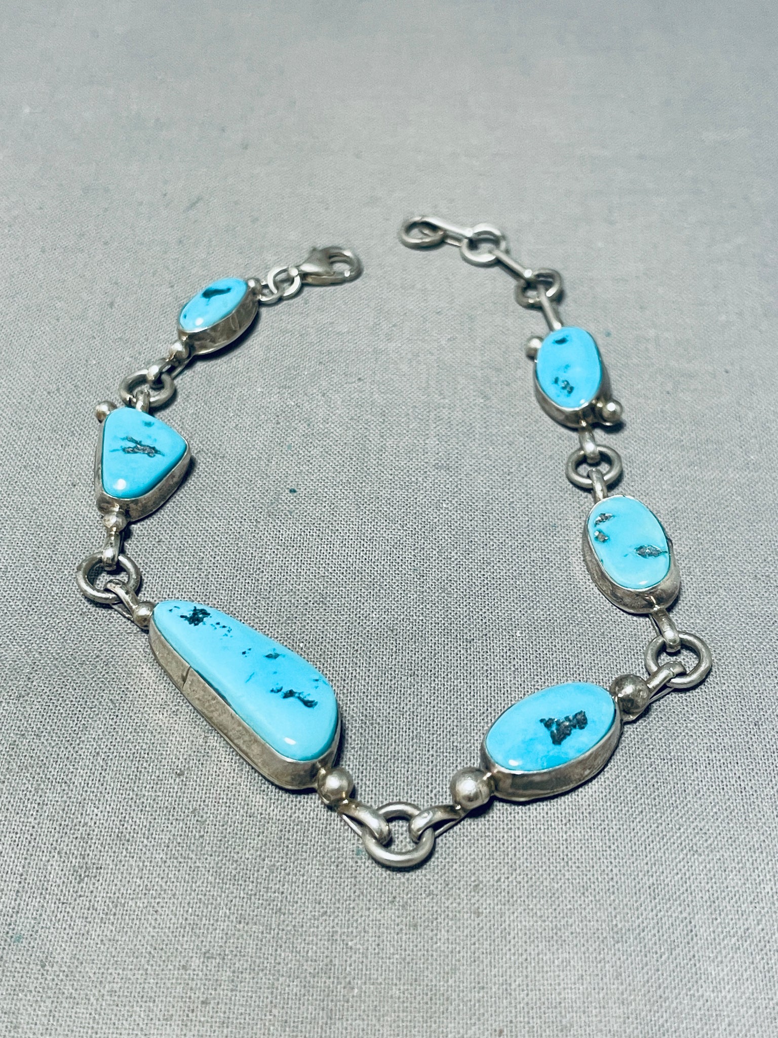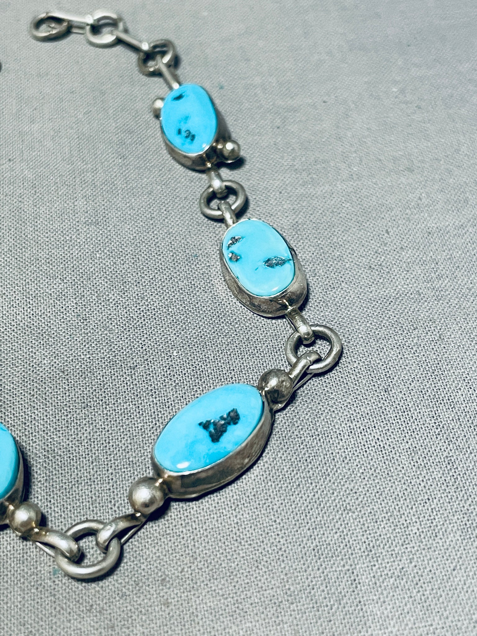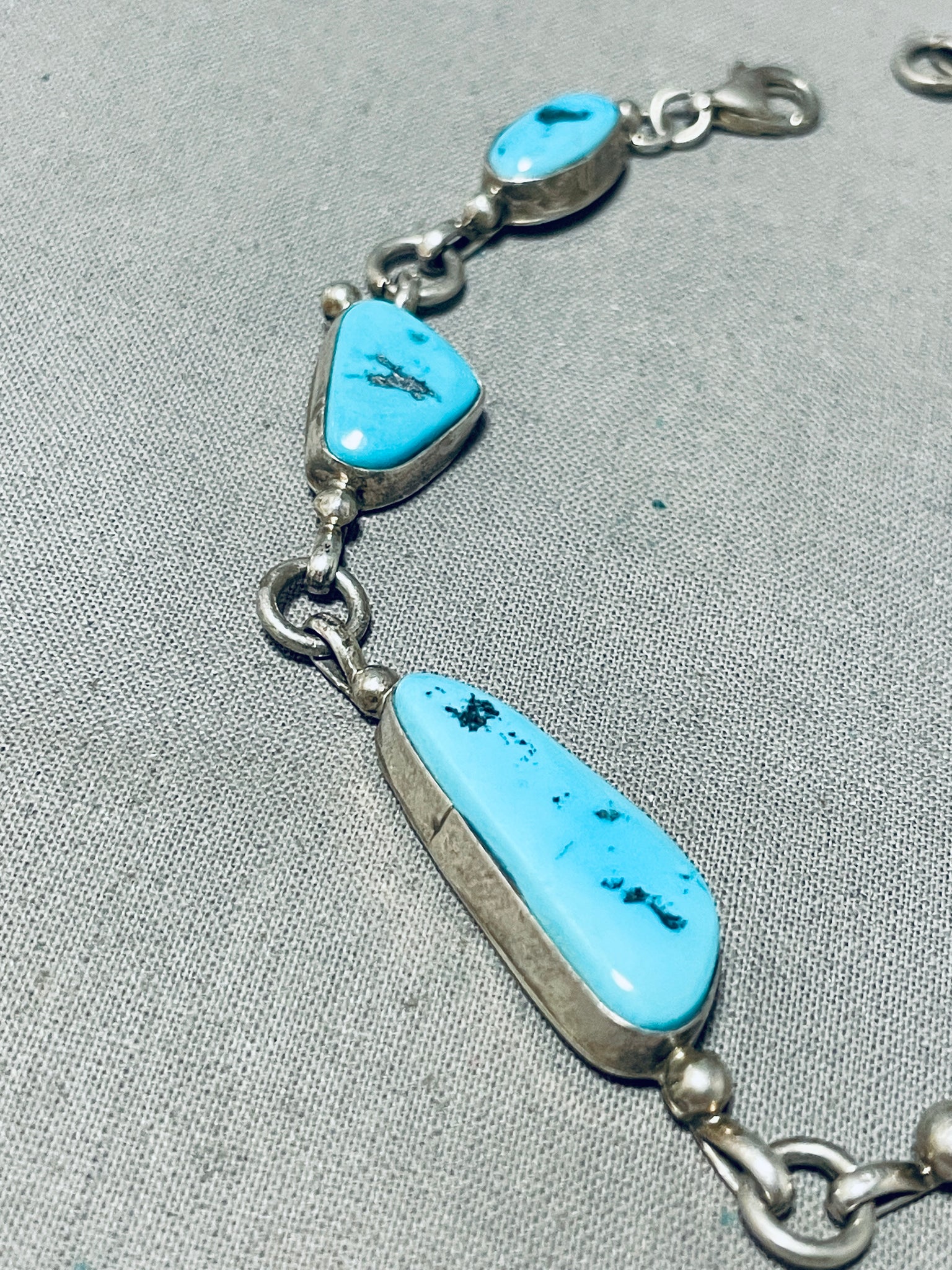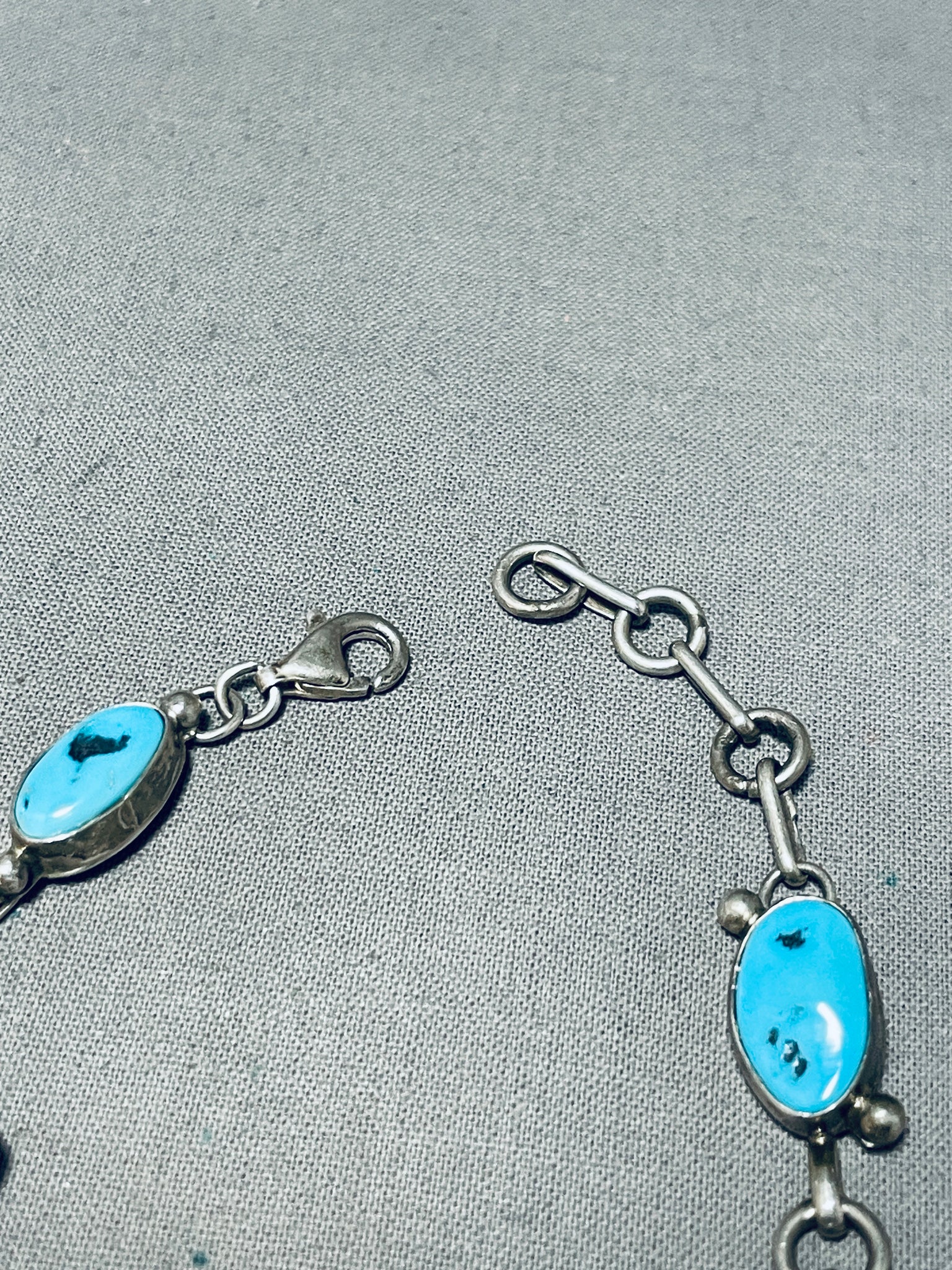 Spectacular Vintage Native American Navajo Blue Diamond Turquoise Sterling Silver Link Bracelet