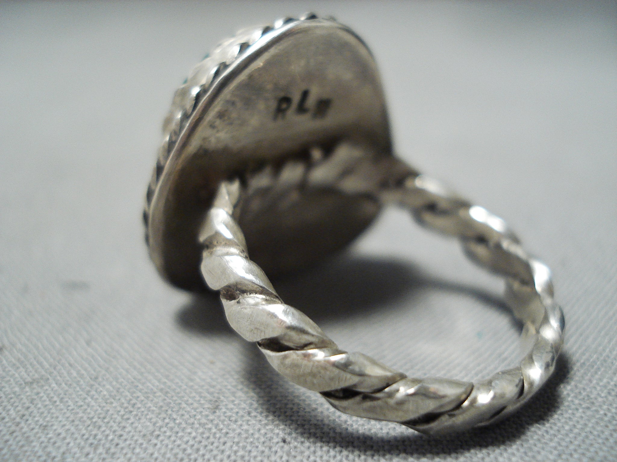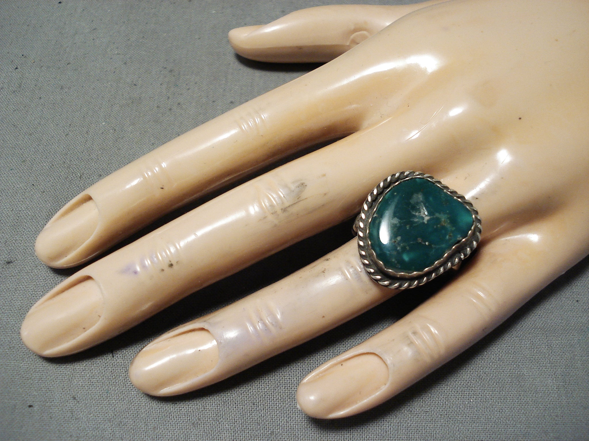 Spectacular Vintage Native American Navajo Blue Green Turquoise Sterling Silver Ring Old