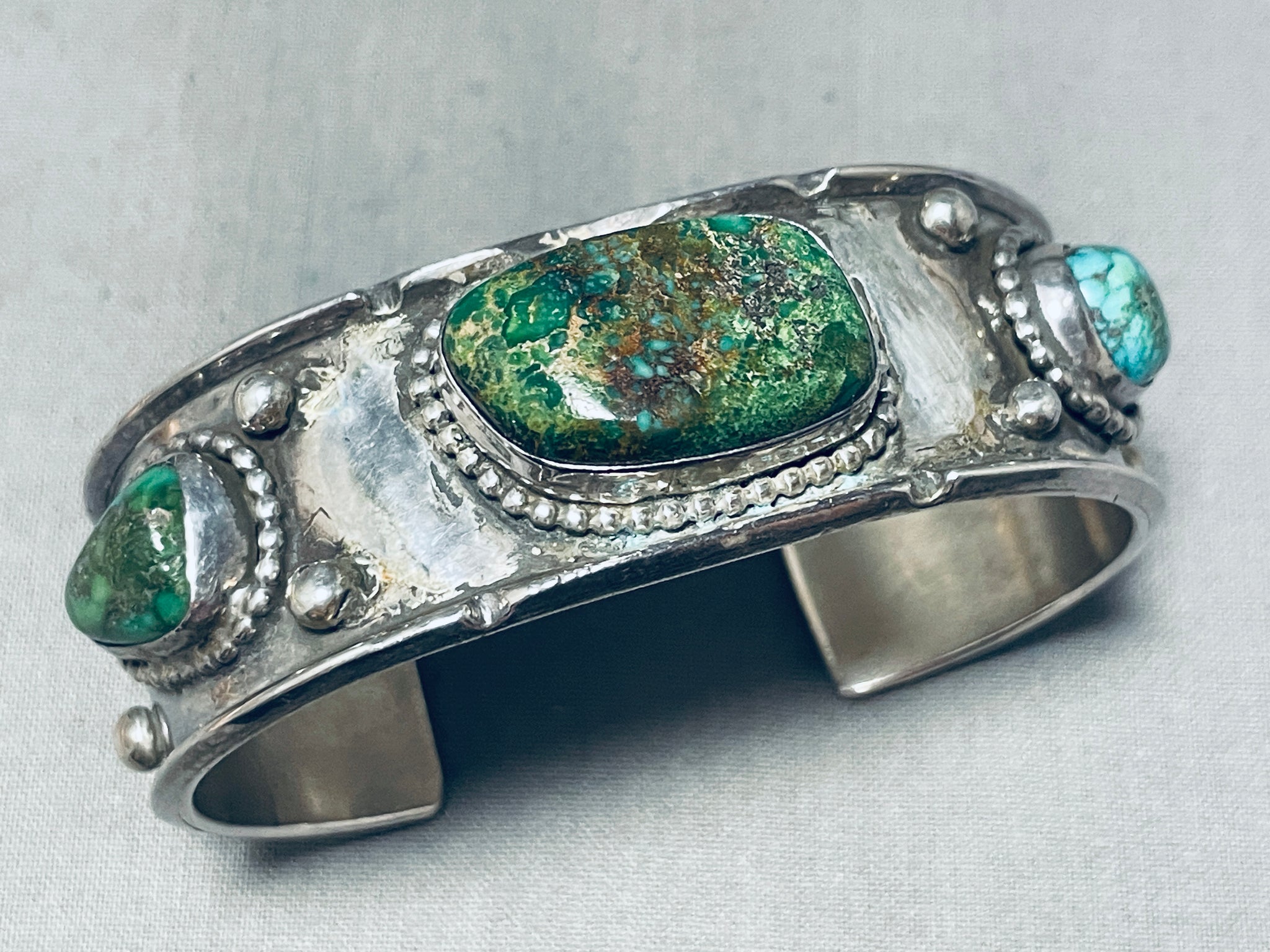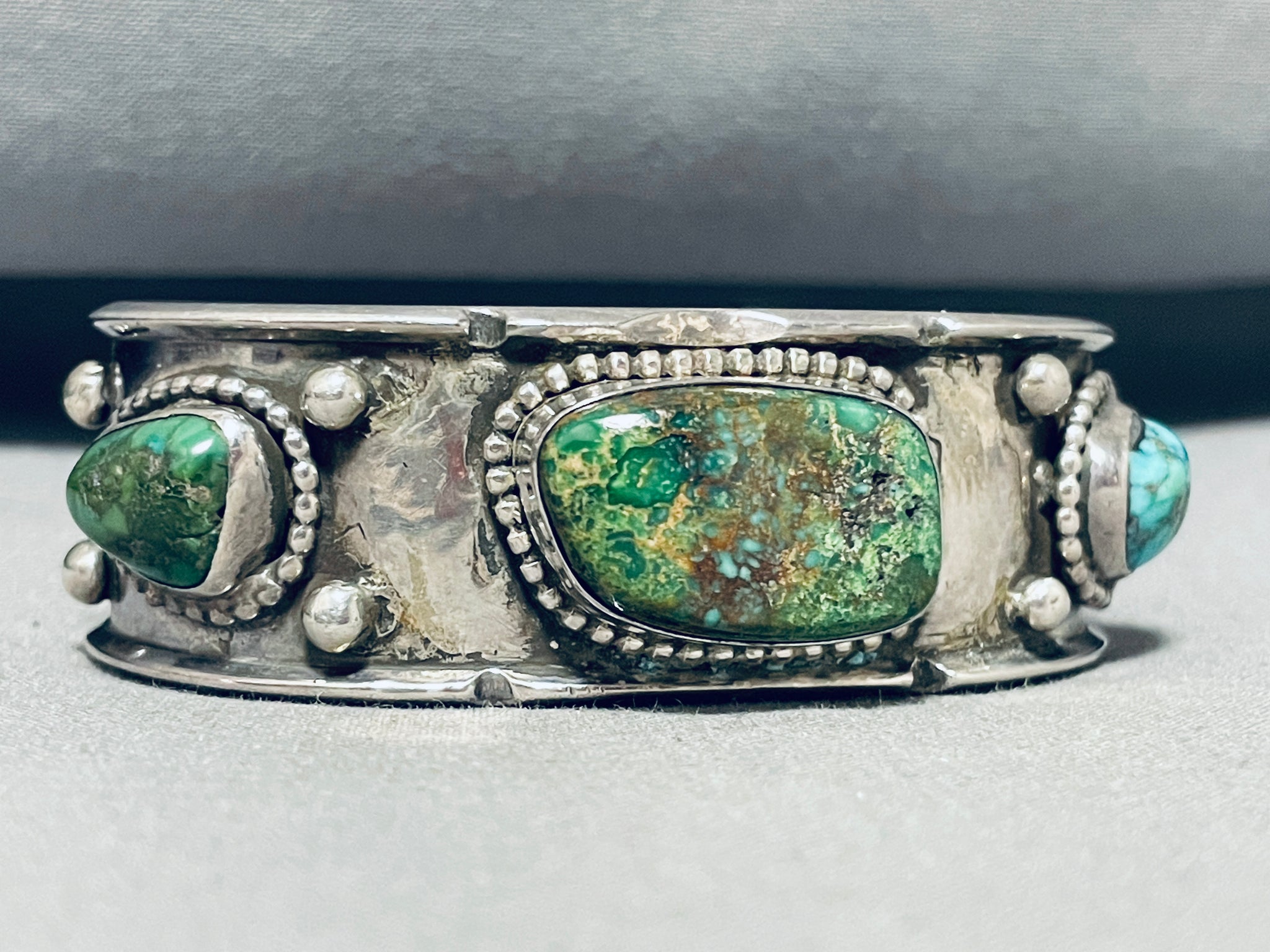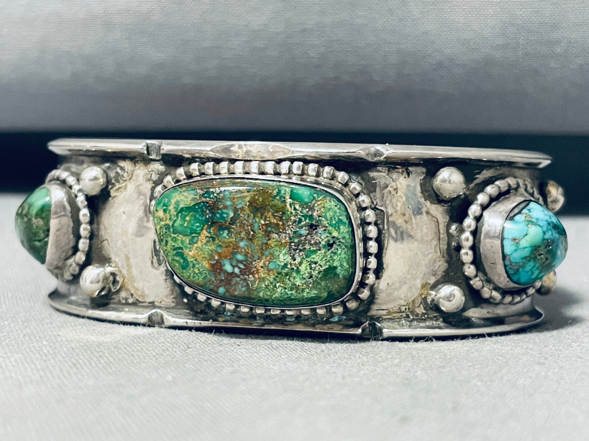Spectacular Vintage Native American Navajo Carico Lake Turquoise Sterling Silver Bracelet