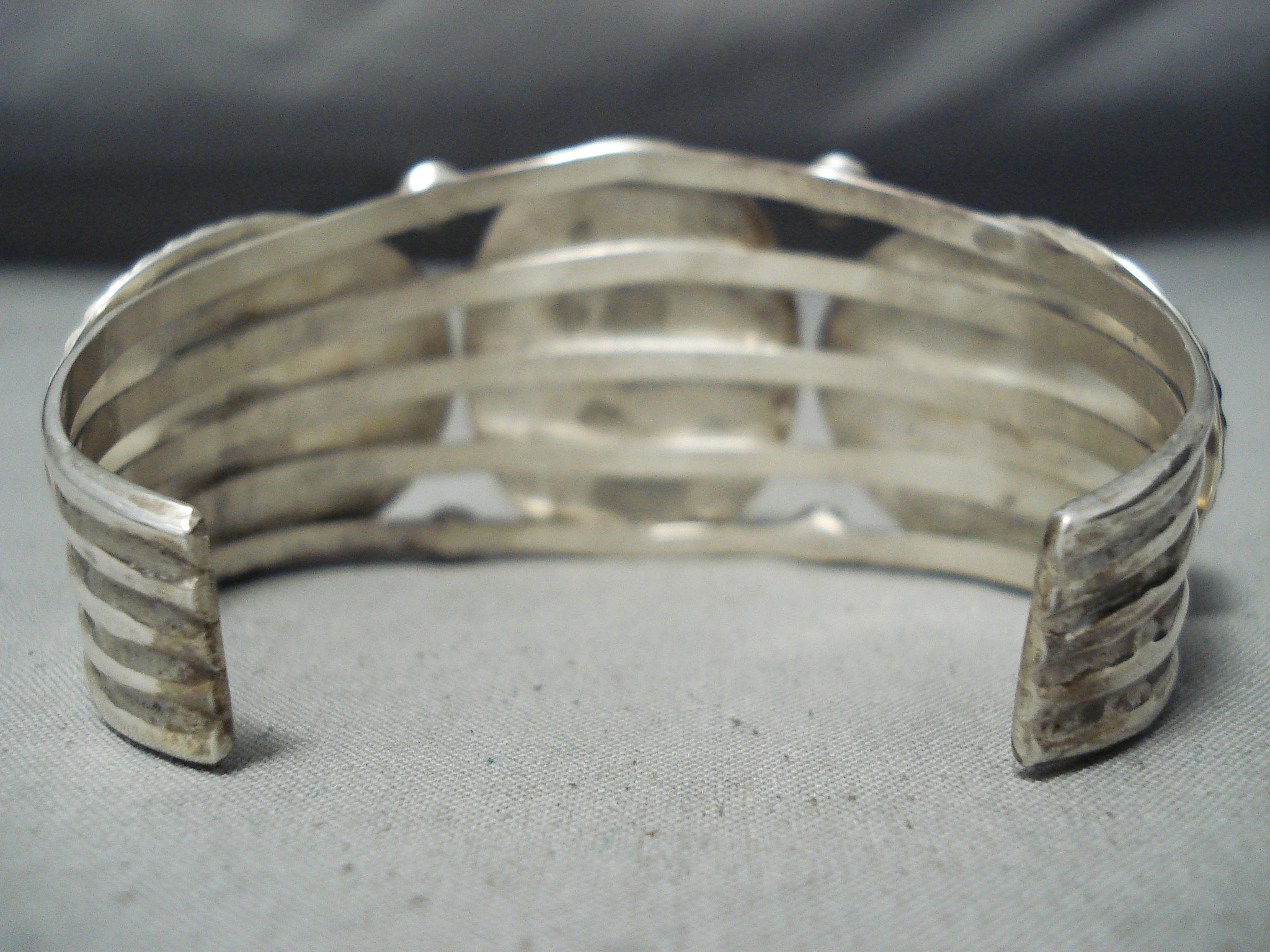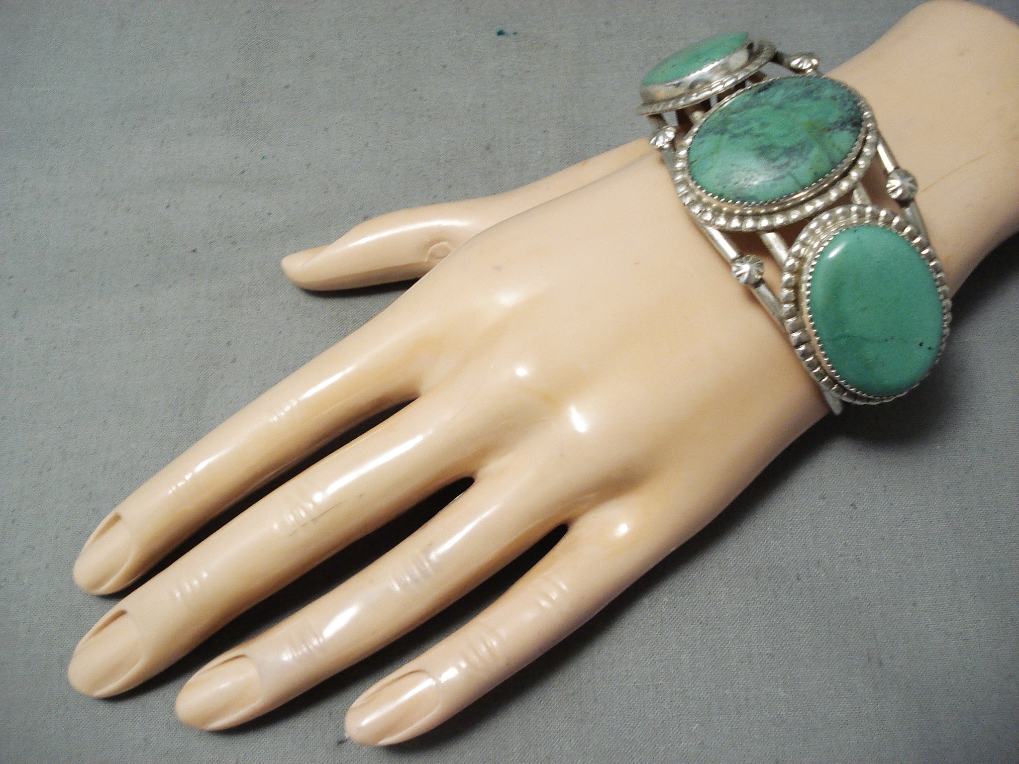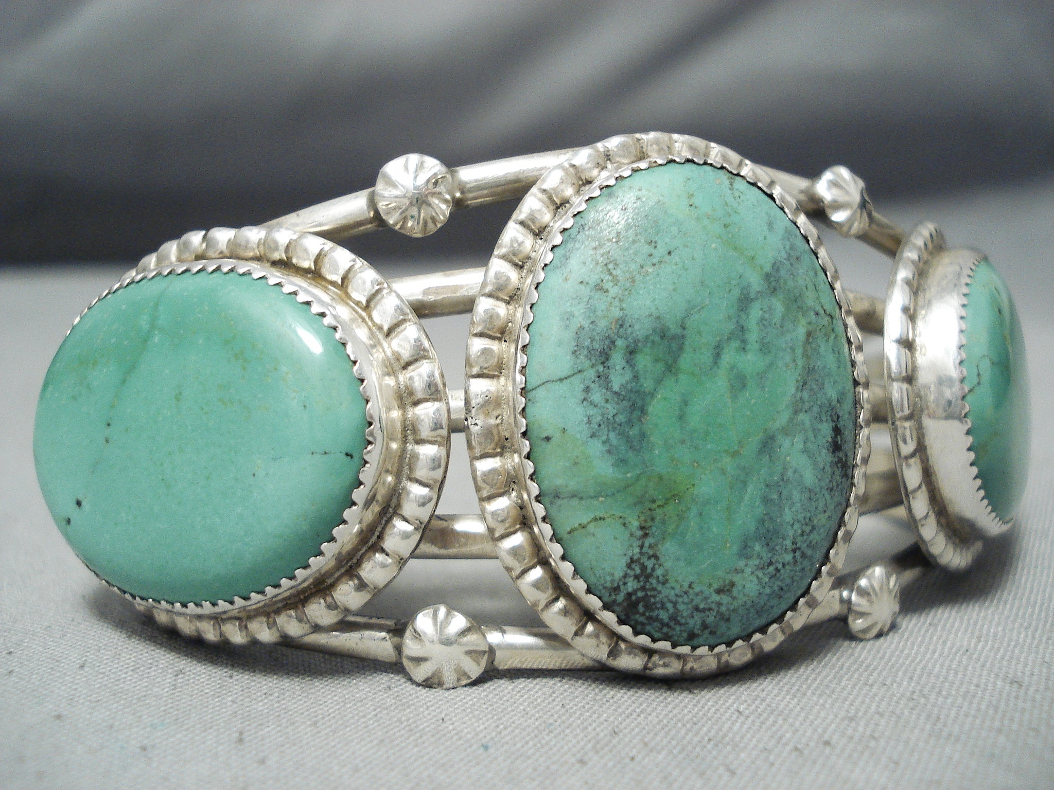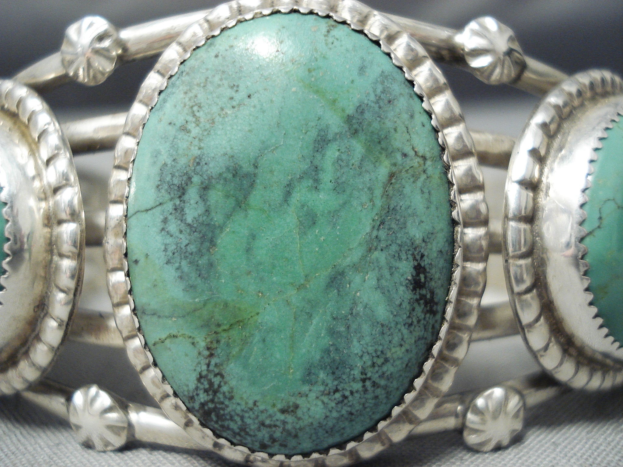 Spectacular Vintage Native American Navajo Green Turquoise Sterling Silver Bracelet