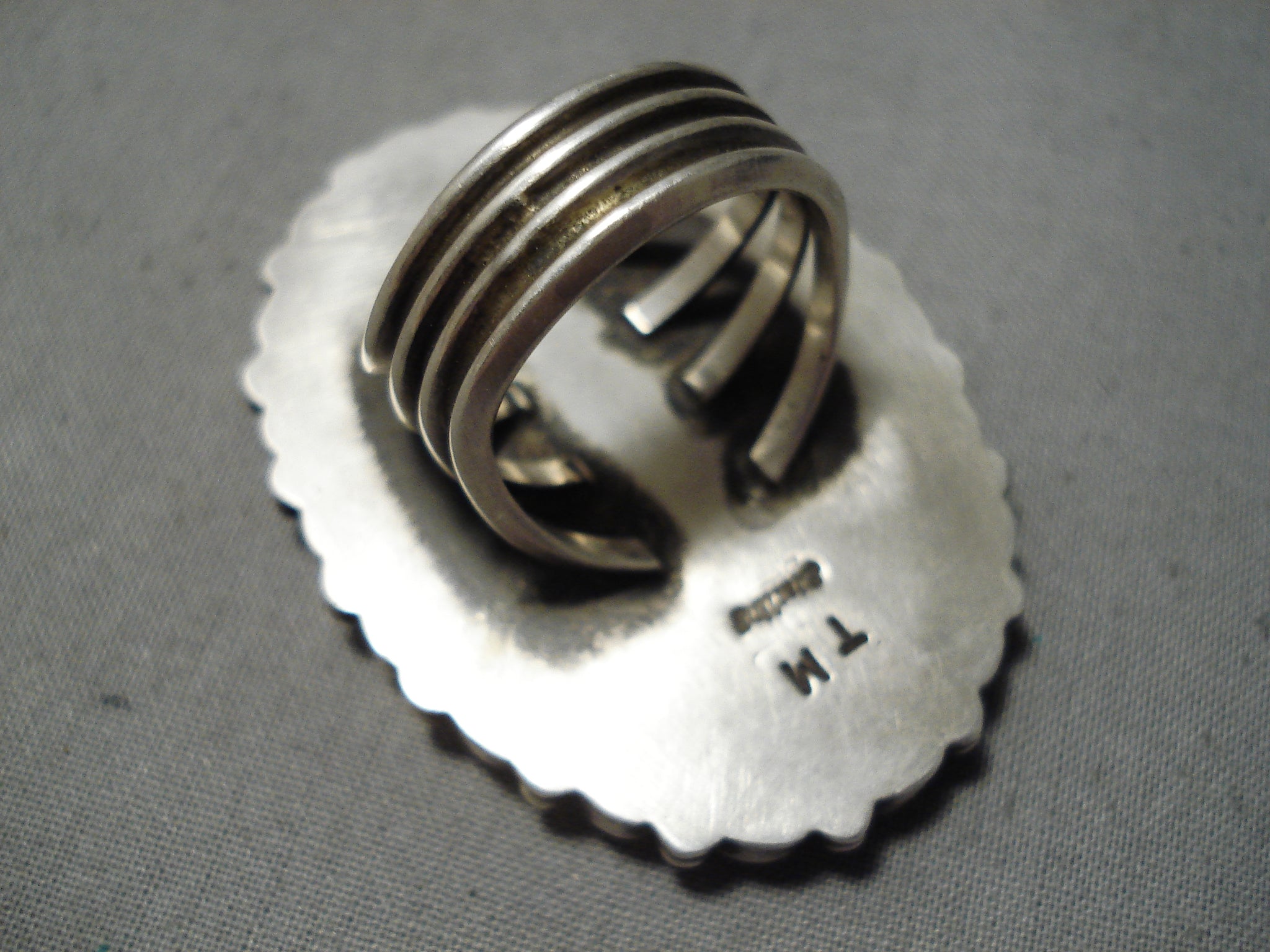 Spectacular Vintage Native American Navajo Kingman Turquoise Sterling Silver Ring Old