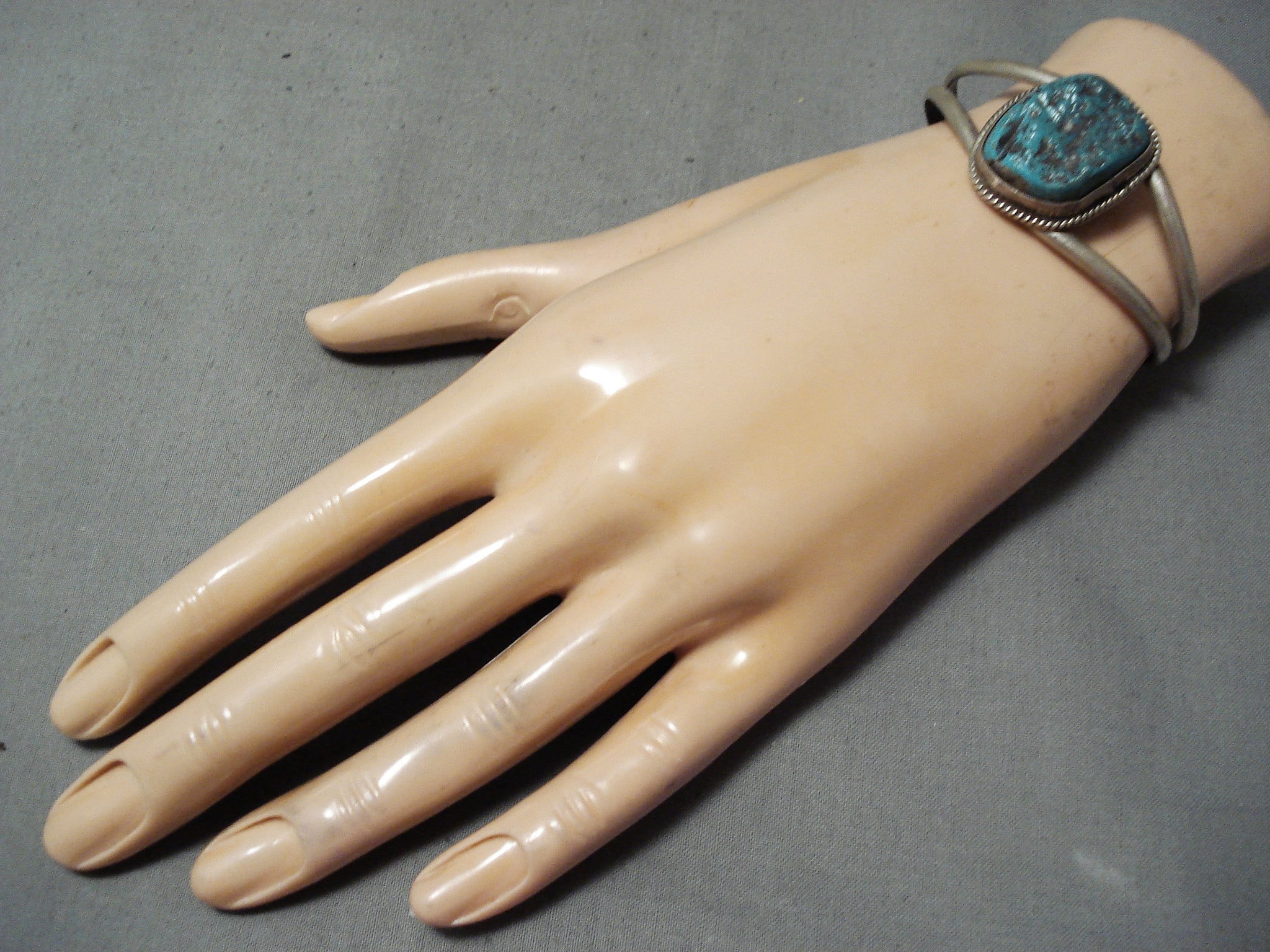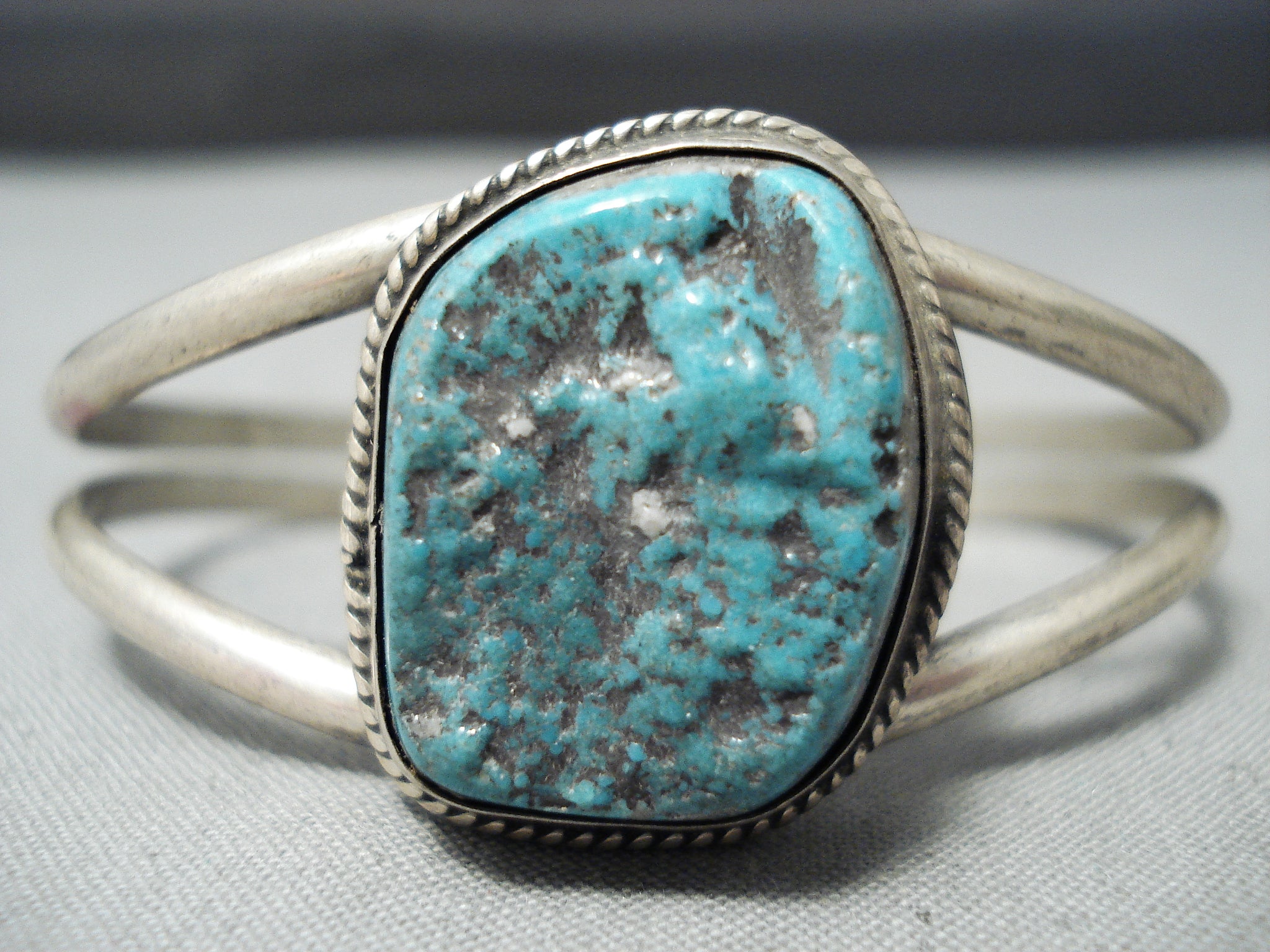 Spectacular Vintage Native American Navajo Old Kingman Turquoise Sterling Silver Bracelet
