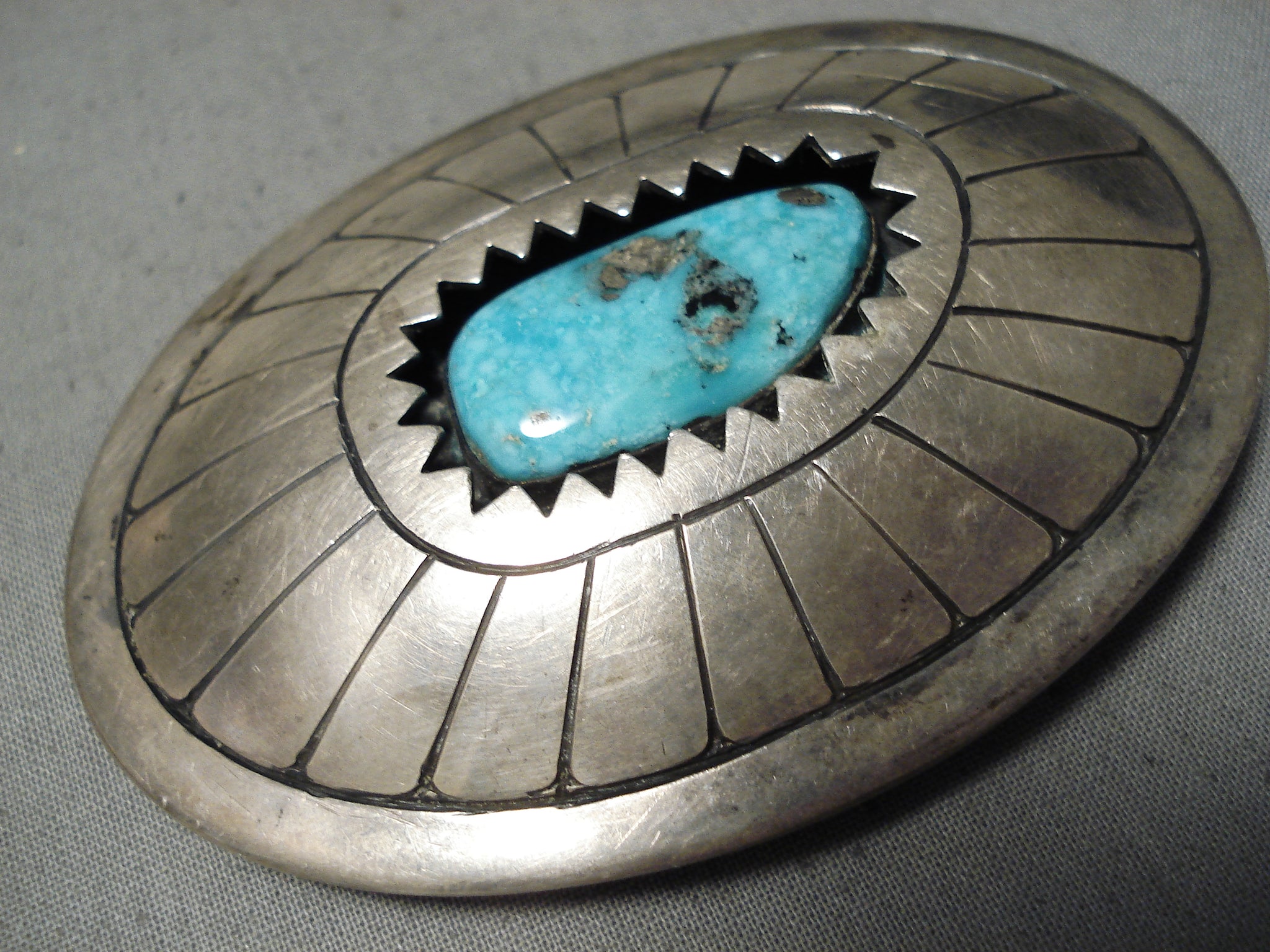 Spectacular Vintage Native American Navajo Old Kingman Turquoise Sterling Silver Buckle