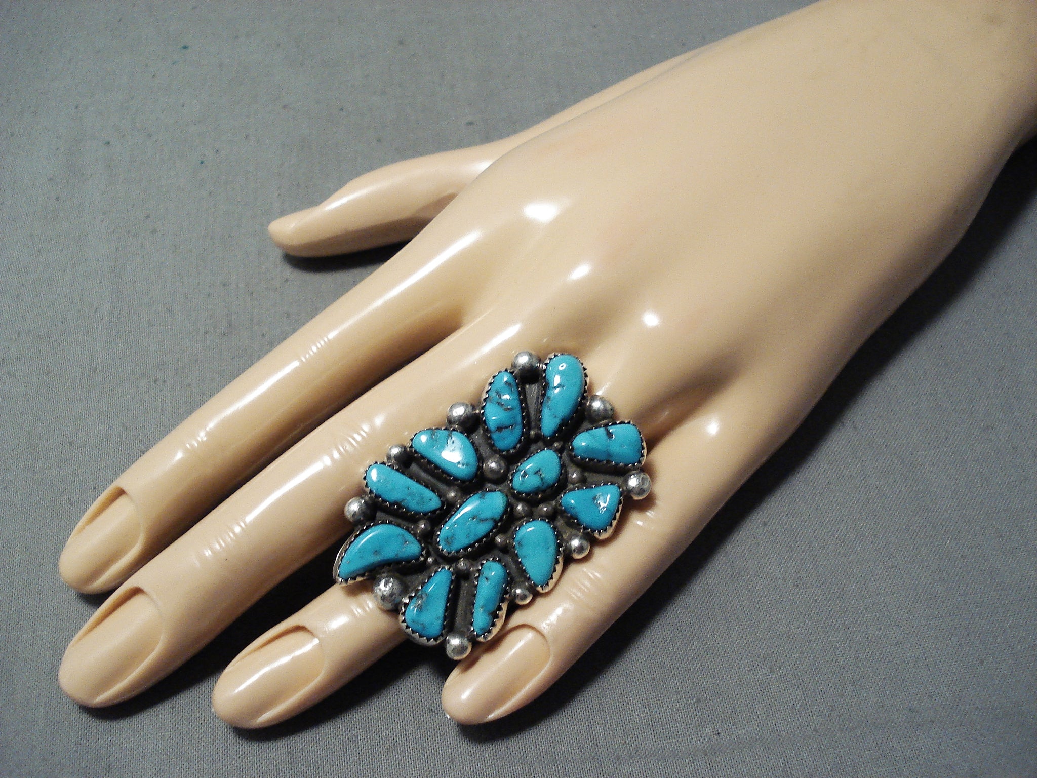 Spectacular Vintage Native American Navajo Old Kingman Turquoise Sterling Silver Ring