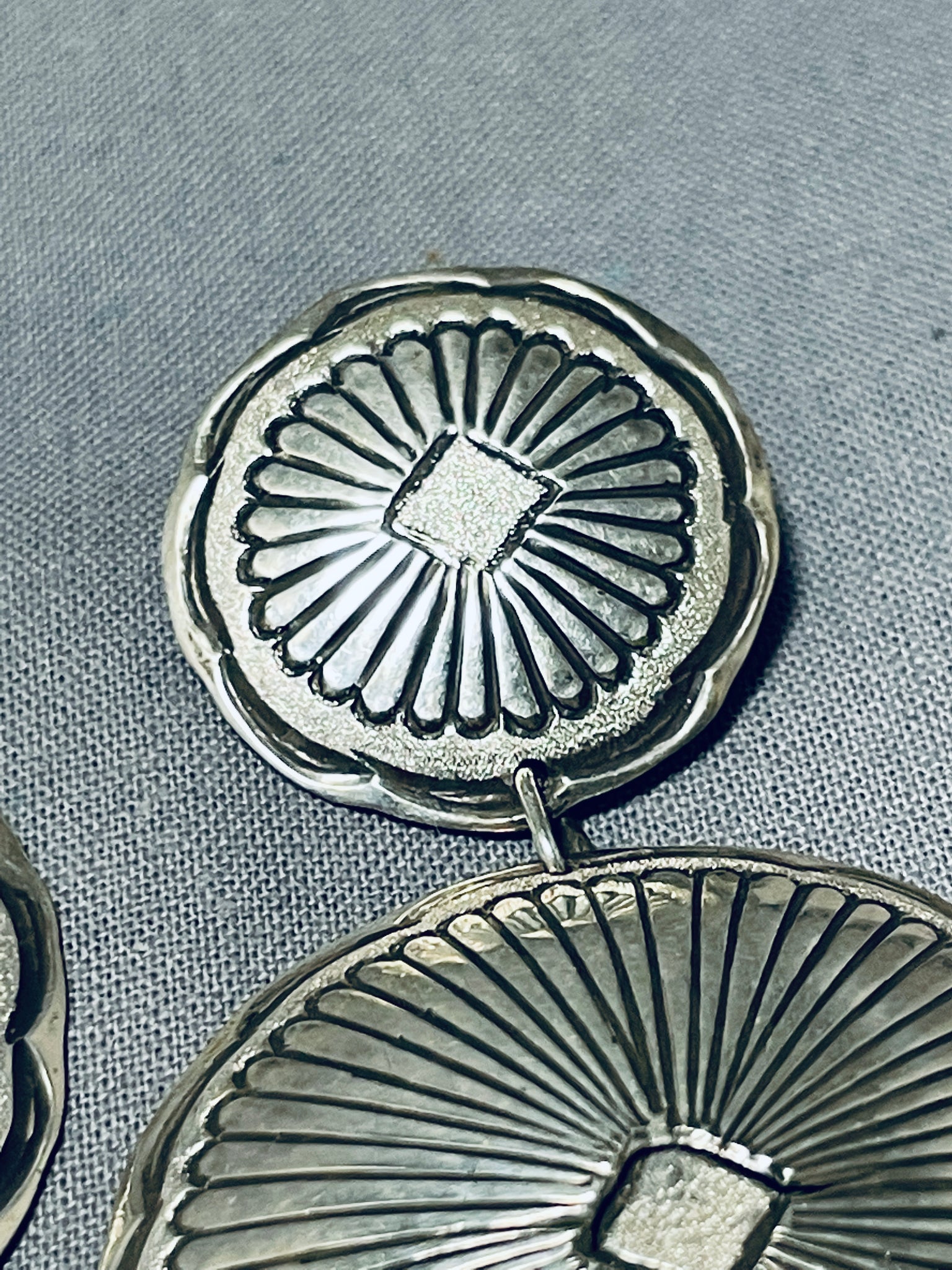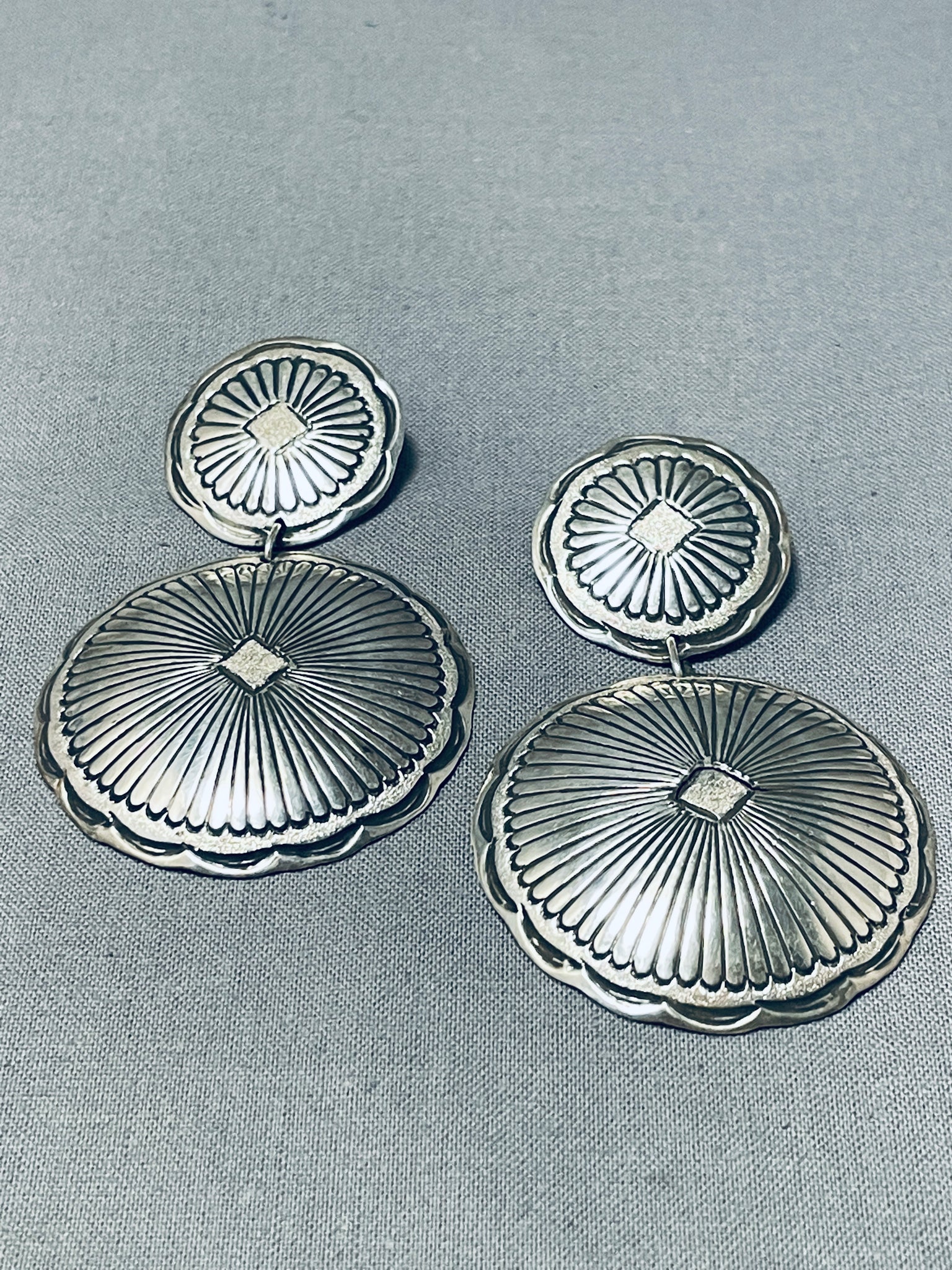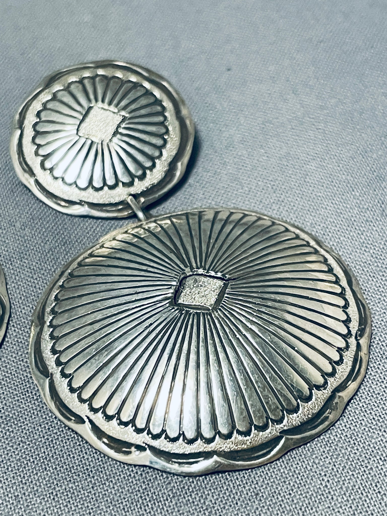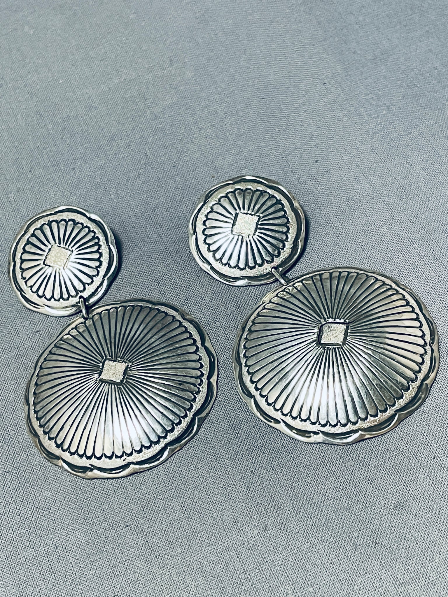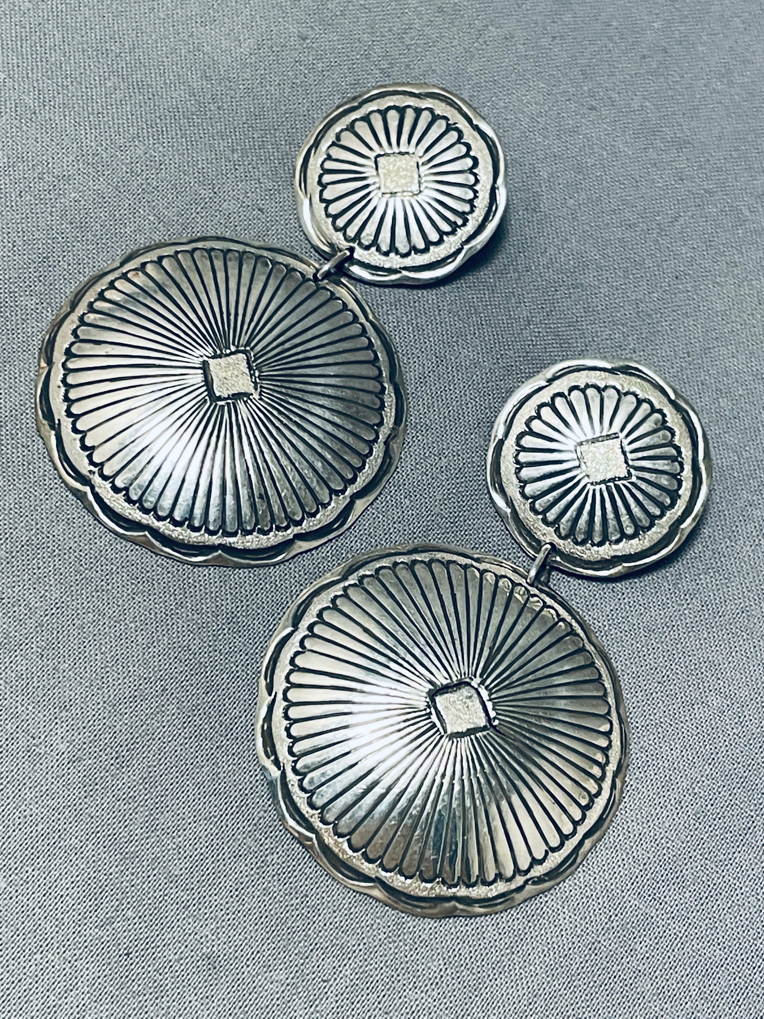 Spectacular Vintage Native American Navajo Sterling Silver Concho Earrings