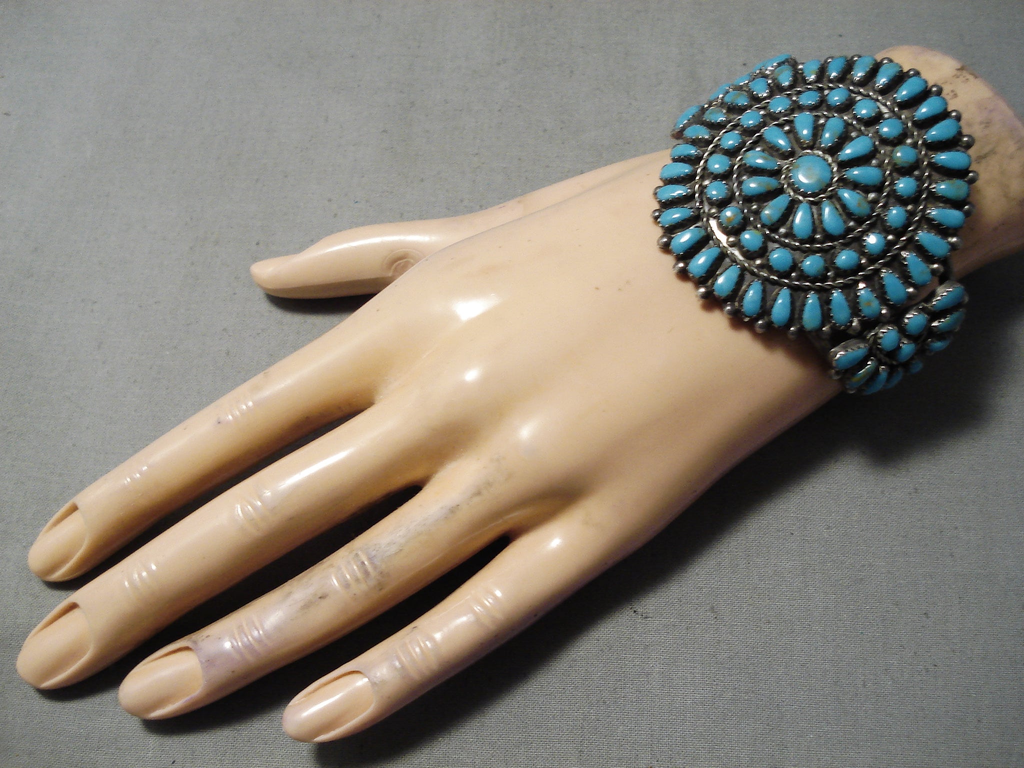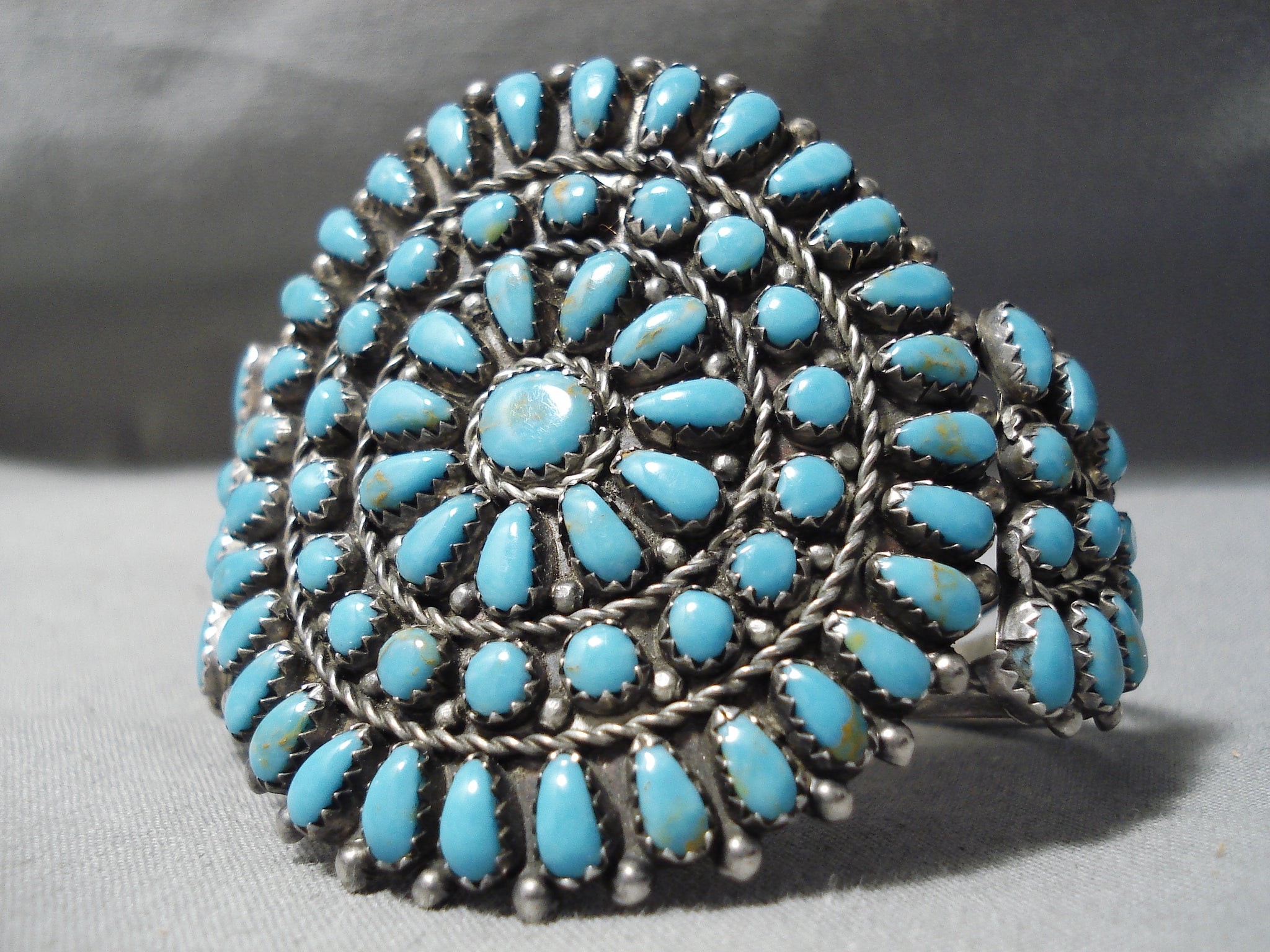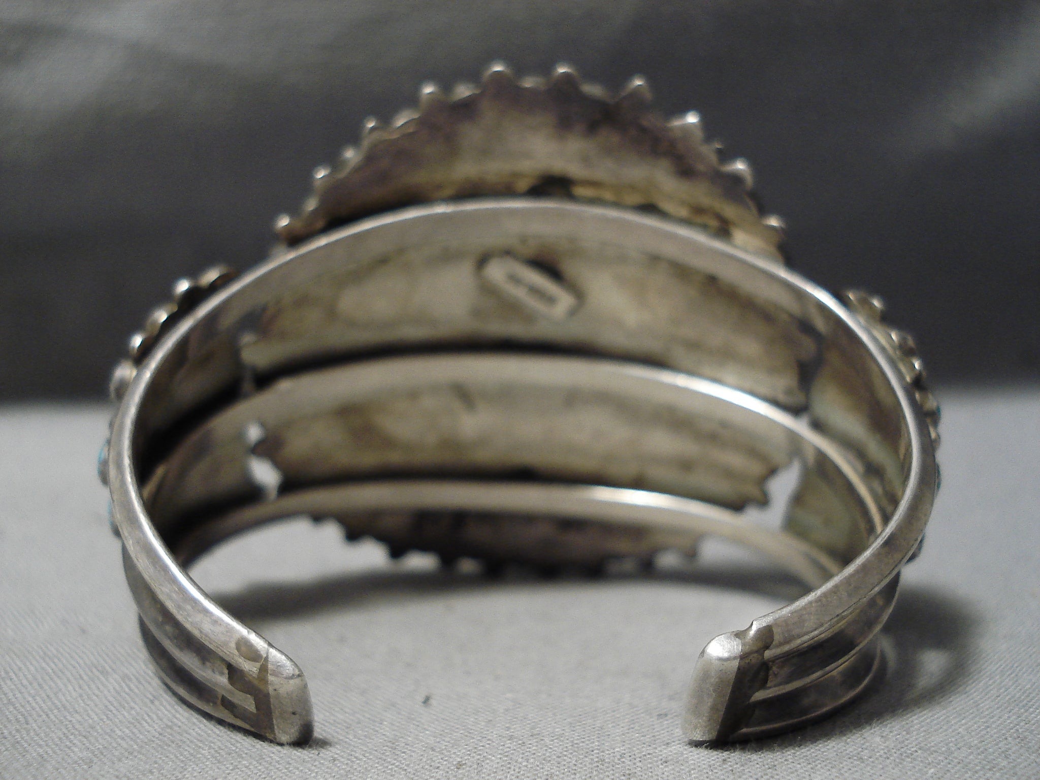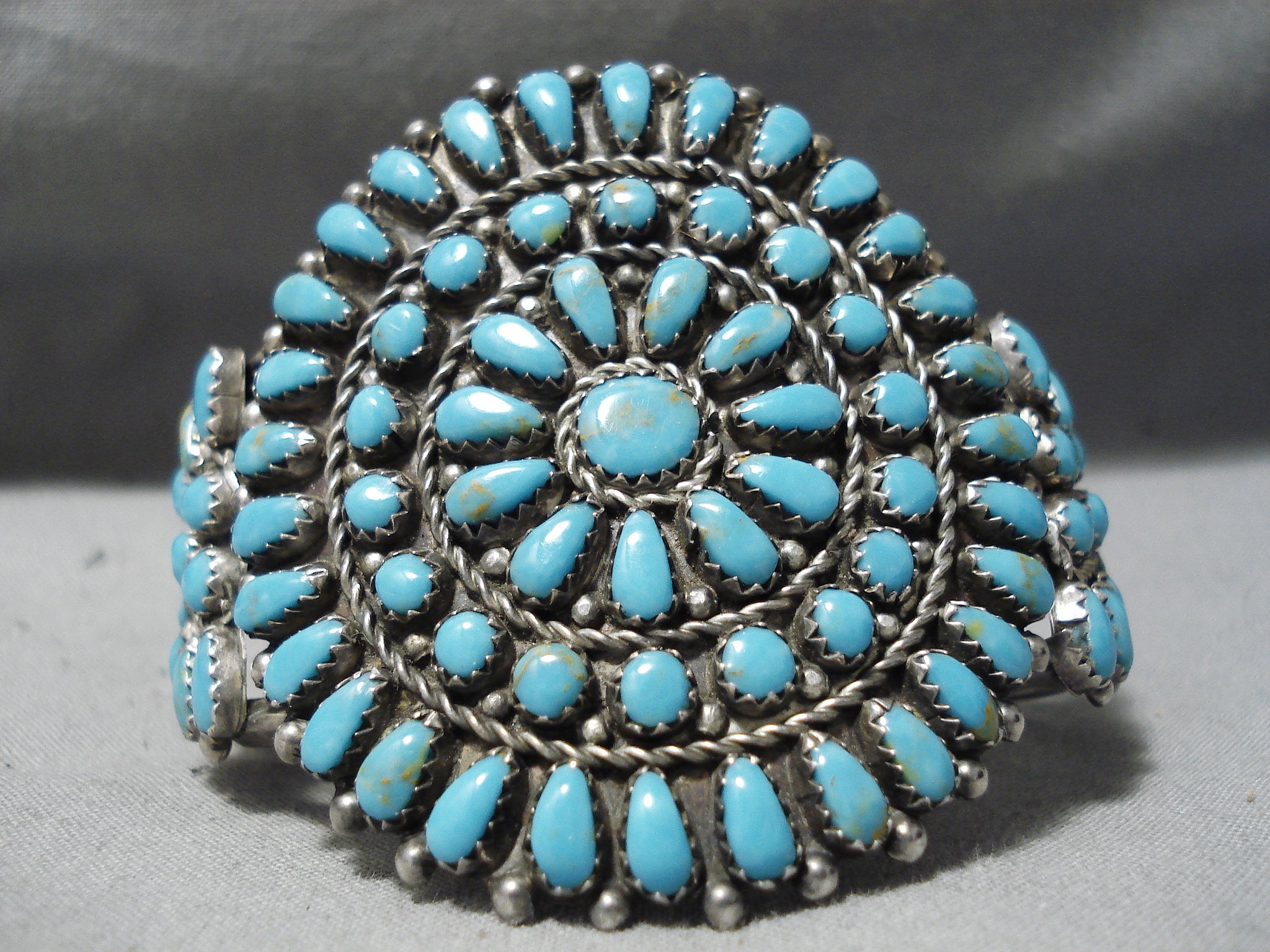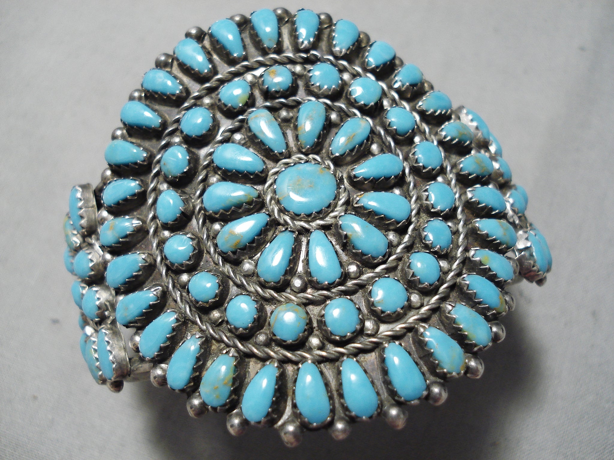 Spectacular Vintage Native American Zuni Blue Gem Turquoise Sterling Silver Bracelet Old