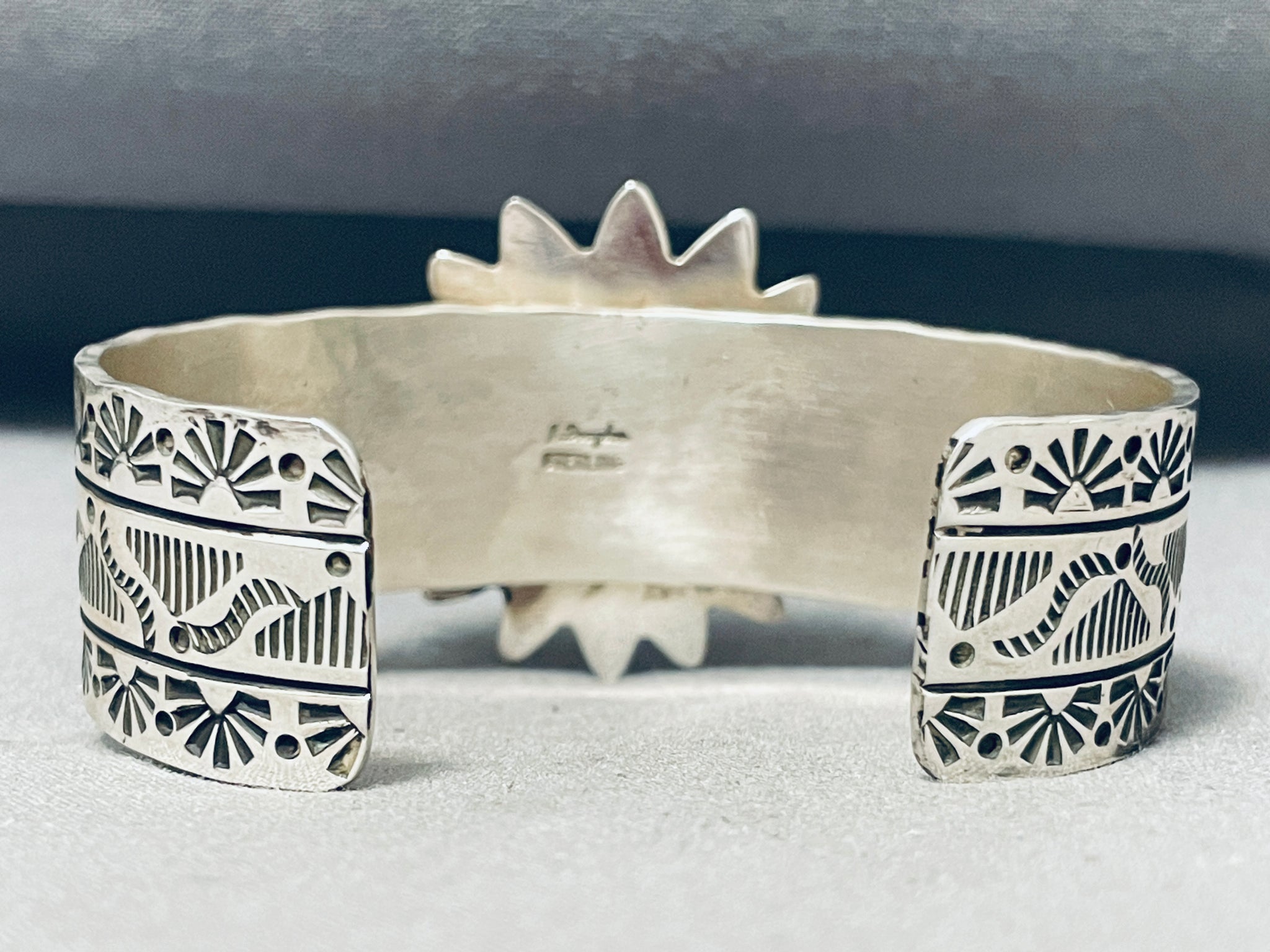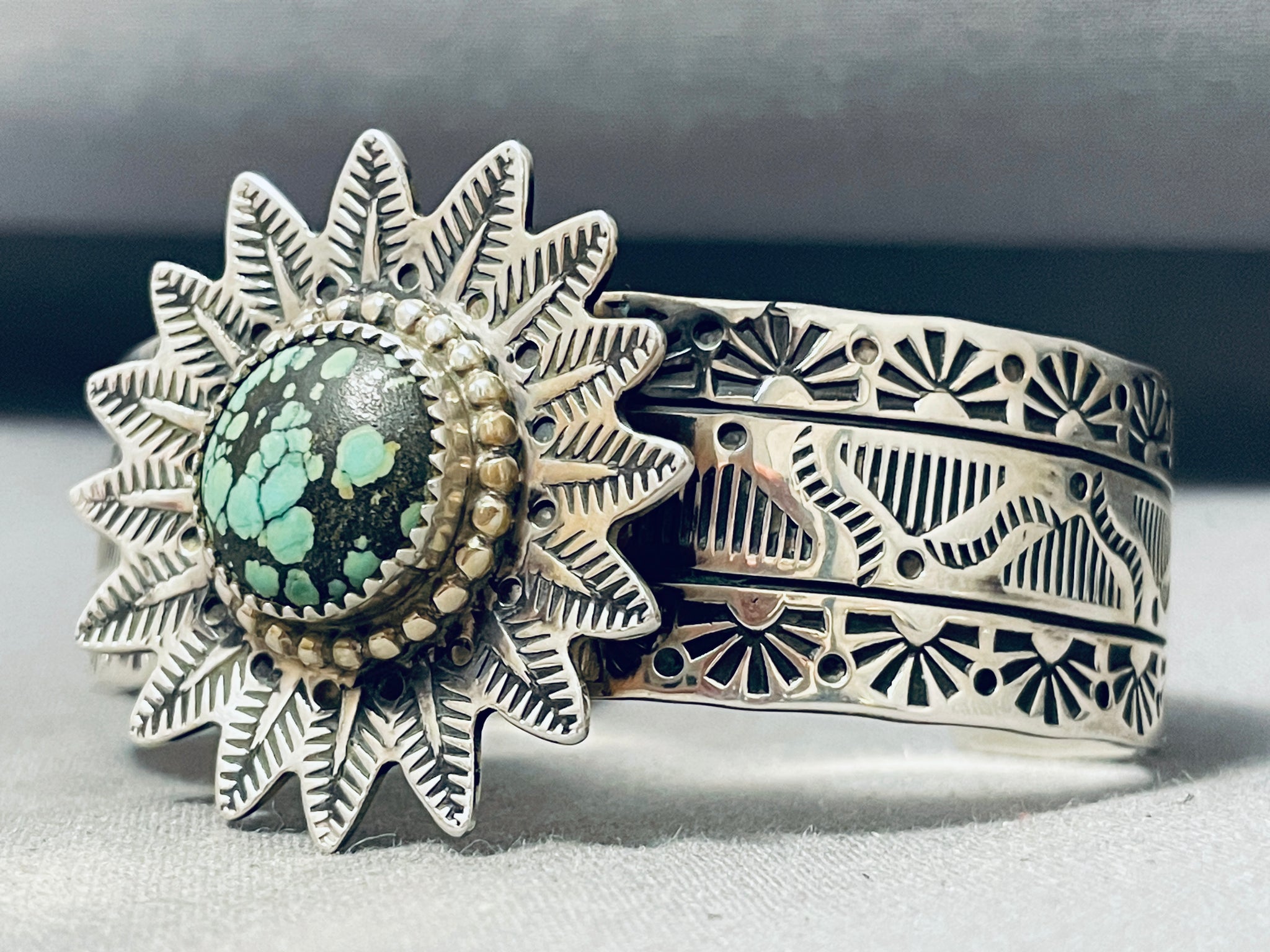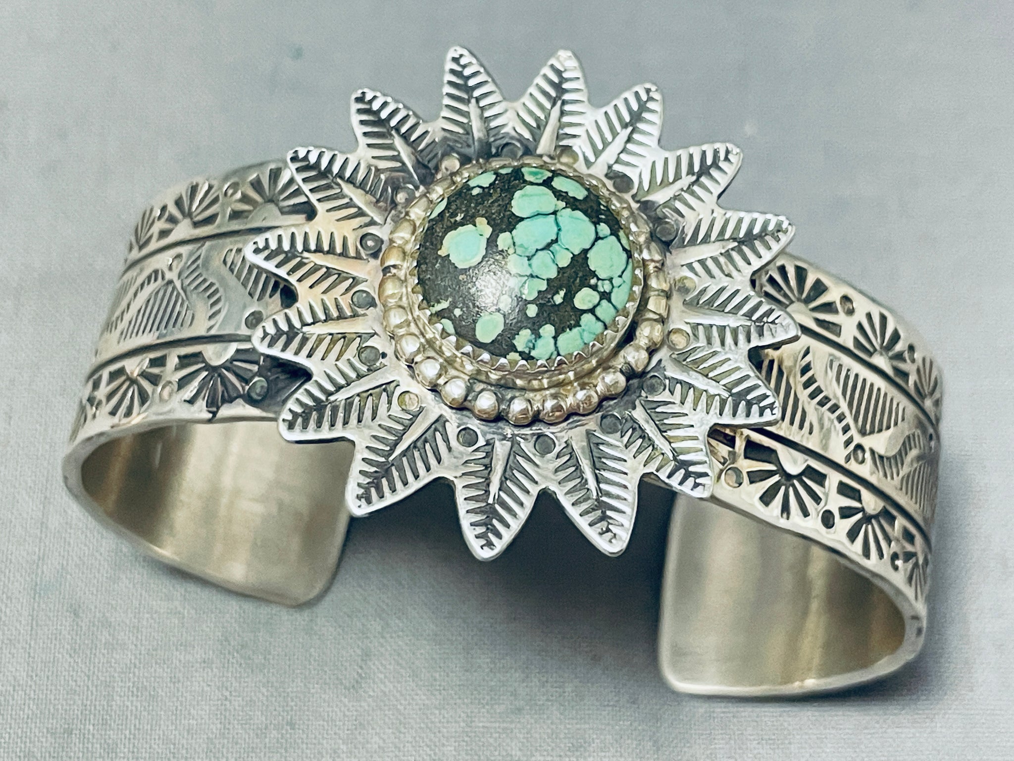 Star Basket Native American Navajo Spiderweb Turquoise Sterling Silver Bracelet Cuff