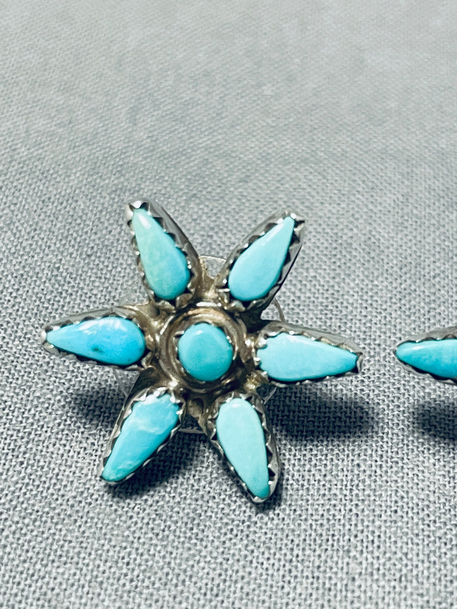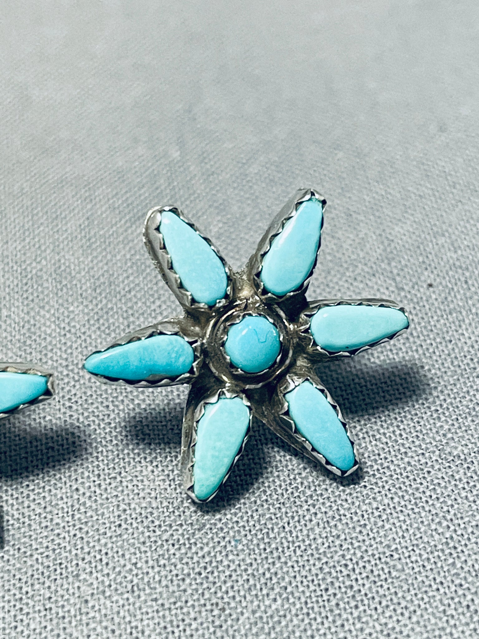 Star Vintage Native American Zuni Blue Gem Turquoise Sterling Silver Earrings