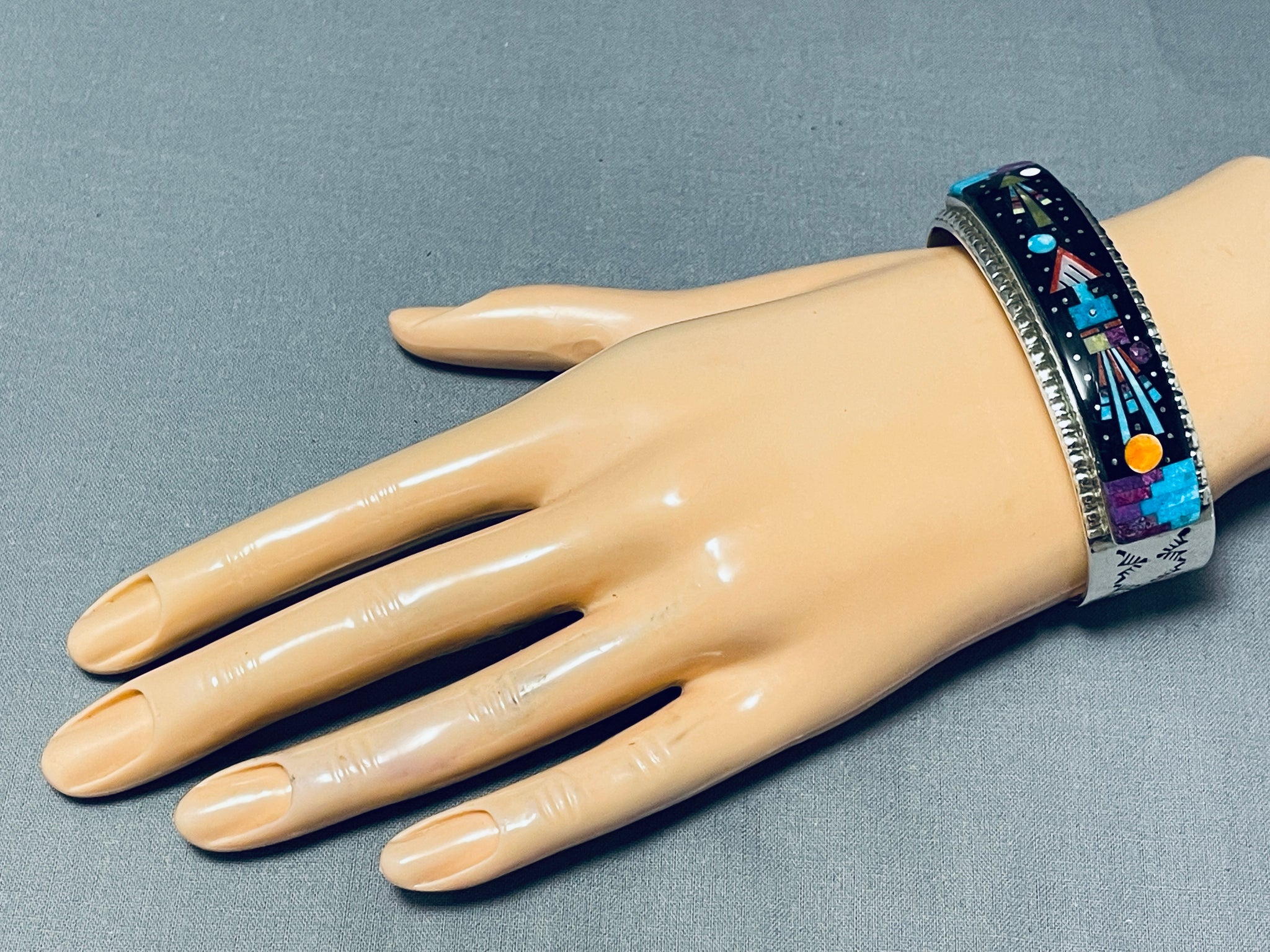 Stars In The Sky Native American Navajo Turquoise Sterling Silver Bracelet