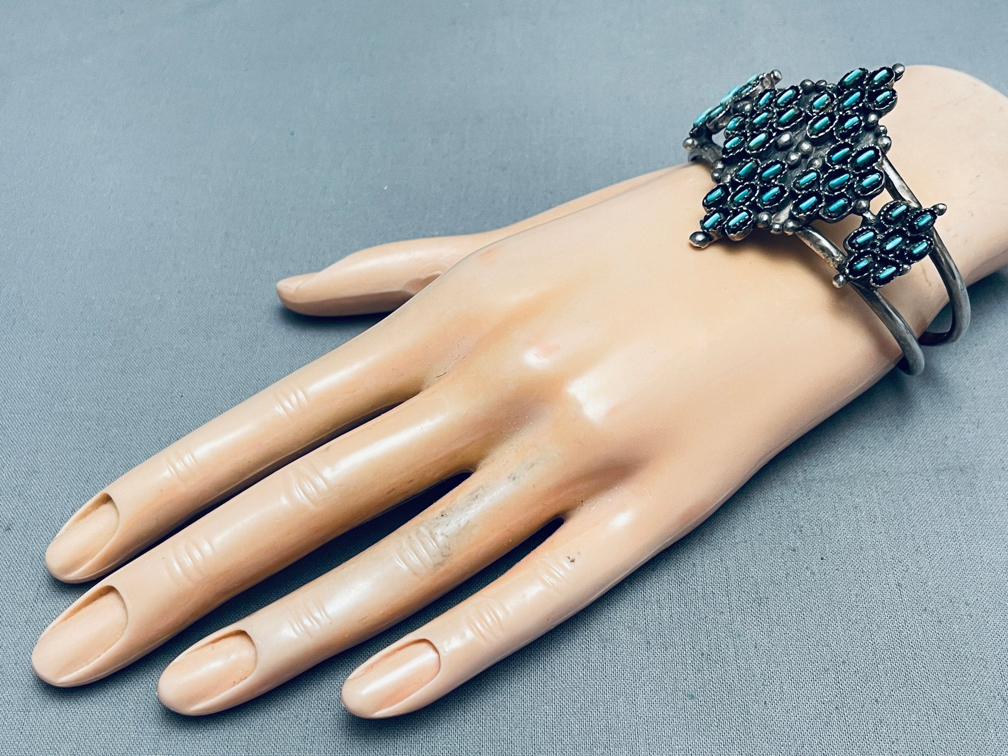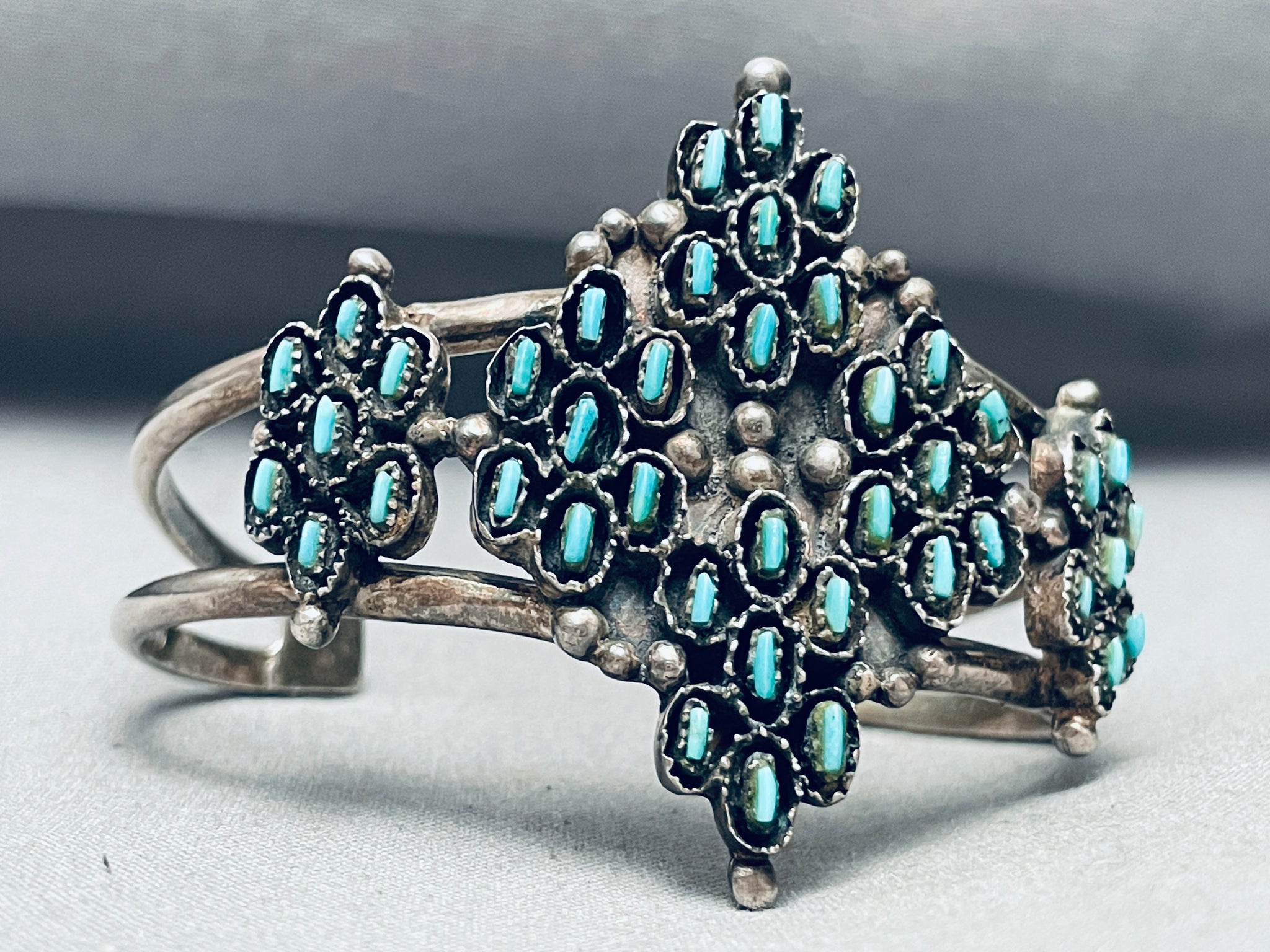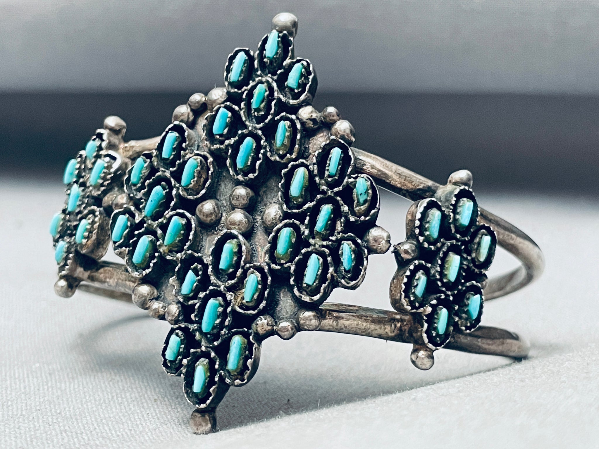 Stars Of Turquoise Vintage Native American Zuni Sterling Silver Bracelet Cuff