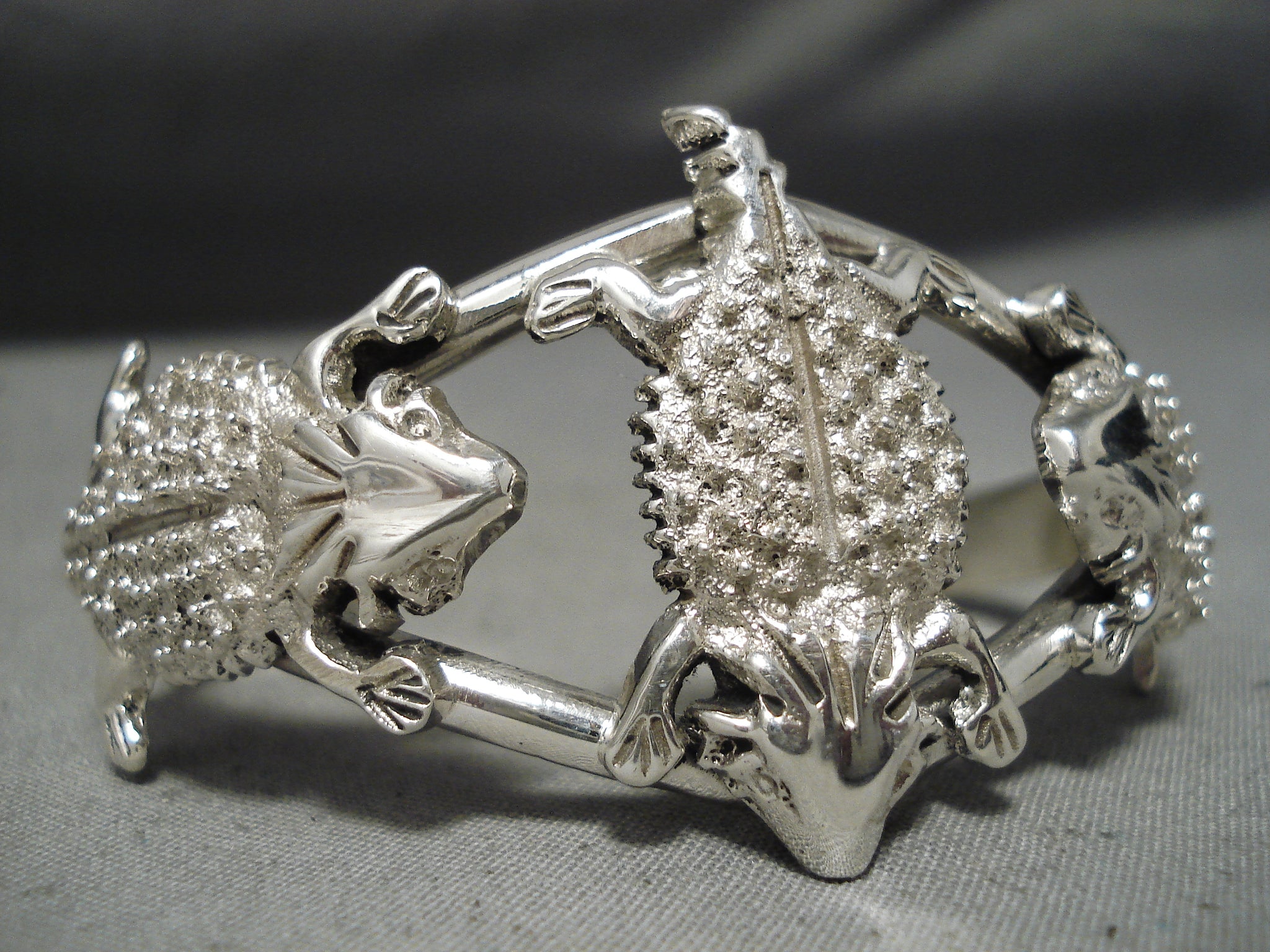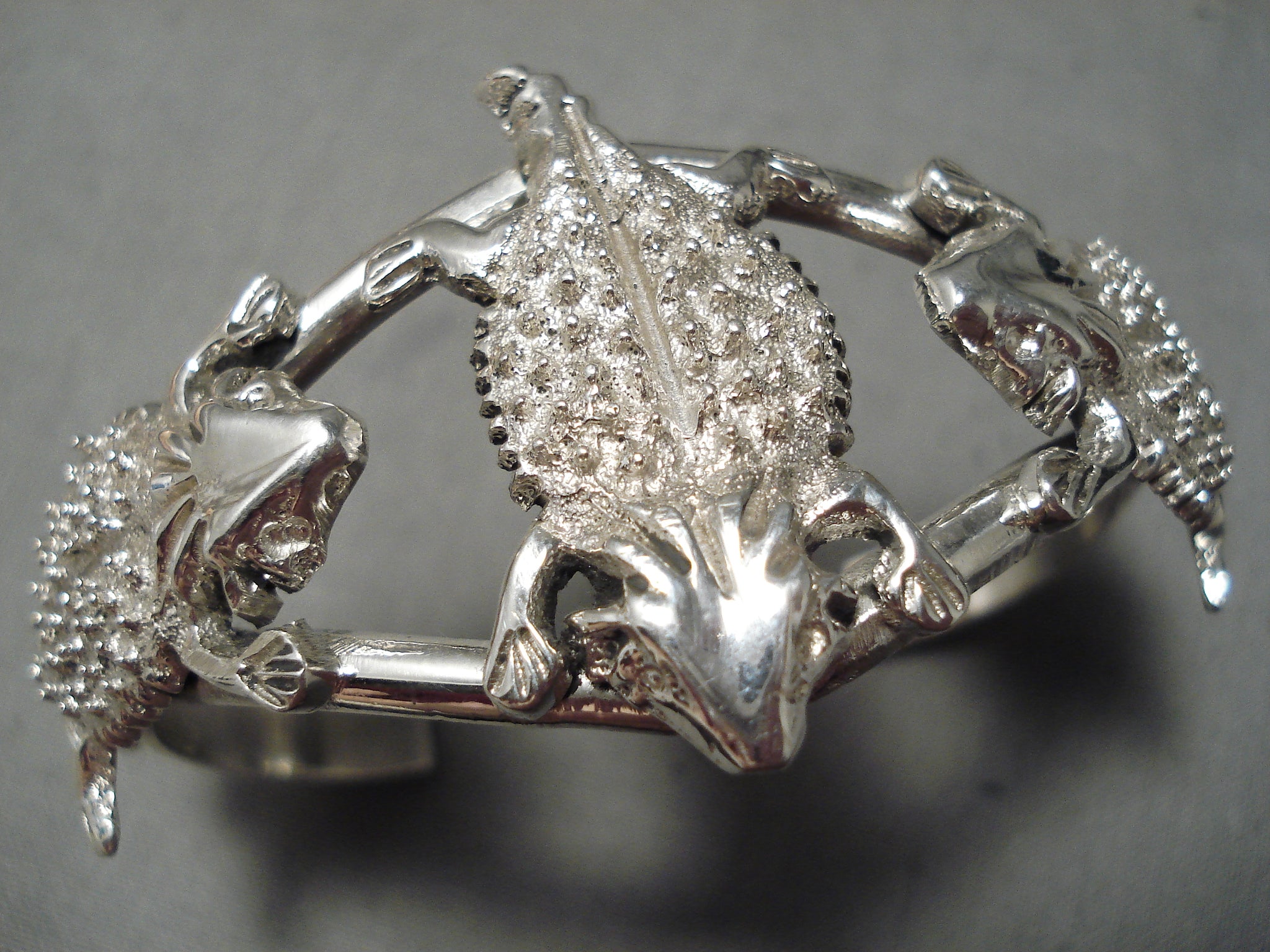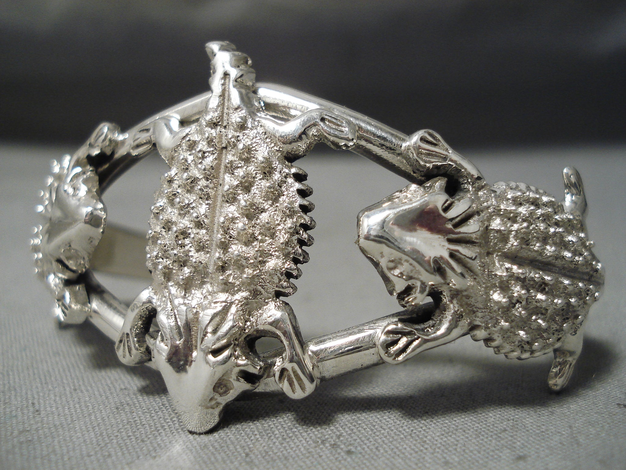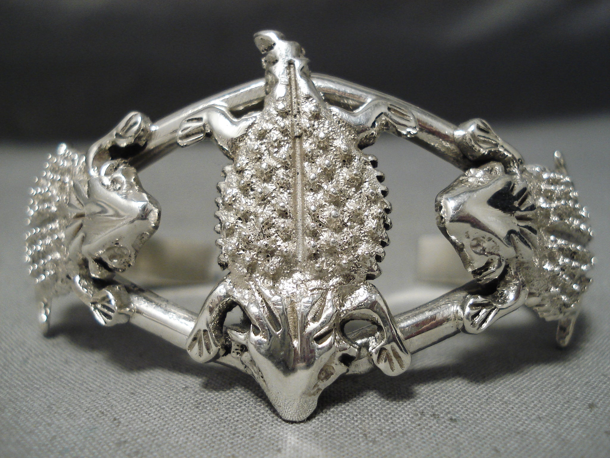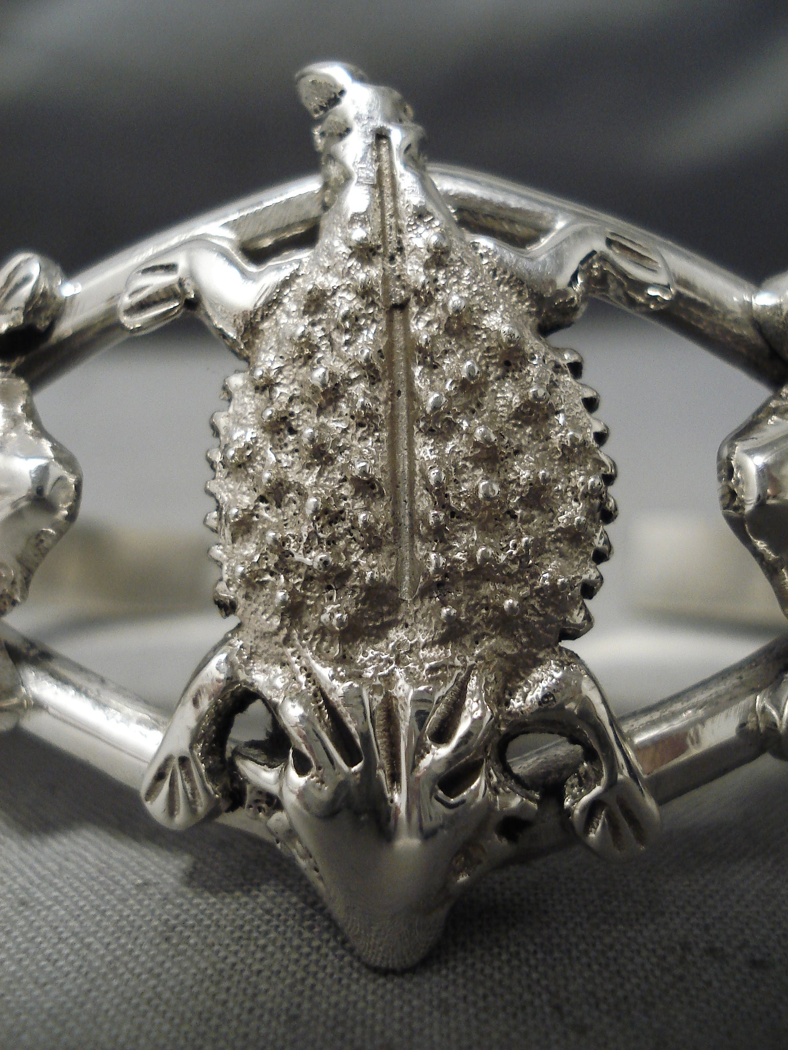 Statement Heavy Toad Vintage Native American Navajo Sterling Silver Bracelet Cuff