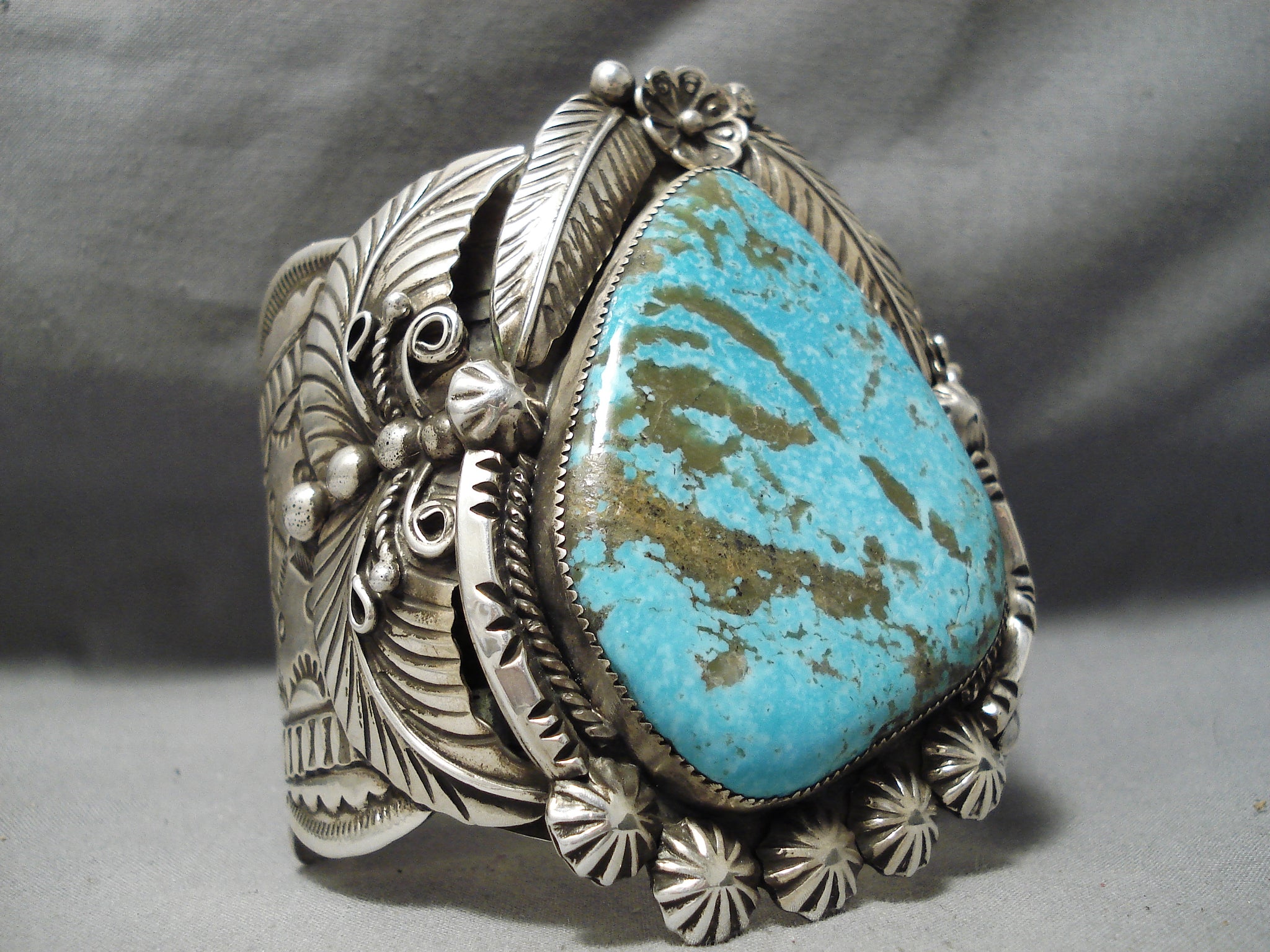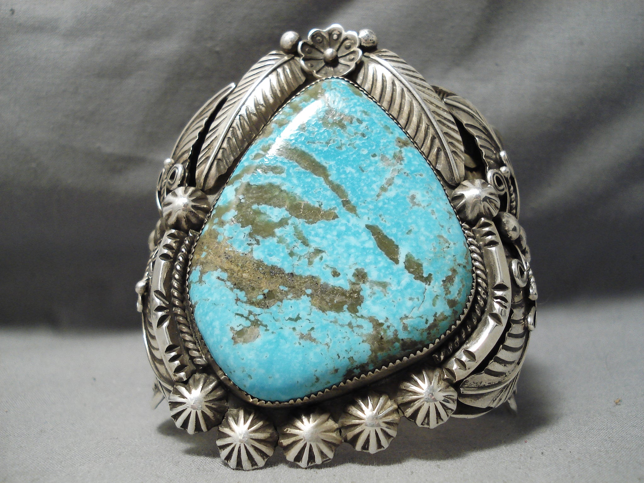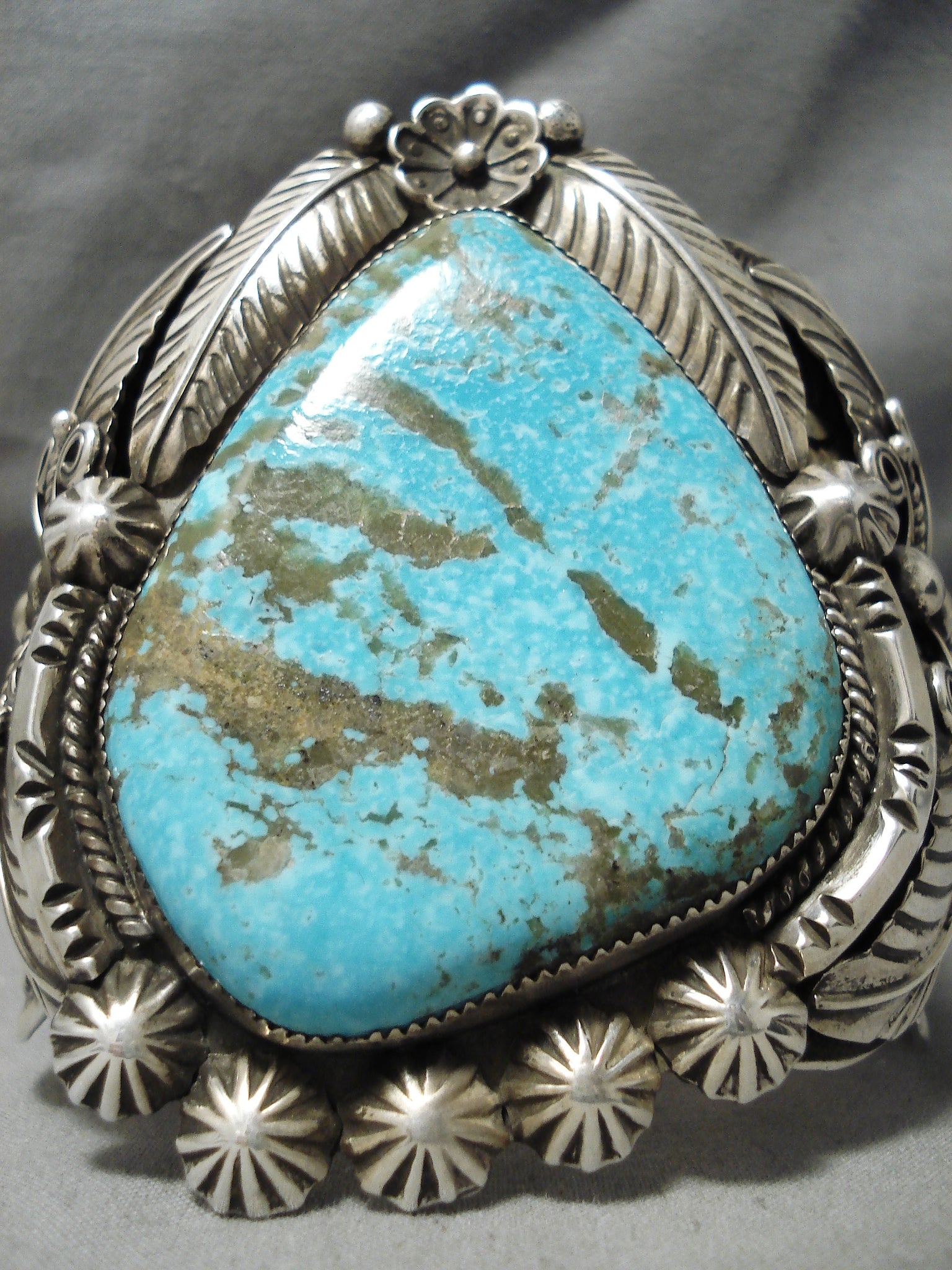 Statement Vintage Native American Navajo Colossal Turquoise Slab Sterling Silver Bracelet
