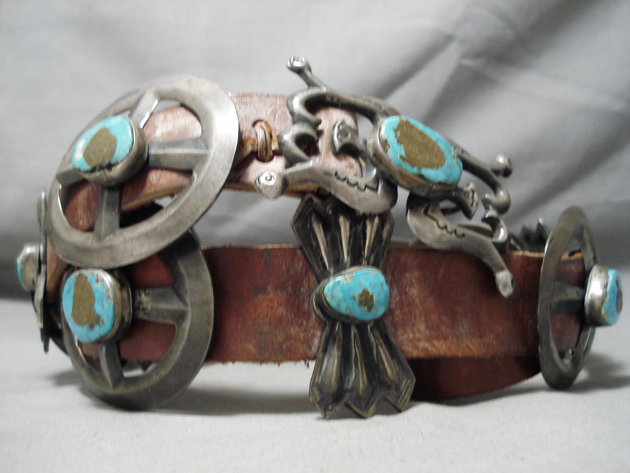 Statement Vintage Native American Navajo Rare Turquoise Sterling Silver Concho Belt Old