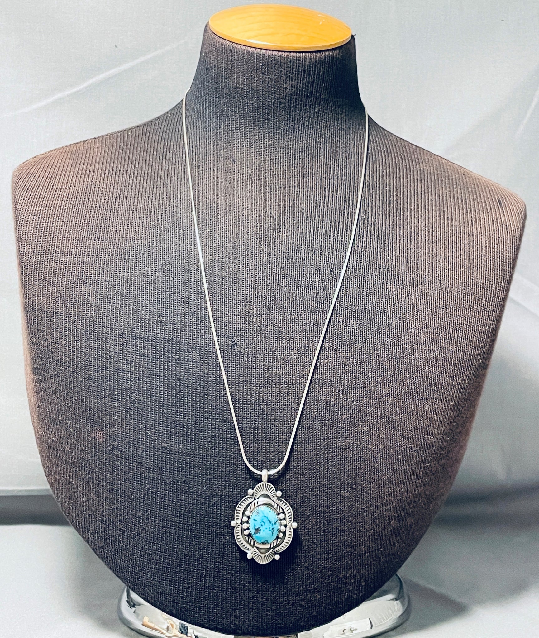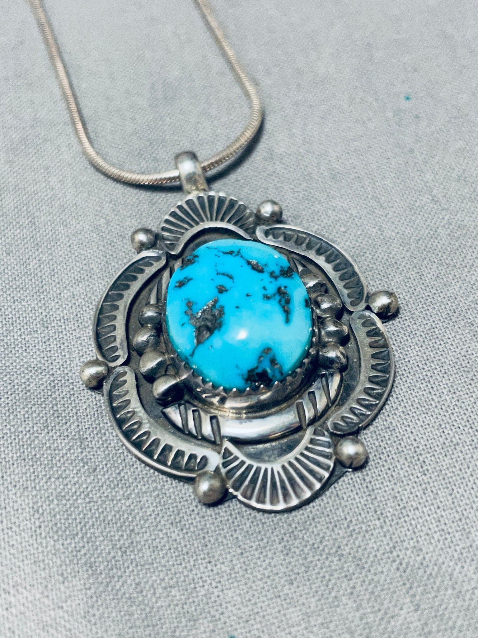 Stealthy Vintage Native American Navajo Turquoise Sterling Silver Sun Necklace