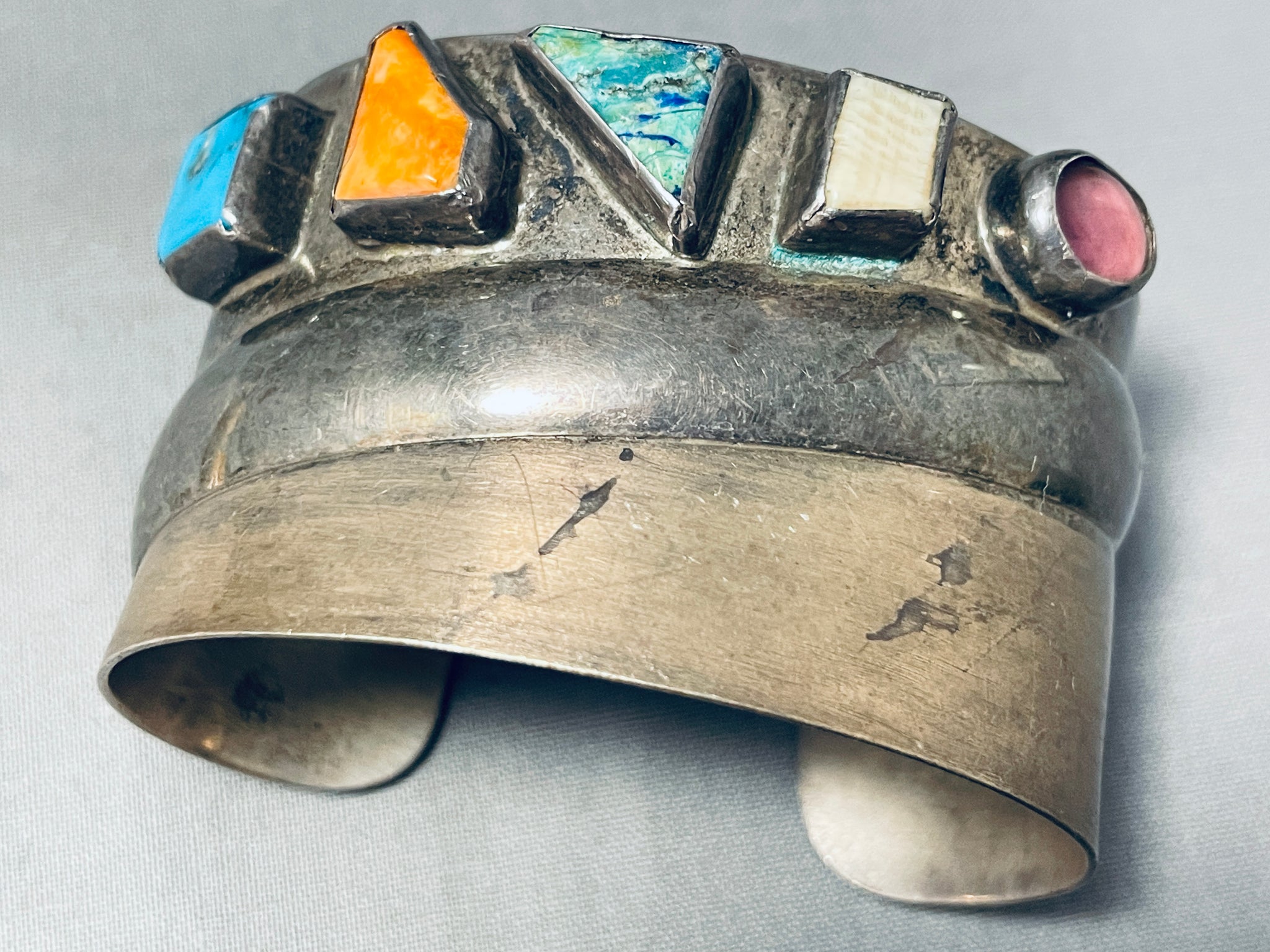 Stone Sampling Vintage Native American Navajo Turquoise Sterling Silver Bracelet