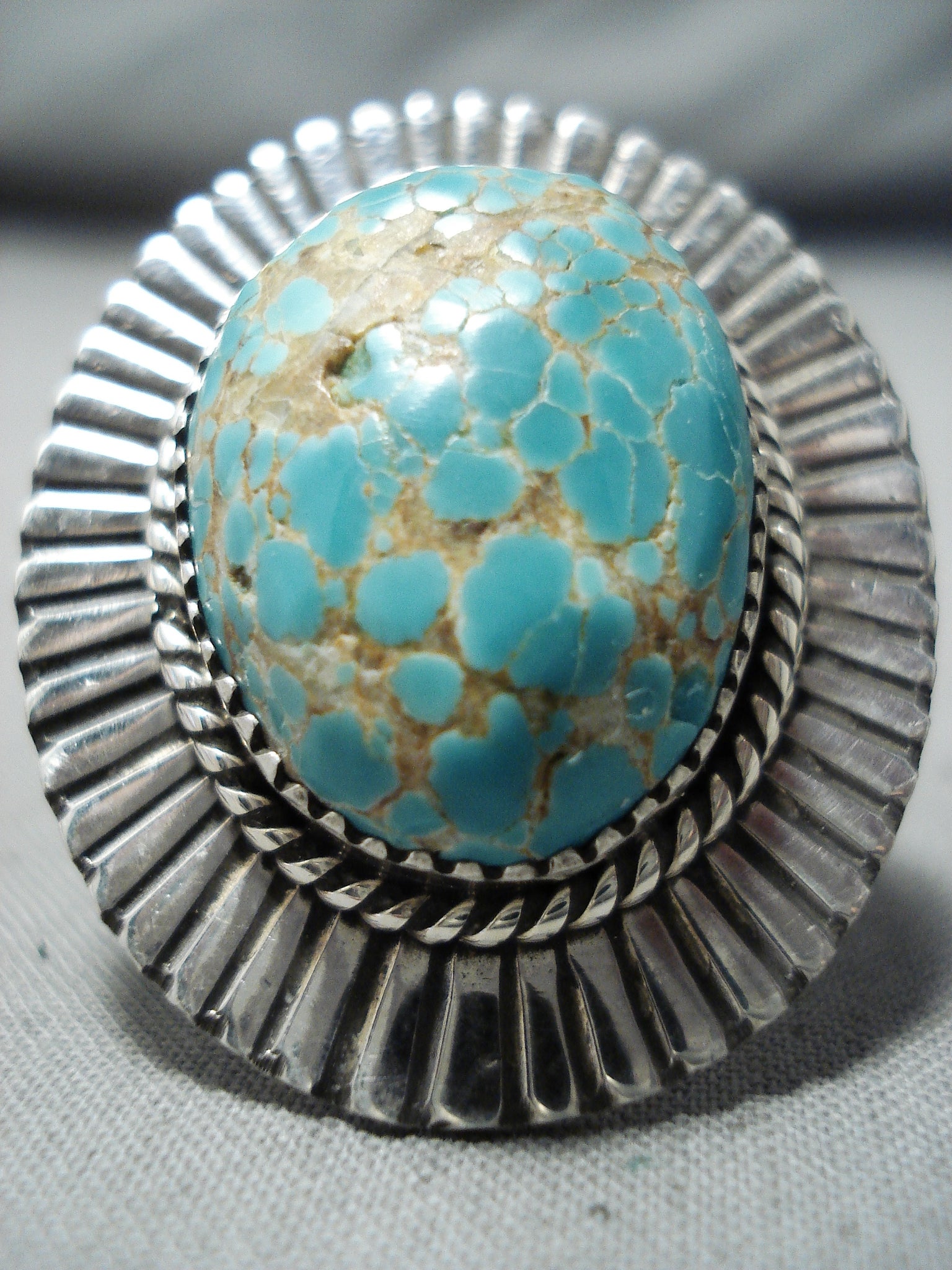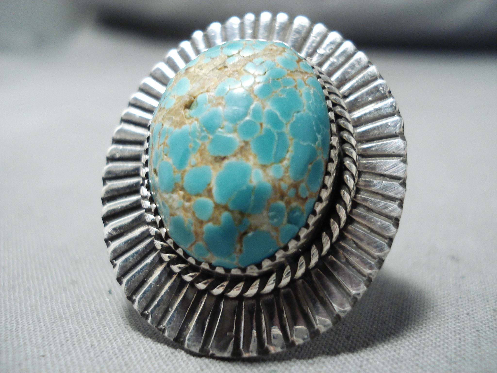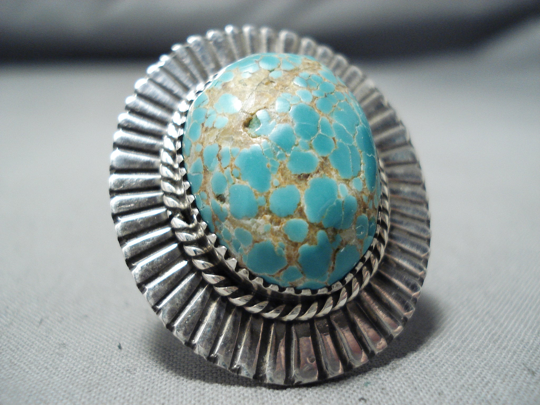 Striking San Felipe Native American 8 Turquoise Sterling Silver Ring