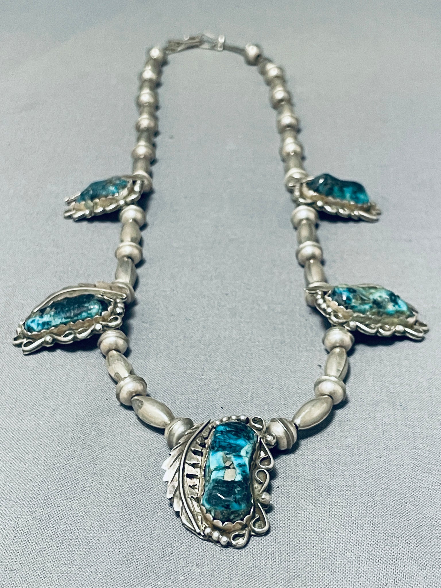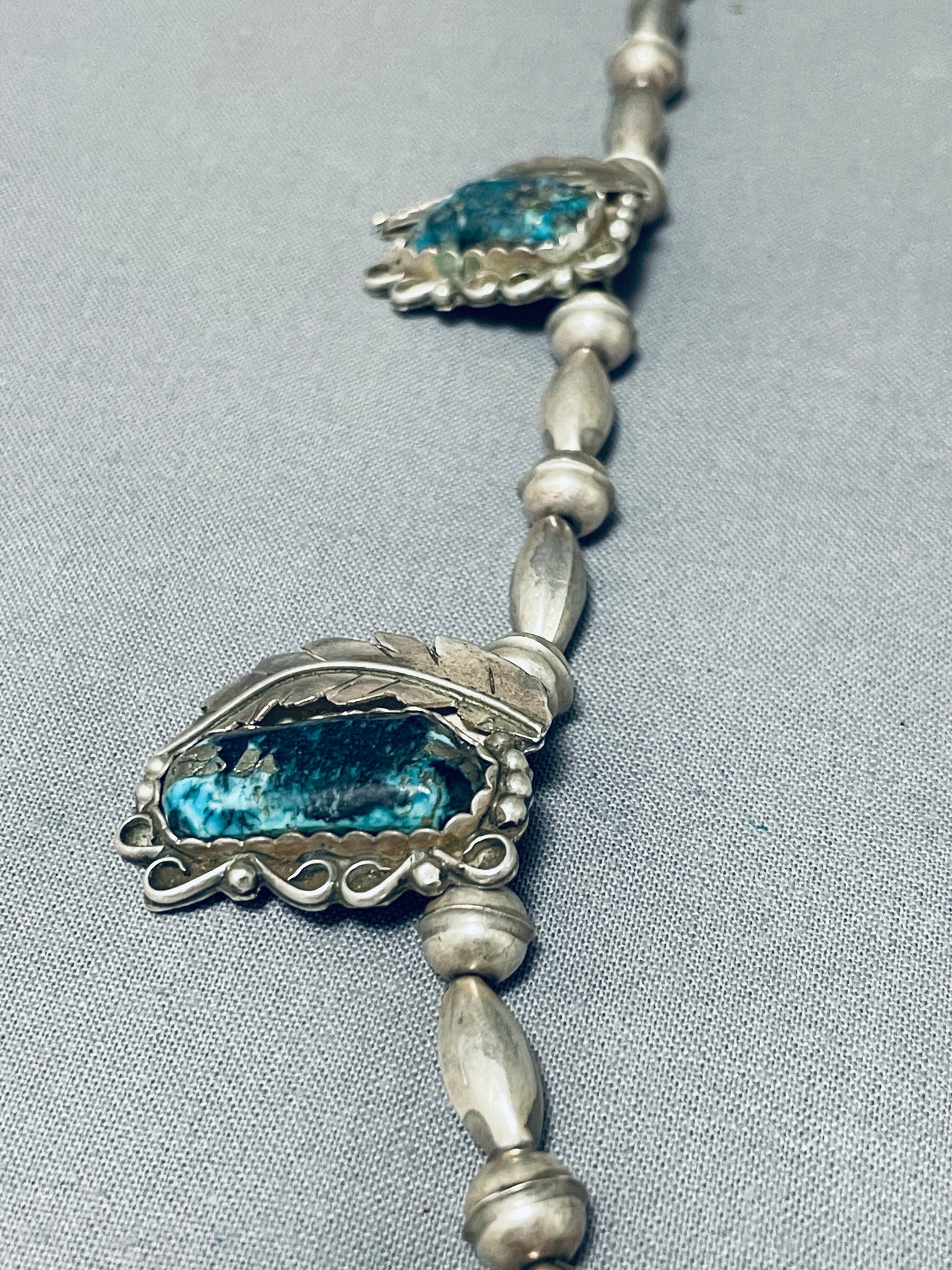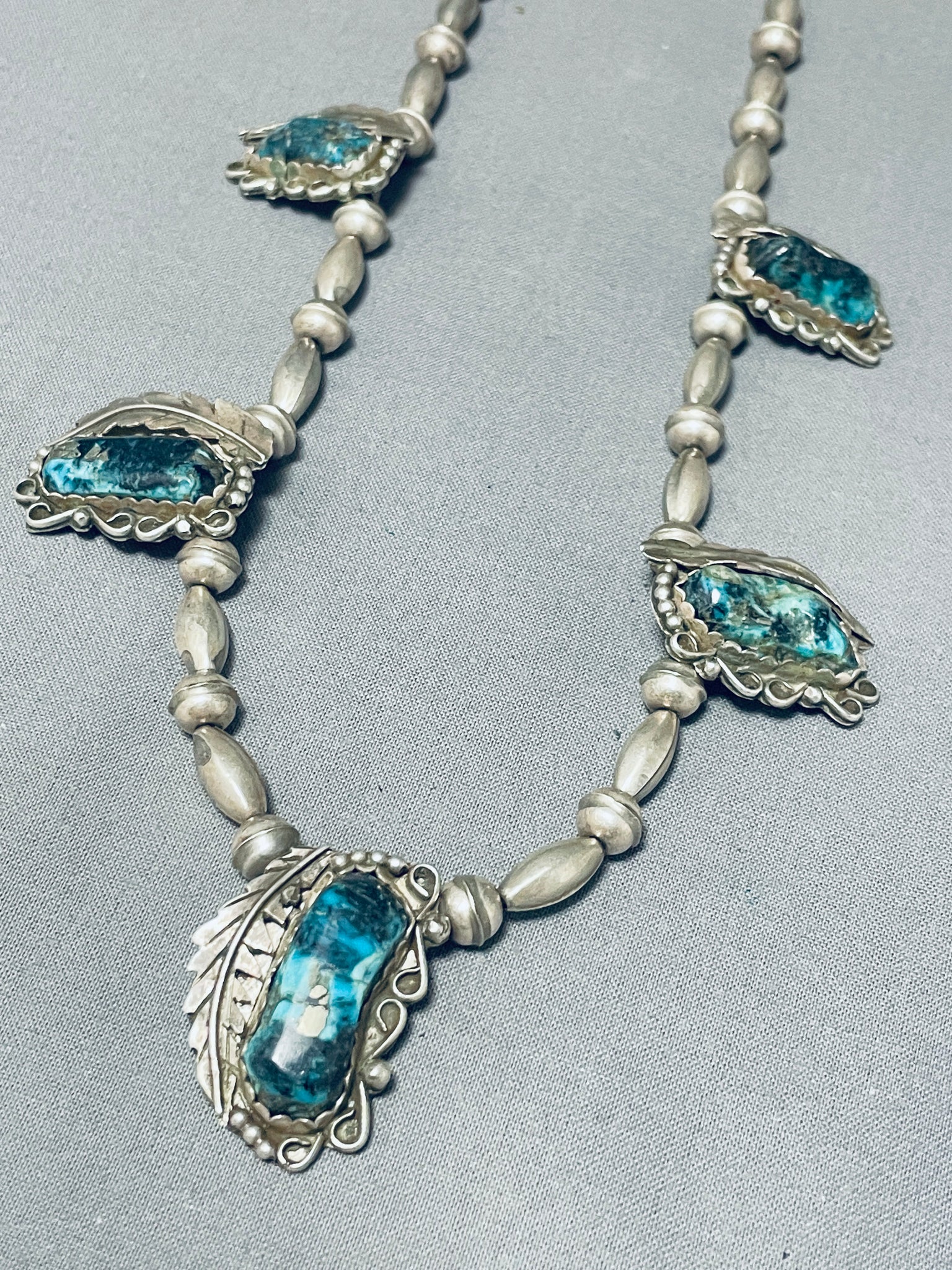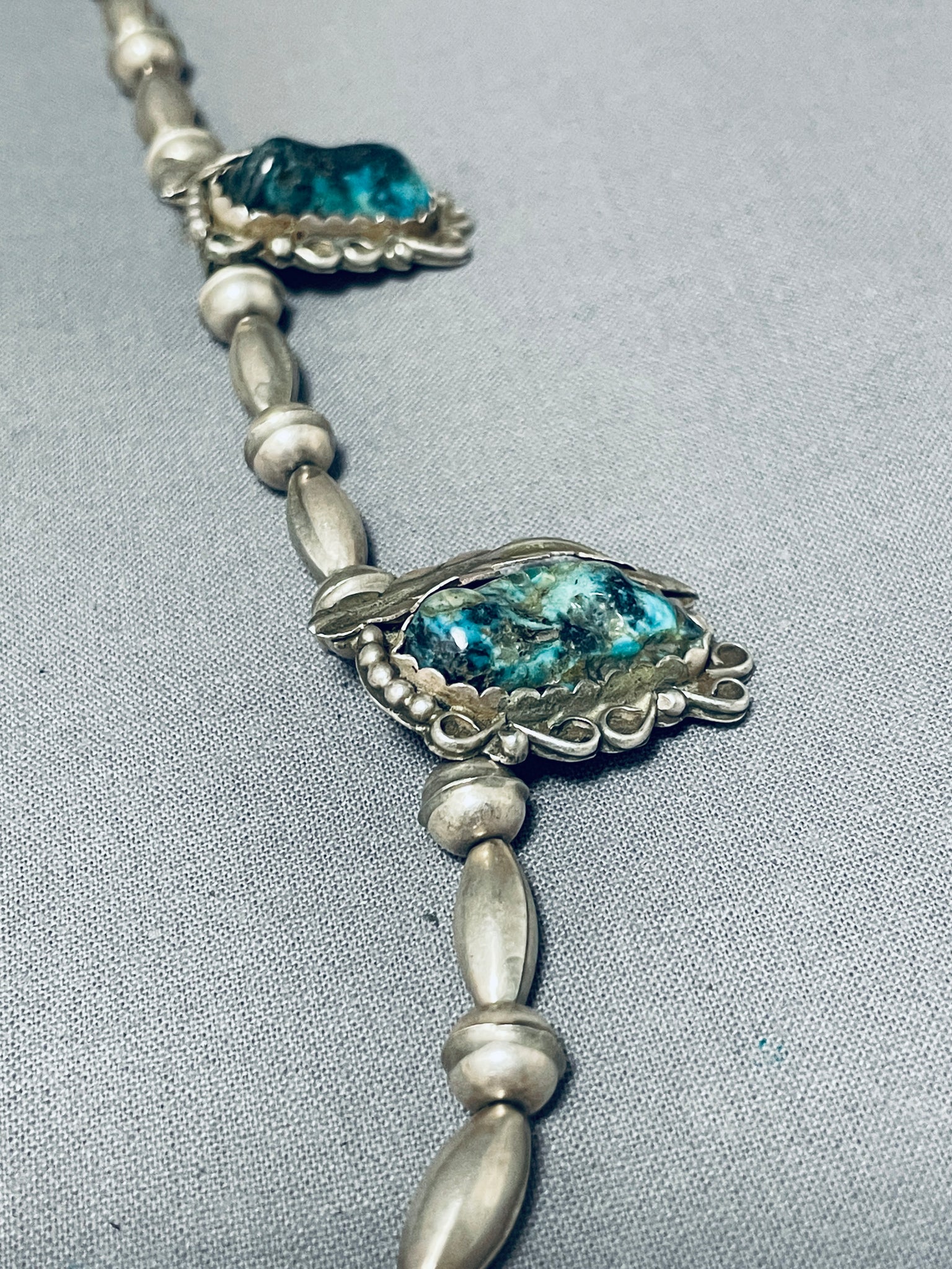 Striking Vintage Native American Navajo Aqua Mountain Turquoise Sterling Silver Necklace