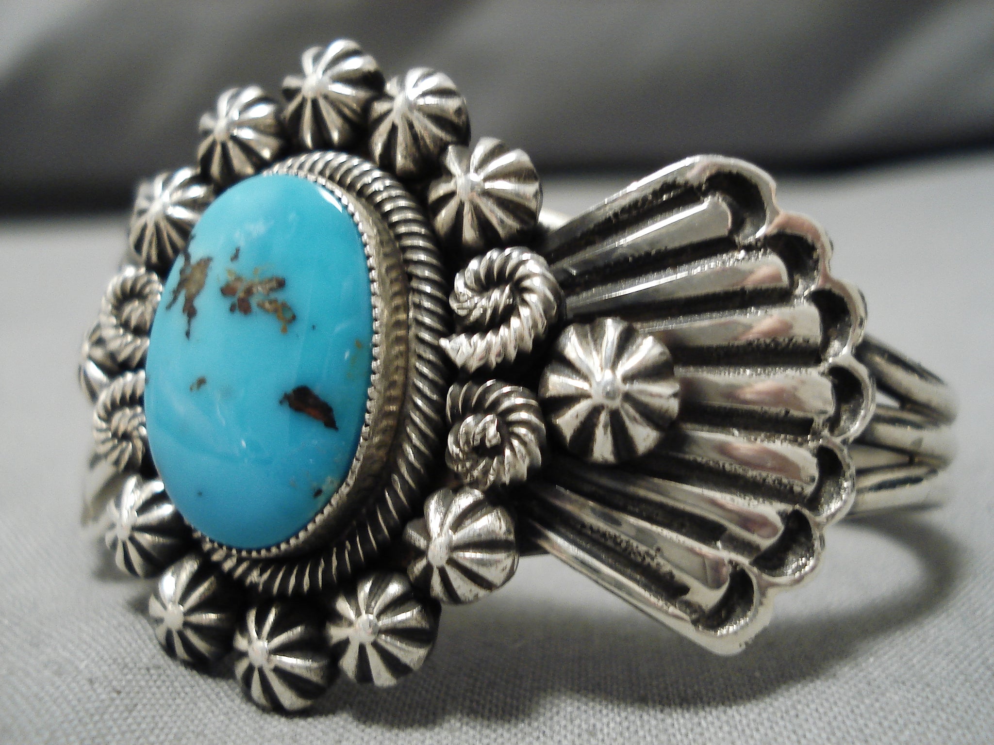 Striking Vintage Native American Navajo Bisbee Turquoise Martinez Sterling Silver Bracelet