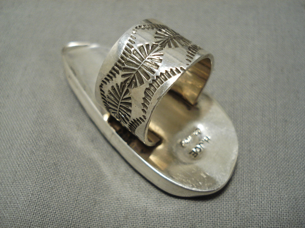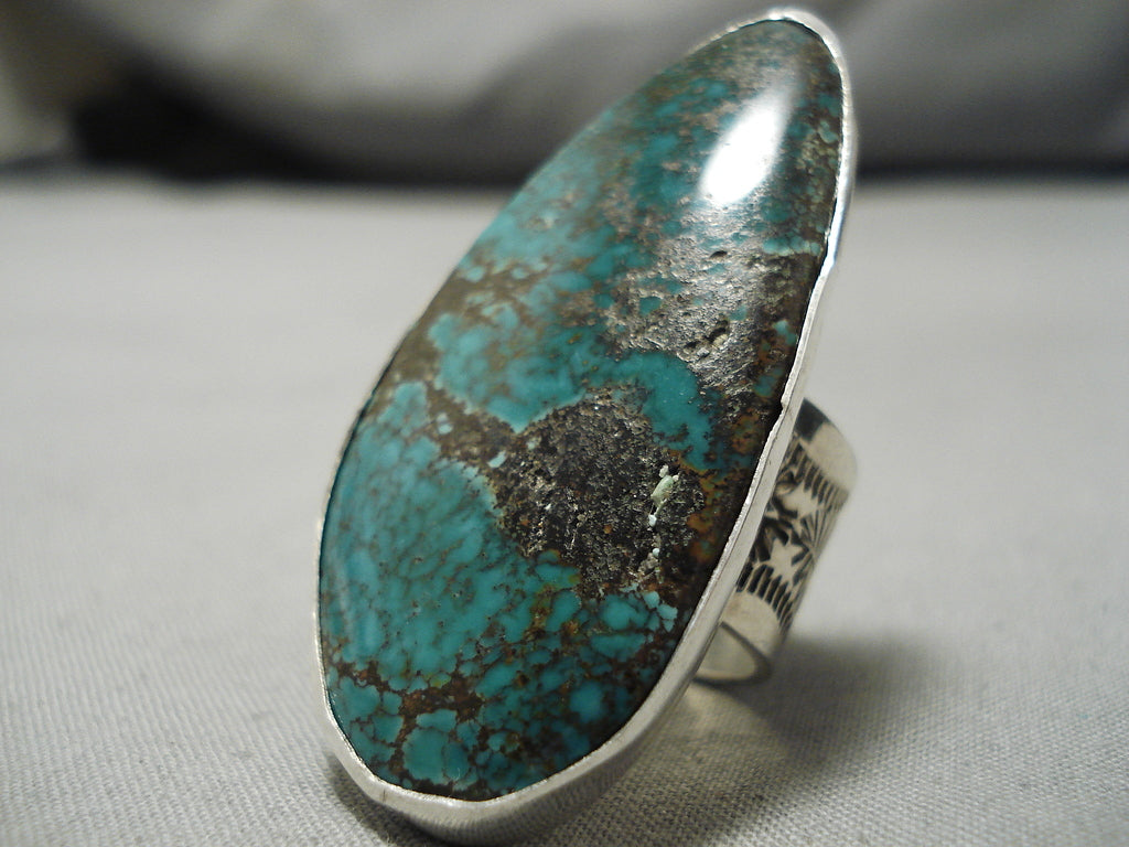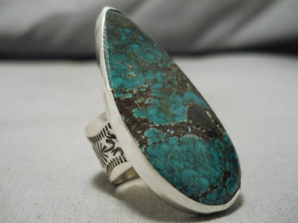 Striking Vintage Native American Navajo H Joe Deep Green Turquoise Sterling Silver Ring