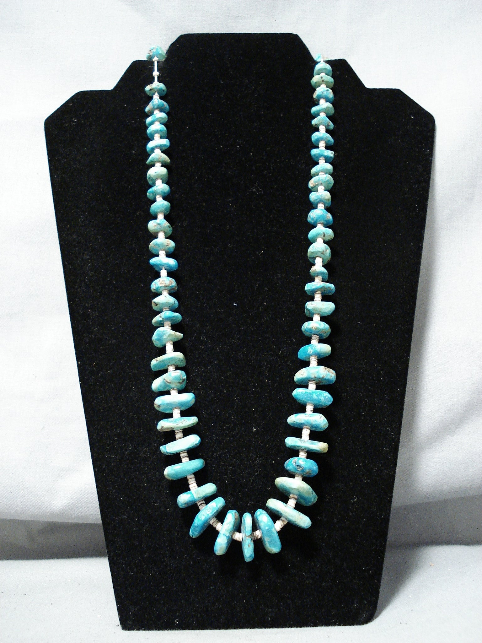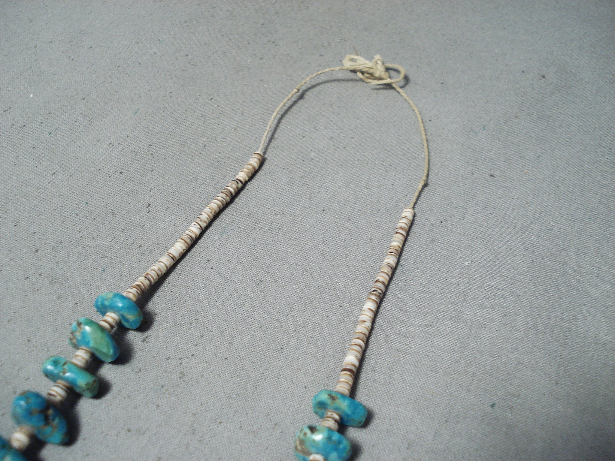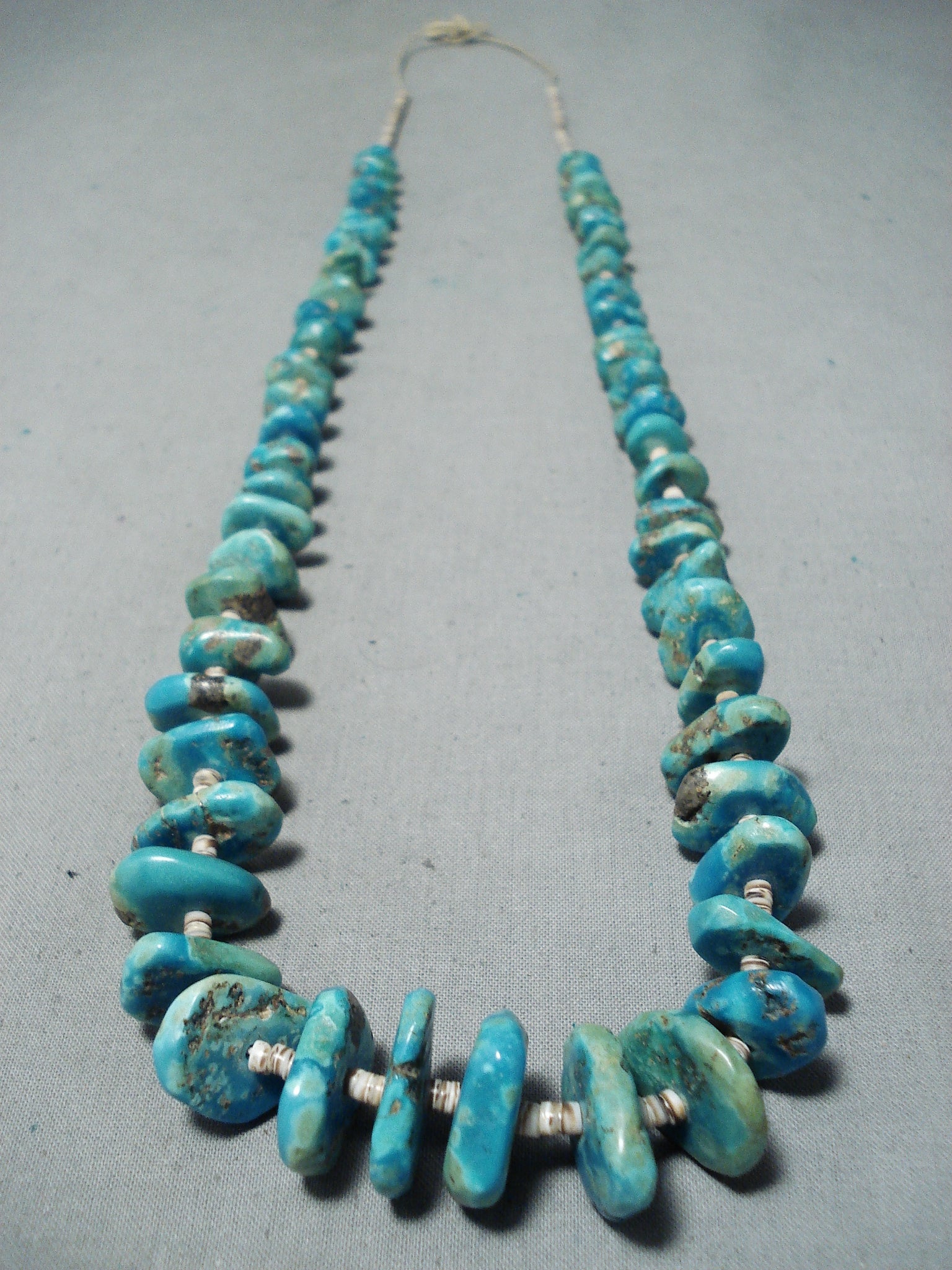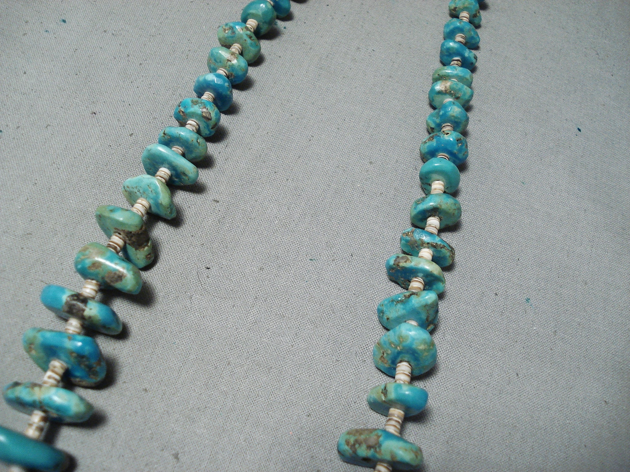 Striking Vintage Native American Navajo Kingman Royston Turquoise Heishi Necklace