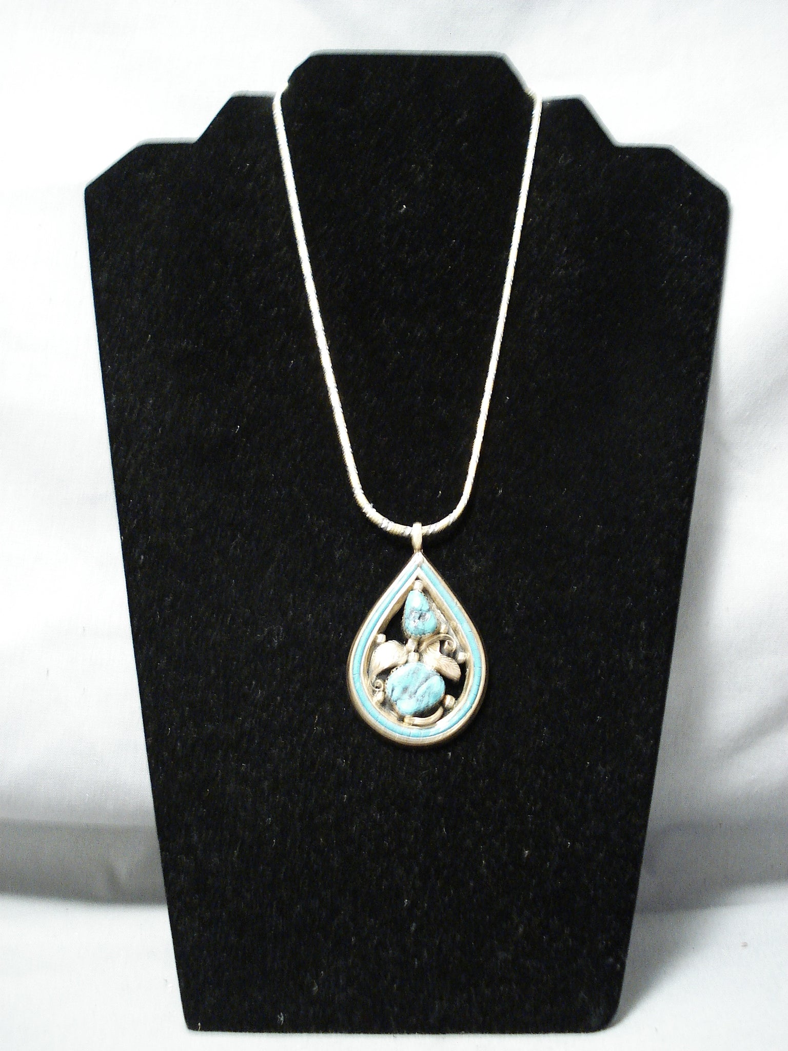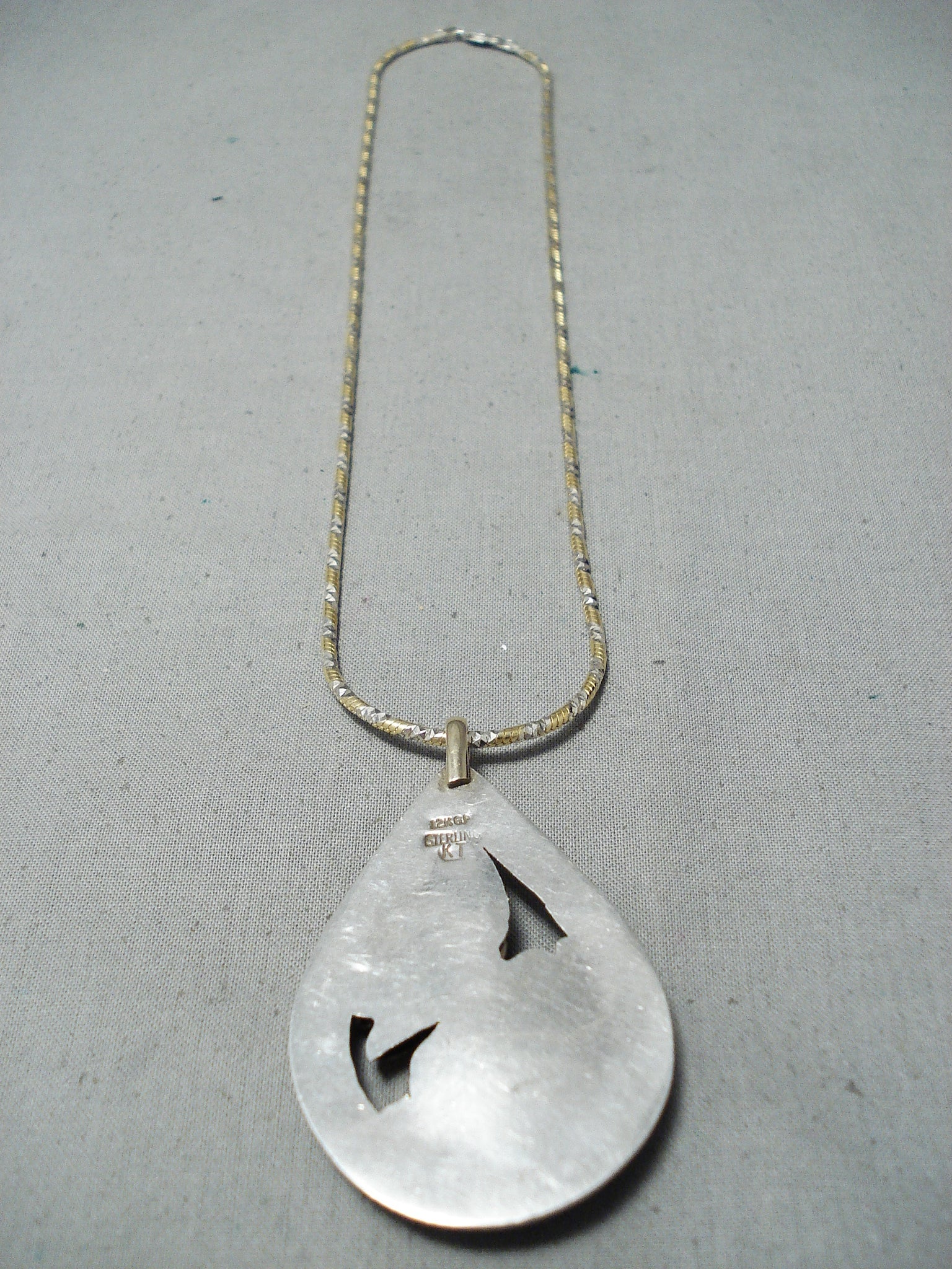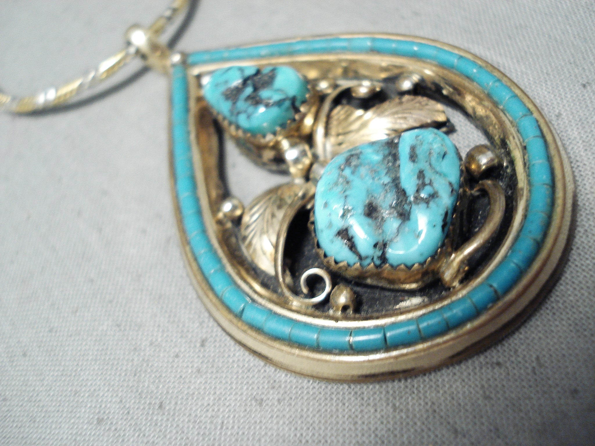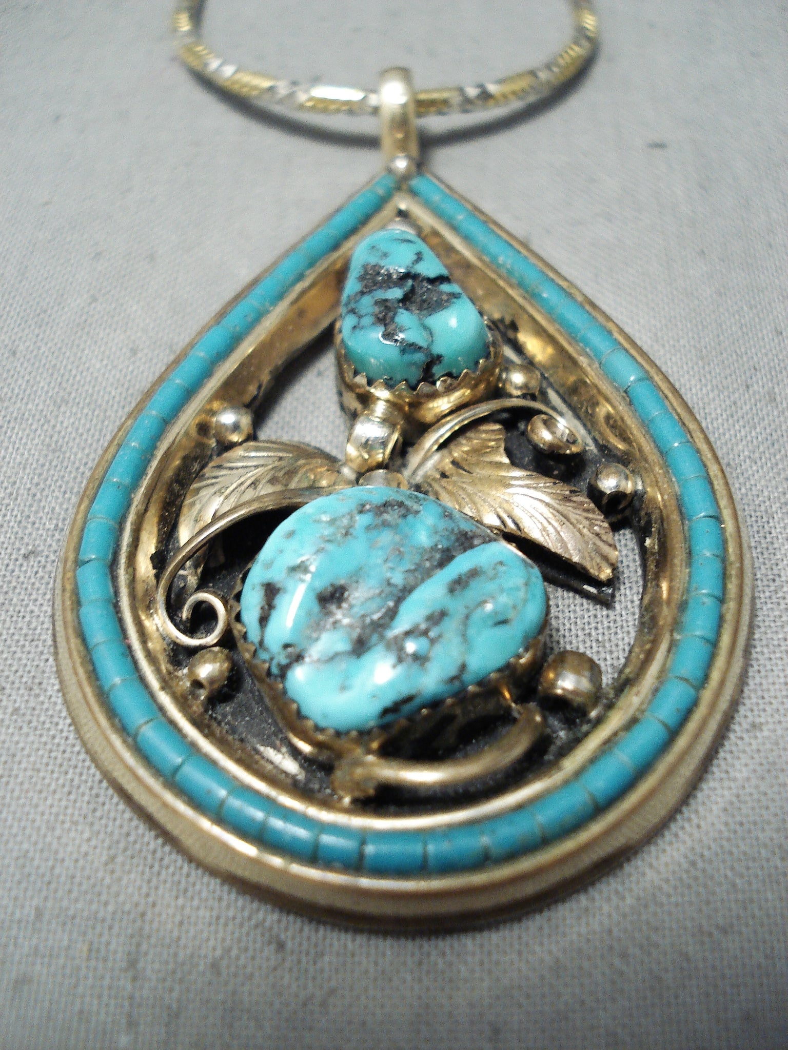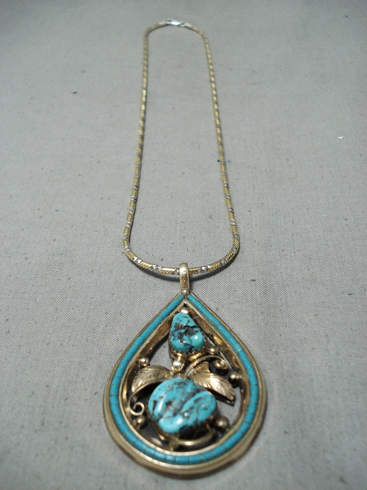 Striking Vintage Native American Navajo Sleeping Beauty Sterling Silver Gold Fill Necklace
