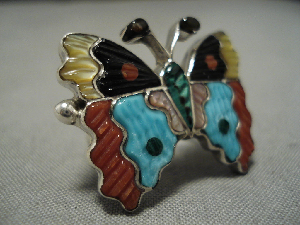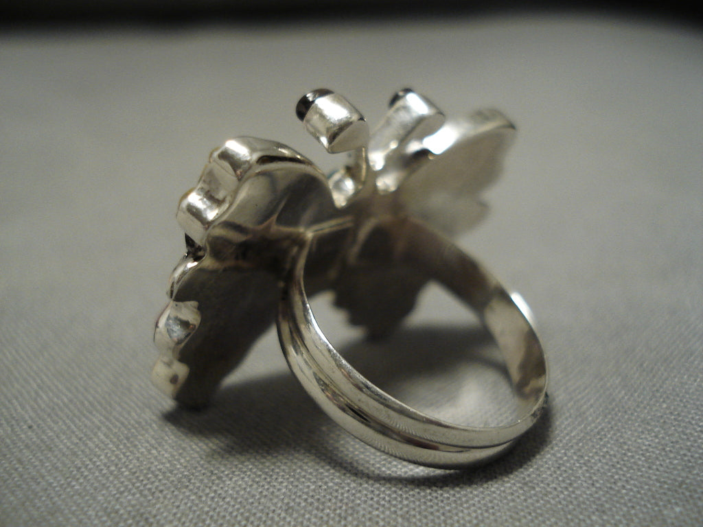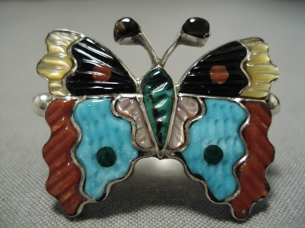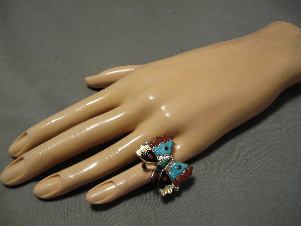 Striking Vintage Zuni Native American Turquoise Sterling Silver Ring Old