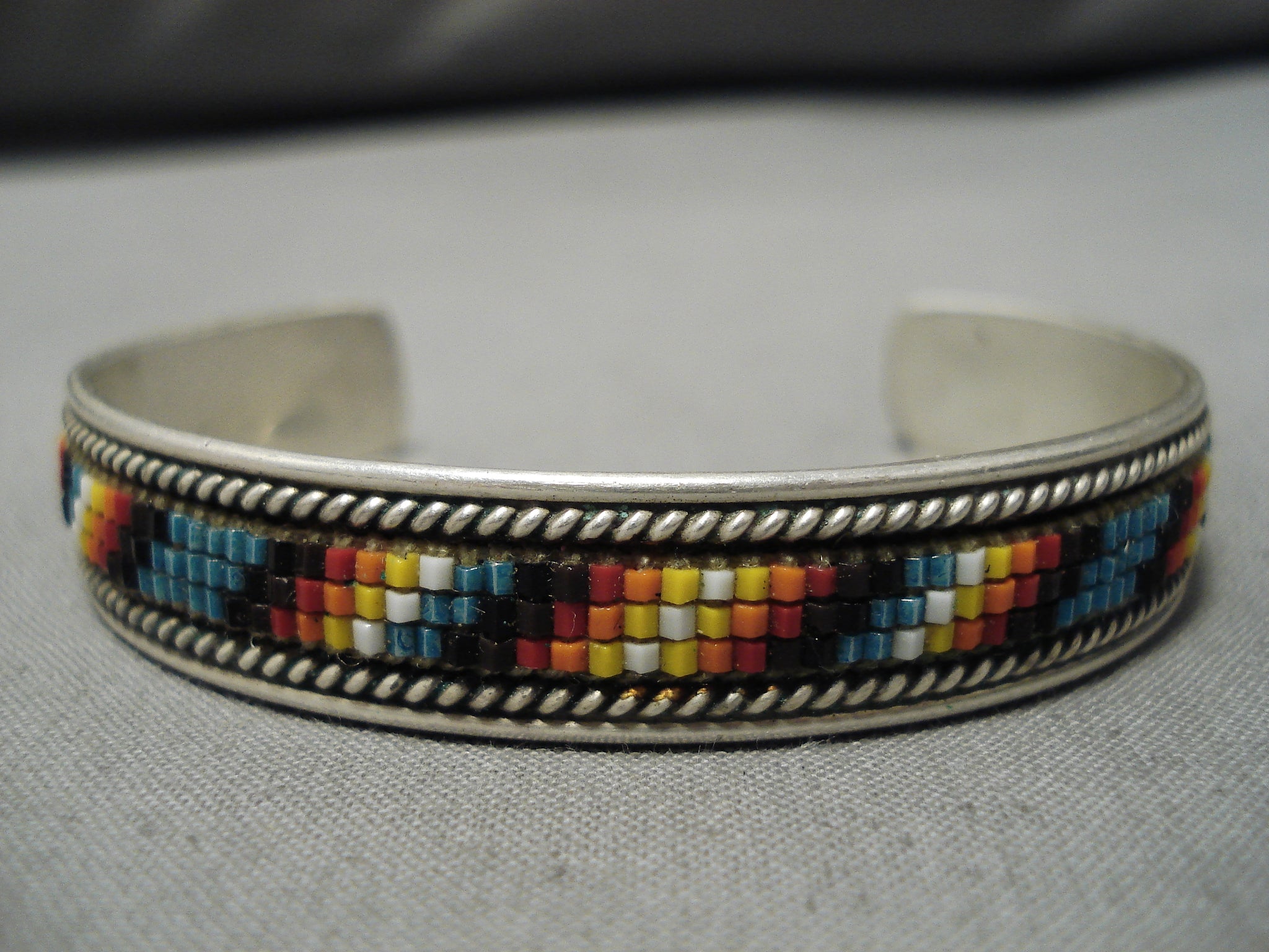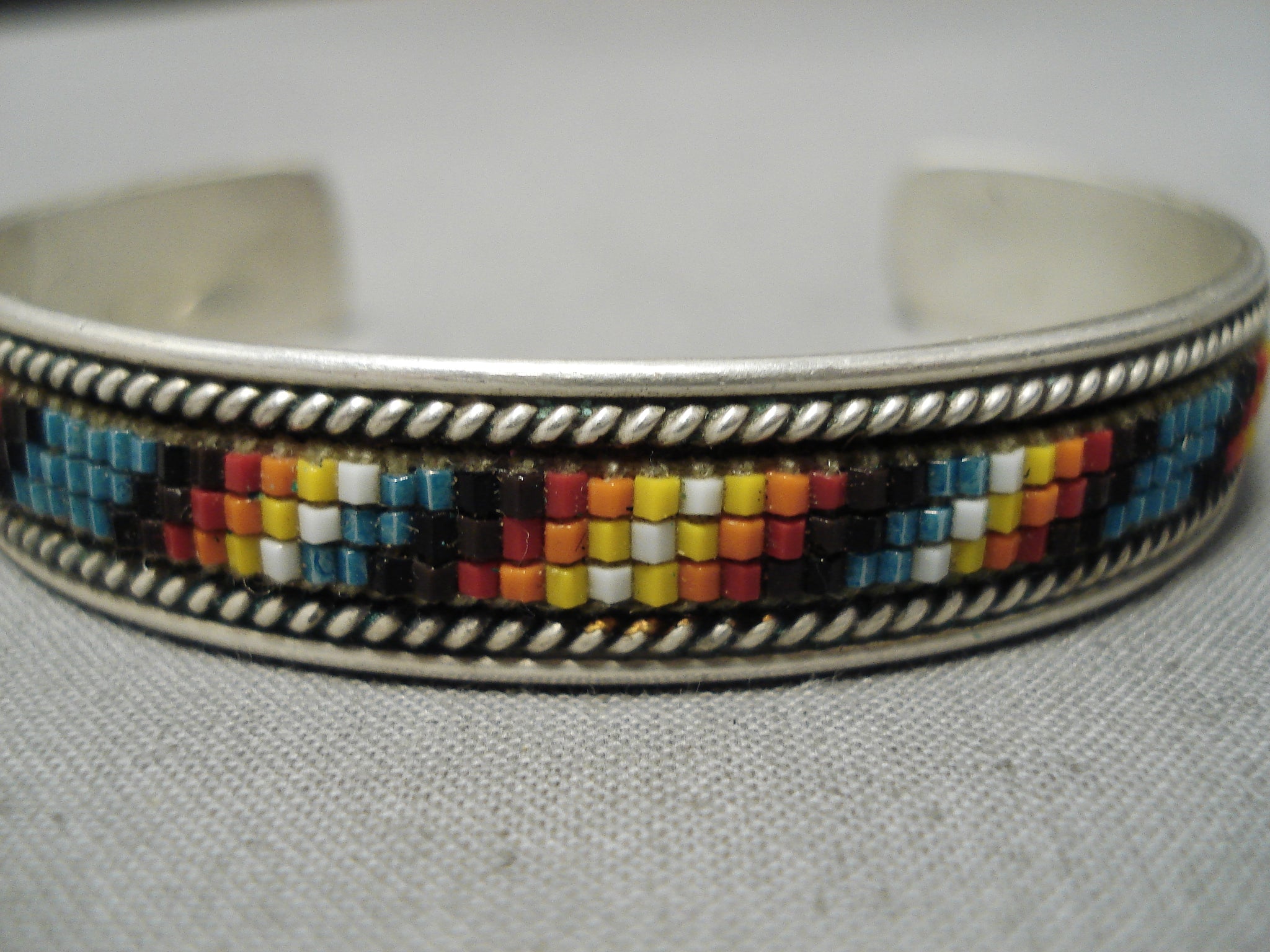 Striming Intricate Vintage Native American Navajo Turquoise Bead Sterling Silver Bracelet