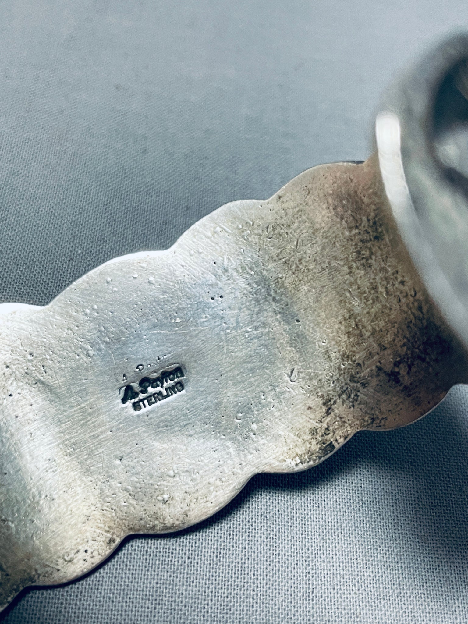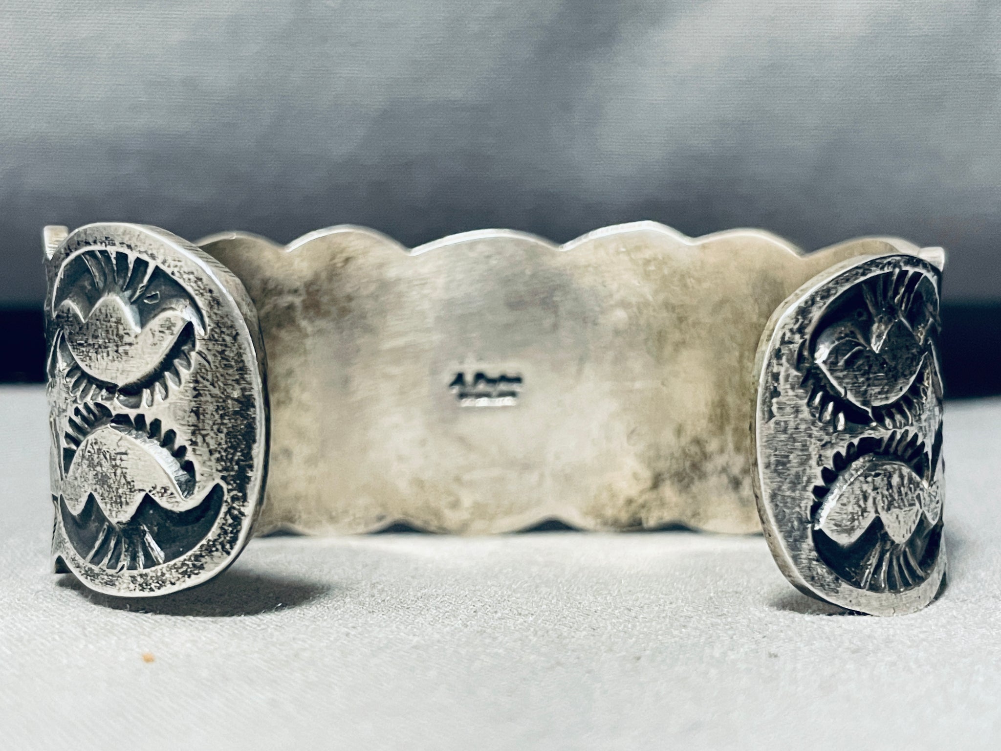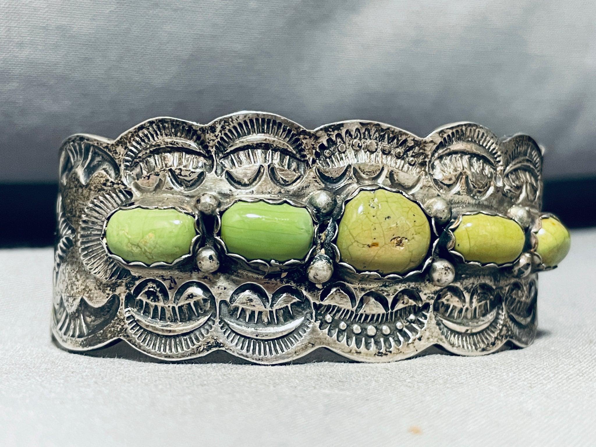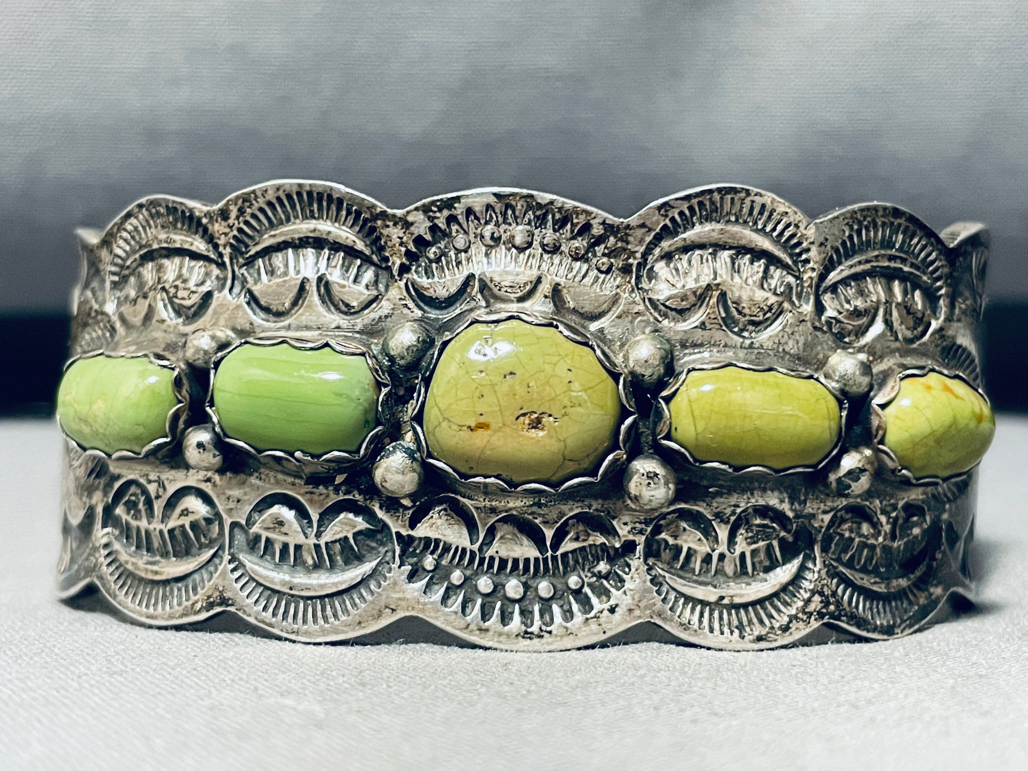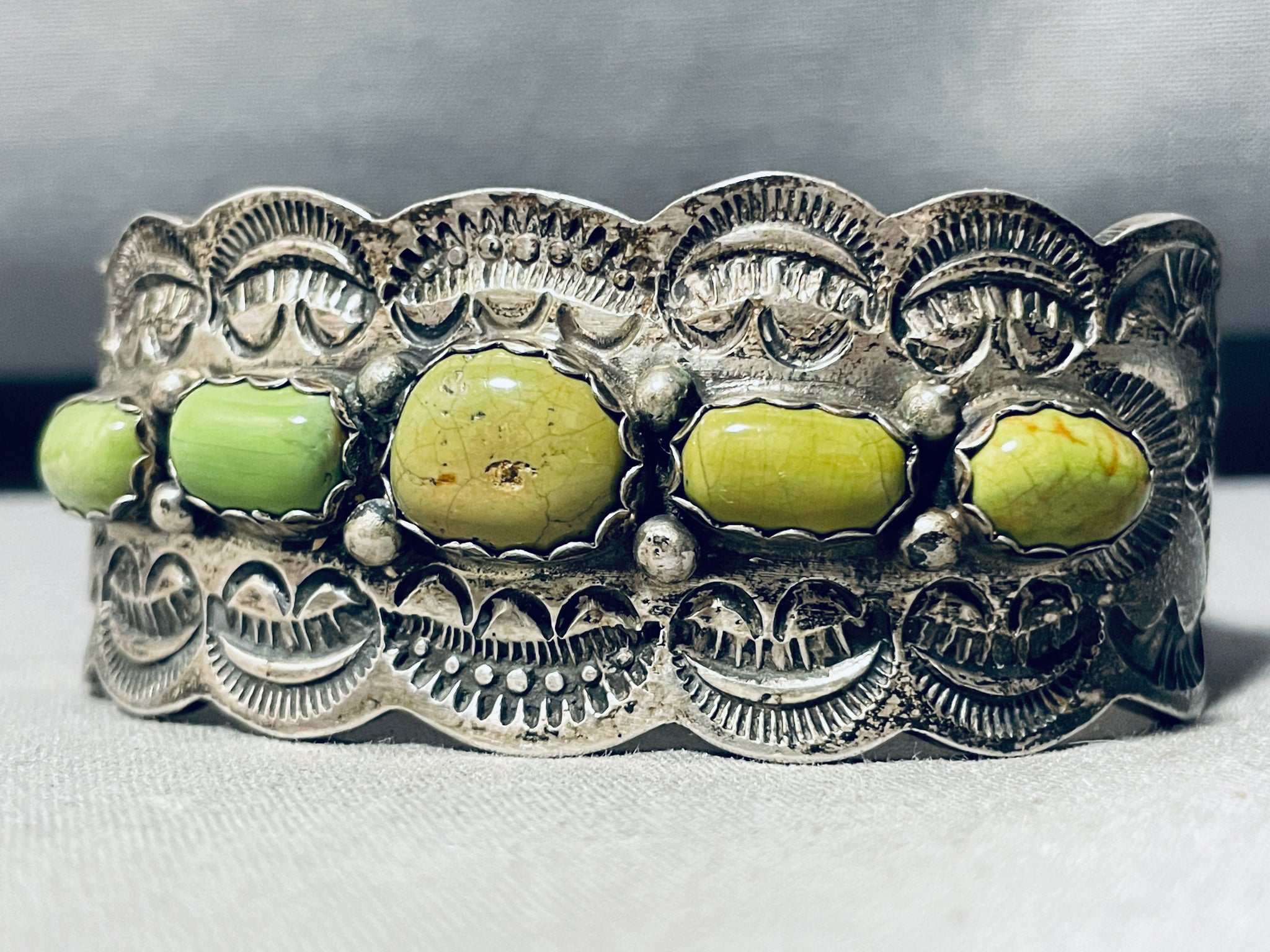 Stunner!! Vintage Native American Navajo Green Turquoise Sterling Silver Bracelet