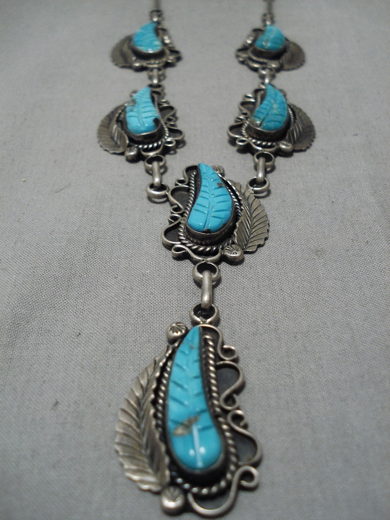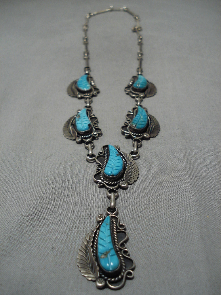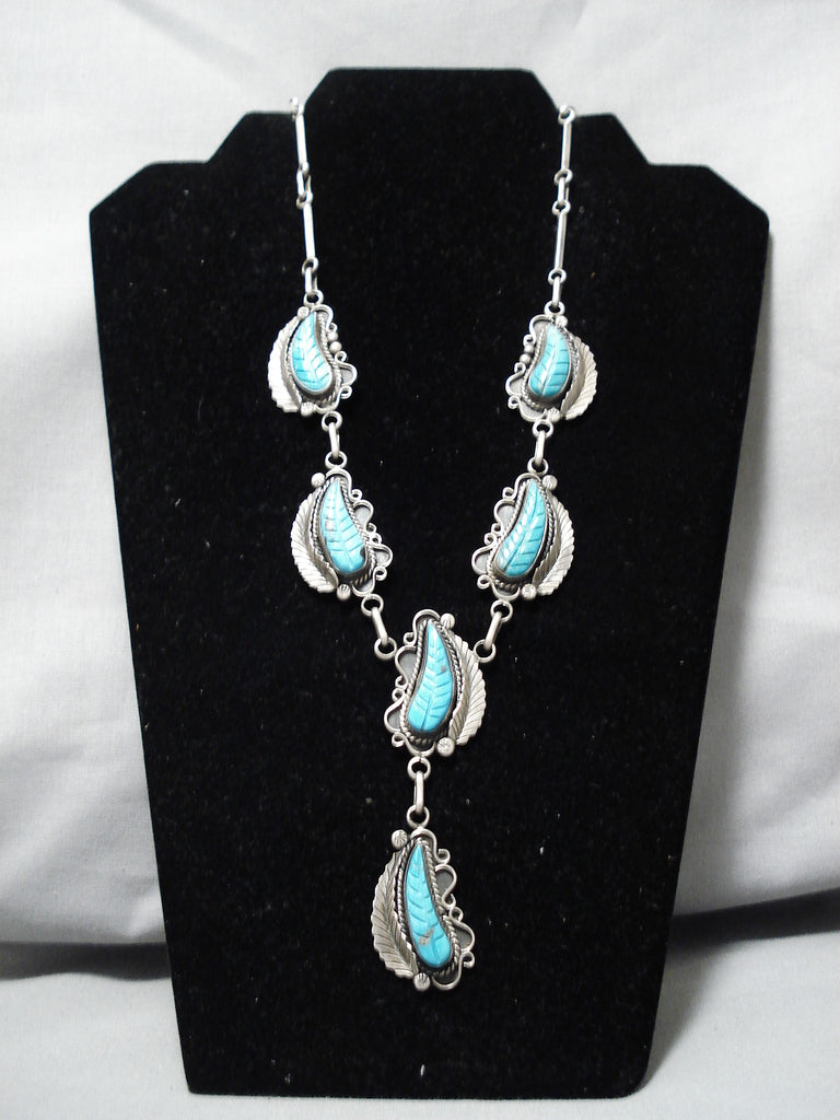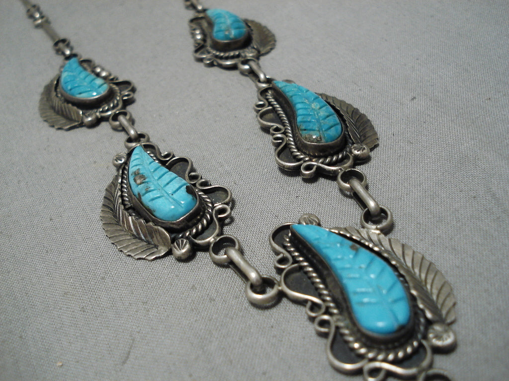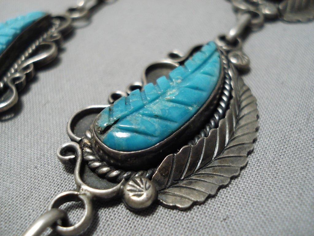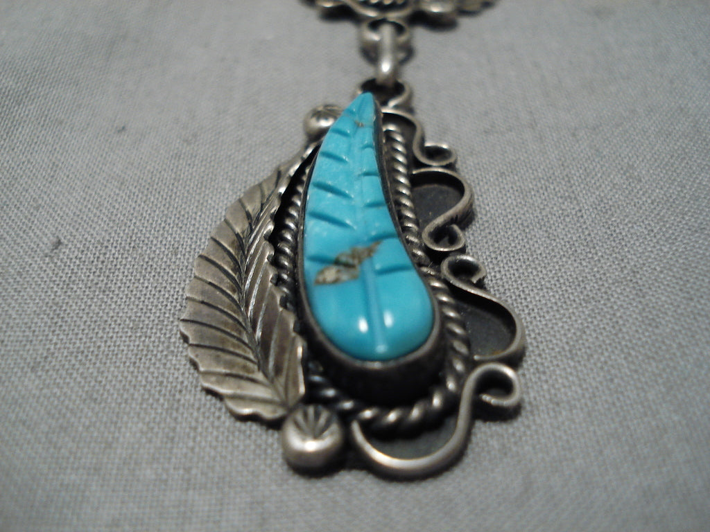 Stunning Angela Lee Turquoise Leaf Sterling Silver Native American Necklace