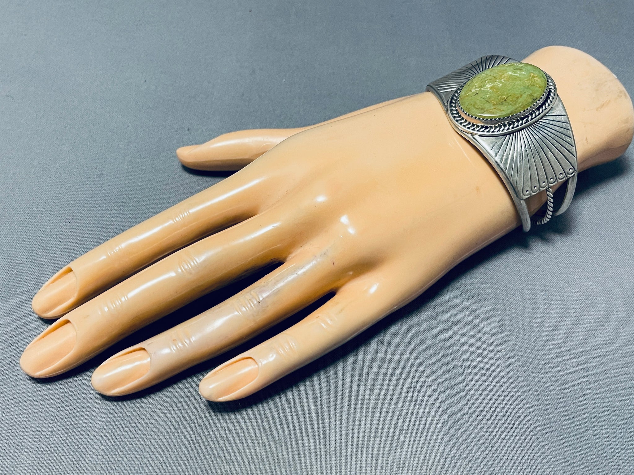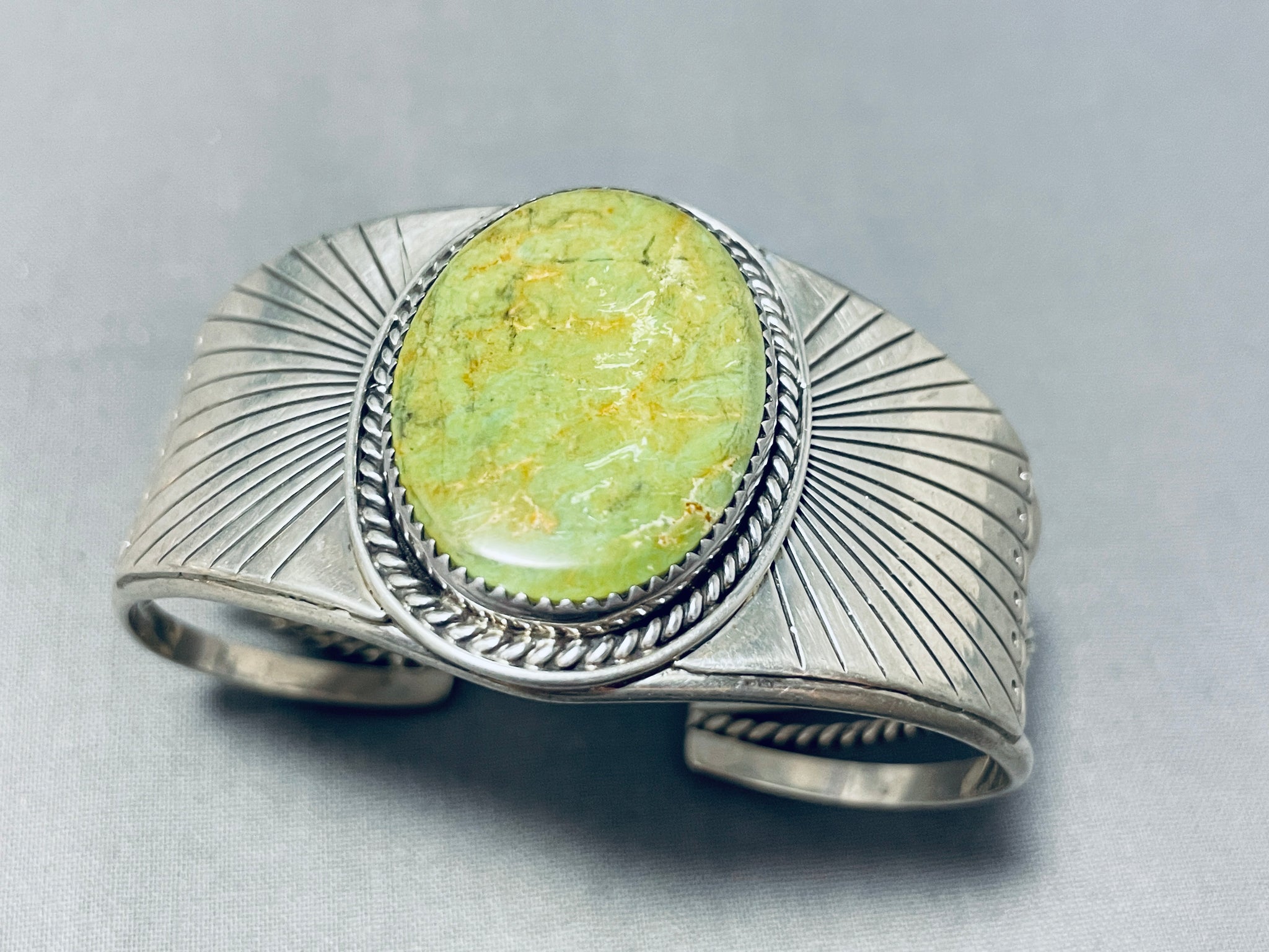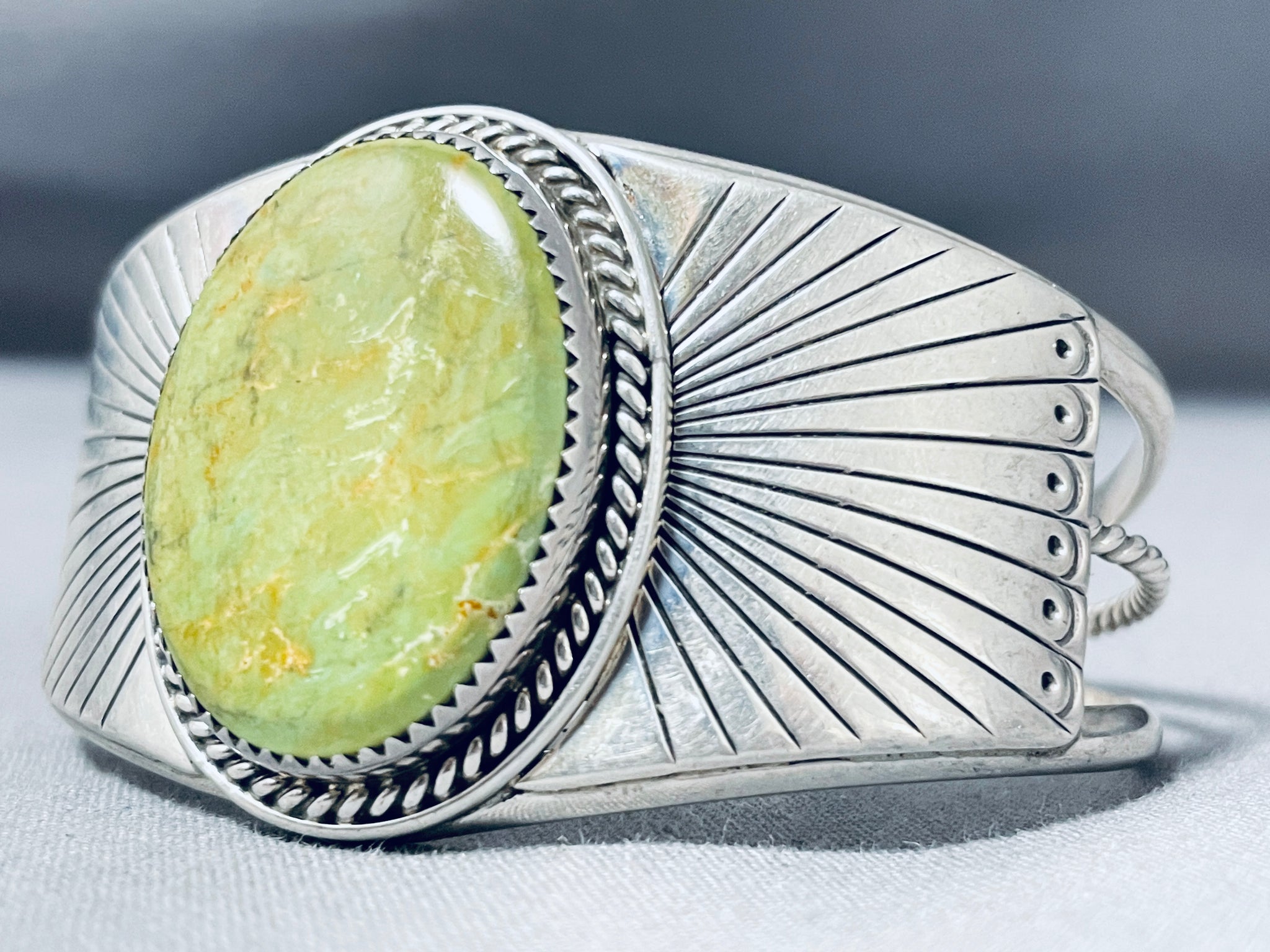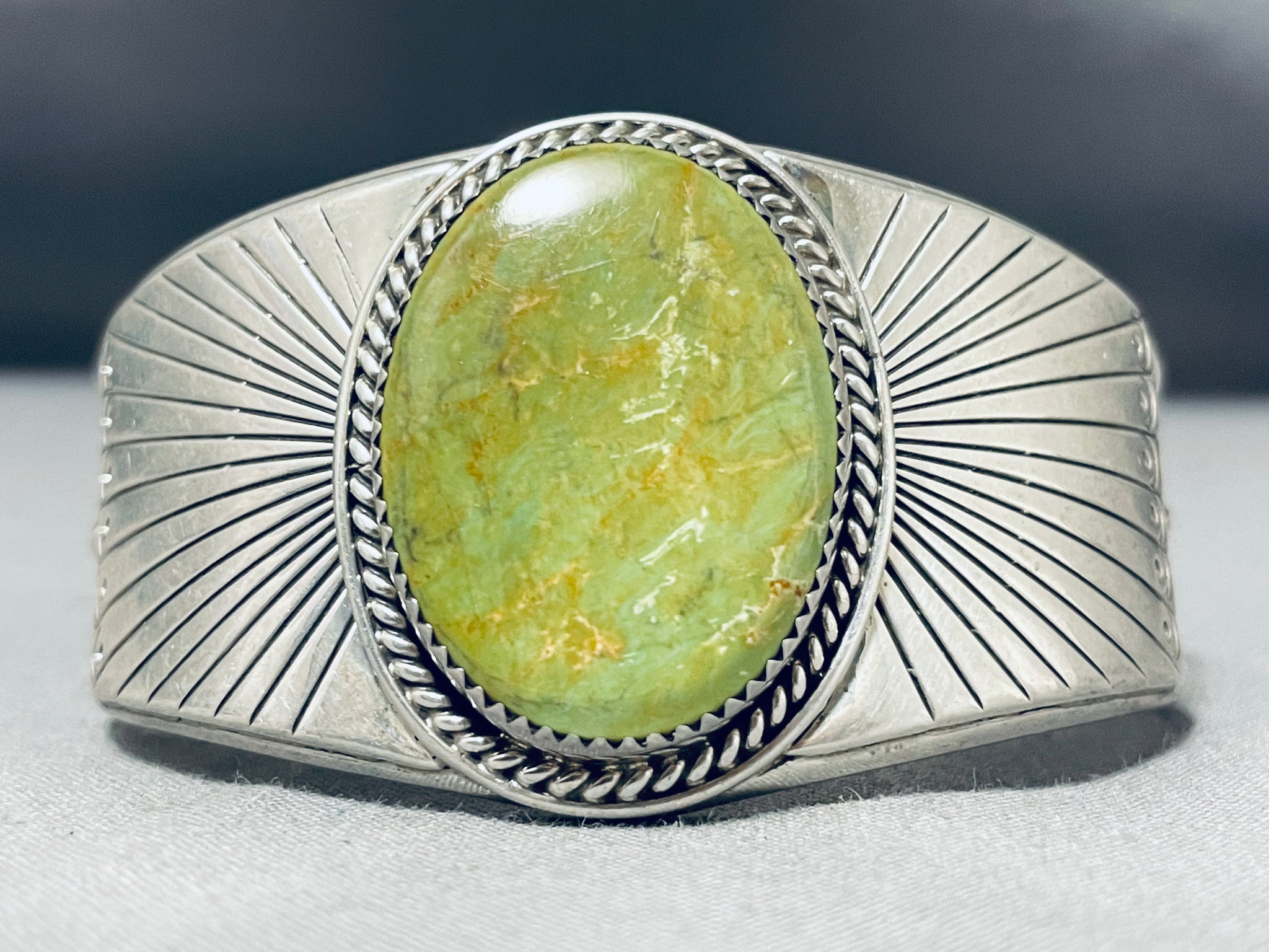Stunning Native American Navajo Sonora Green Turquoise Sterling Silver Bracelet