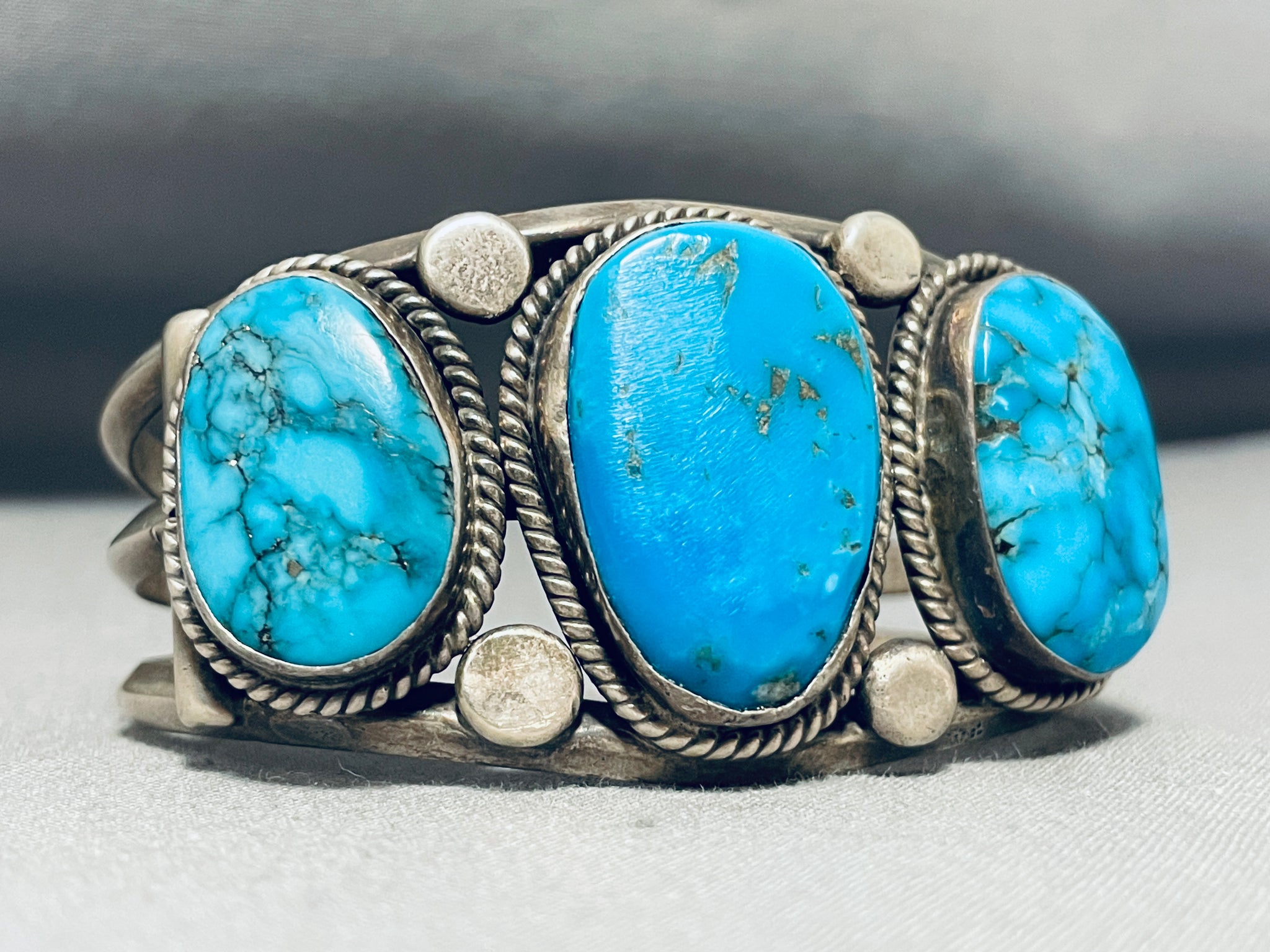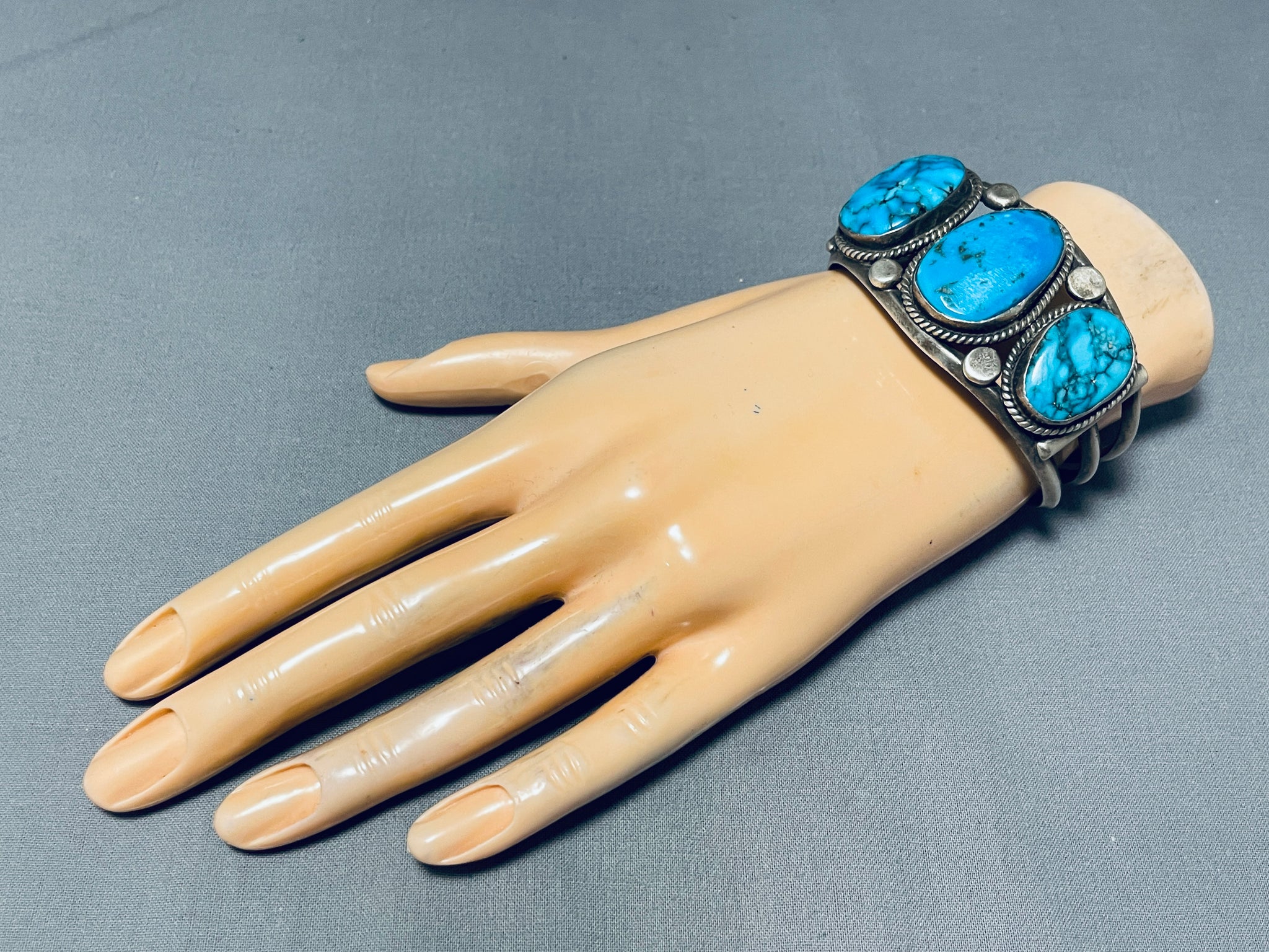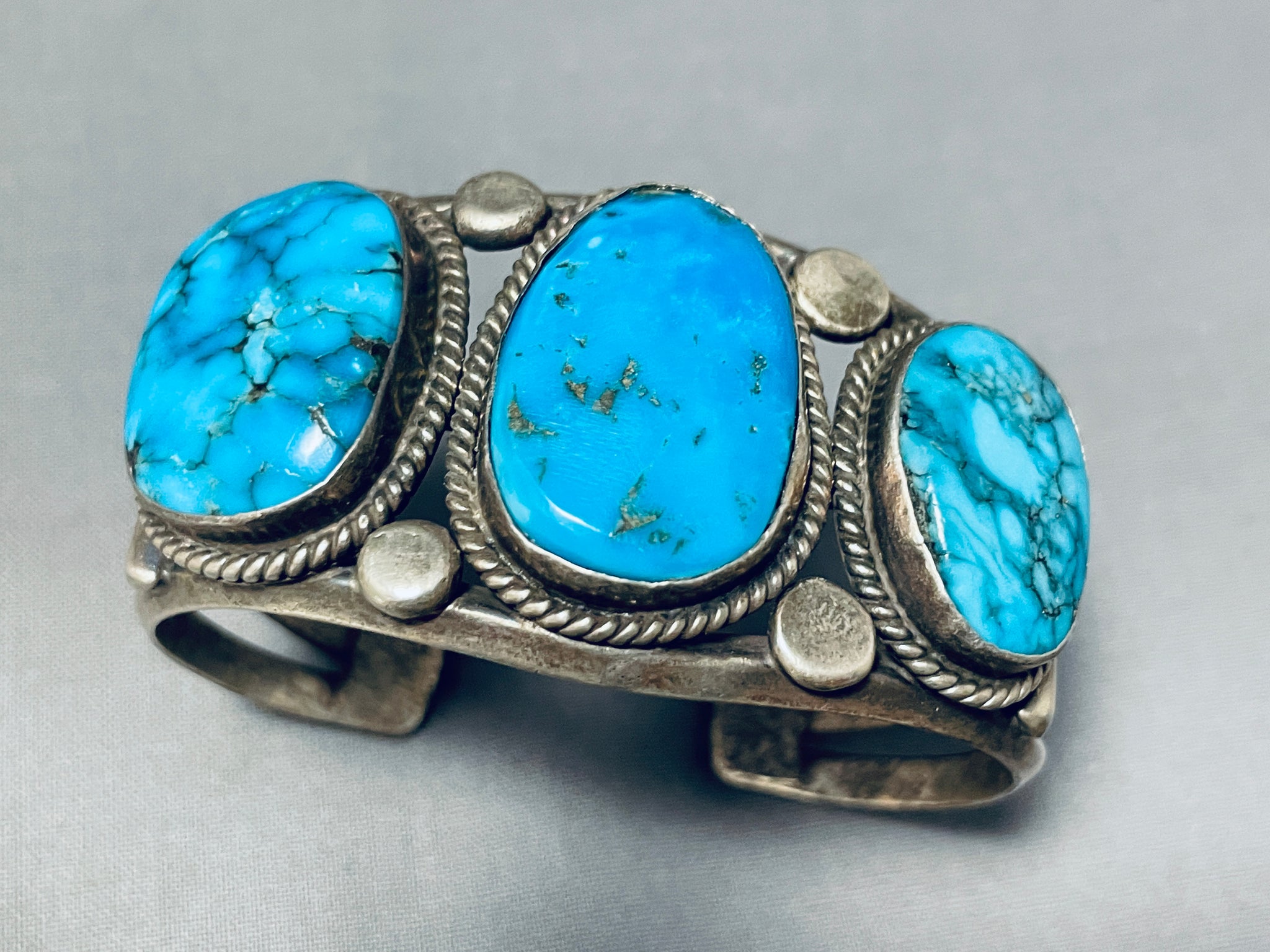Stunning Vintage Native American Navajo 3 Kingman Turquoise Sterling Silver Huge Bracelet
