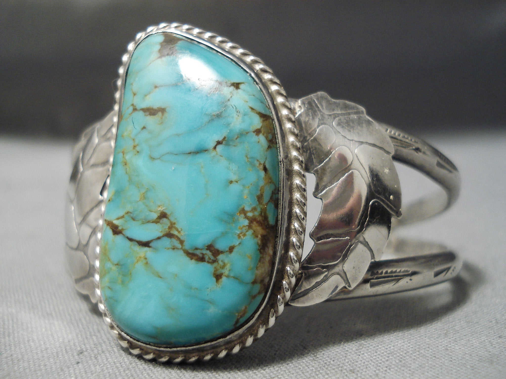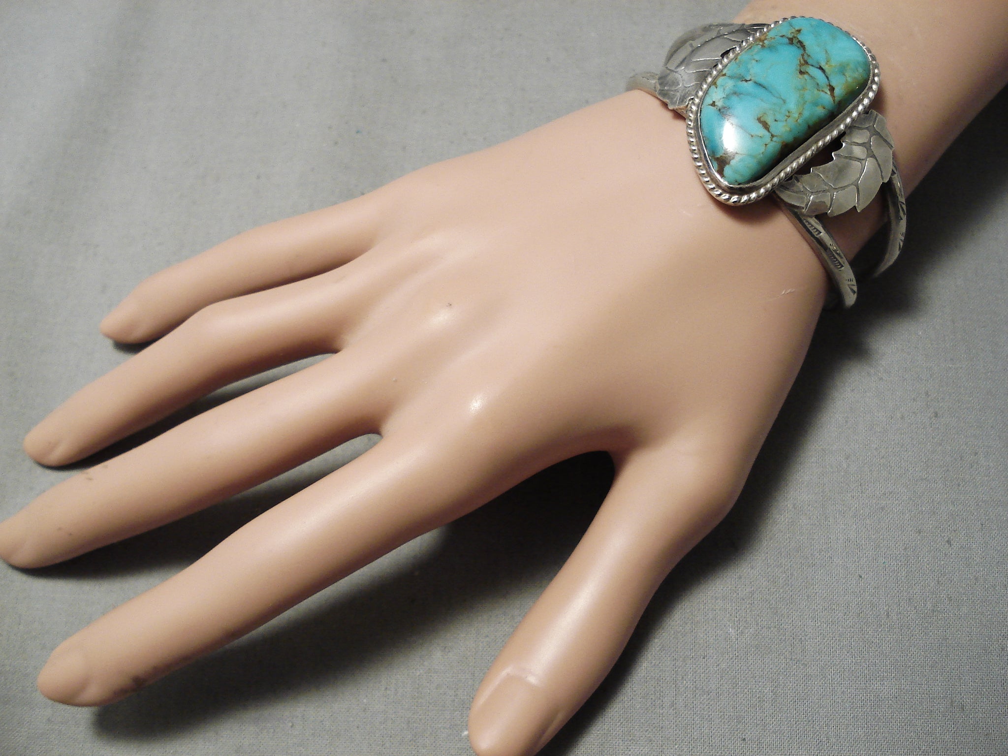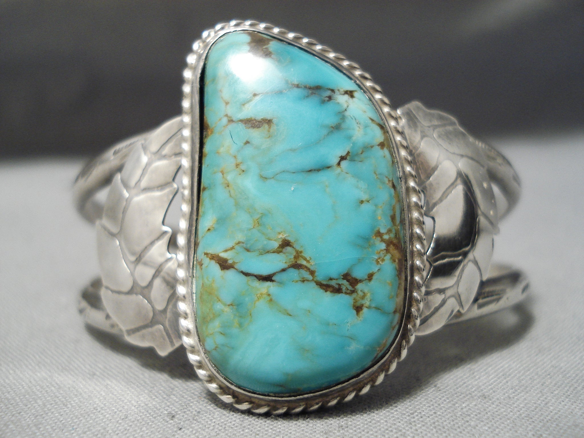 Stunning Vintage Native American Navajo Blue Diamonf Turquoise Sterling Silver Bracelet Old