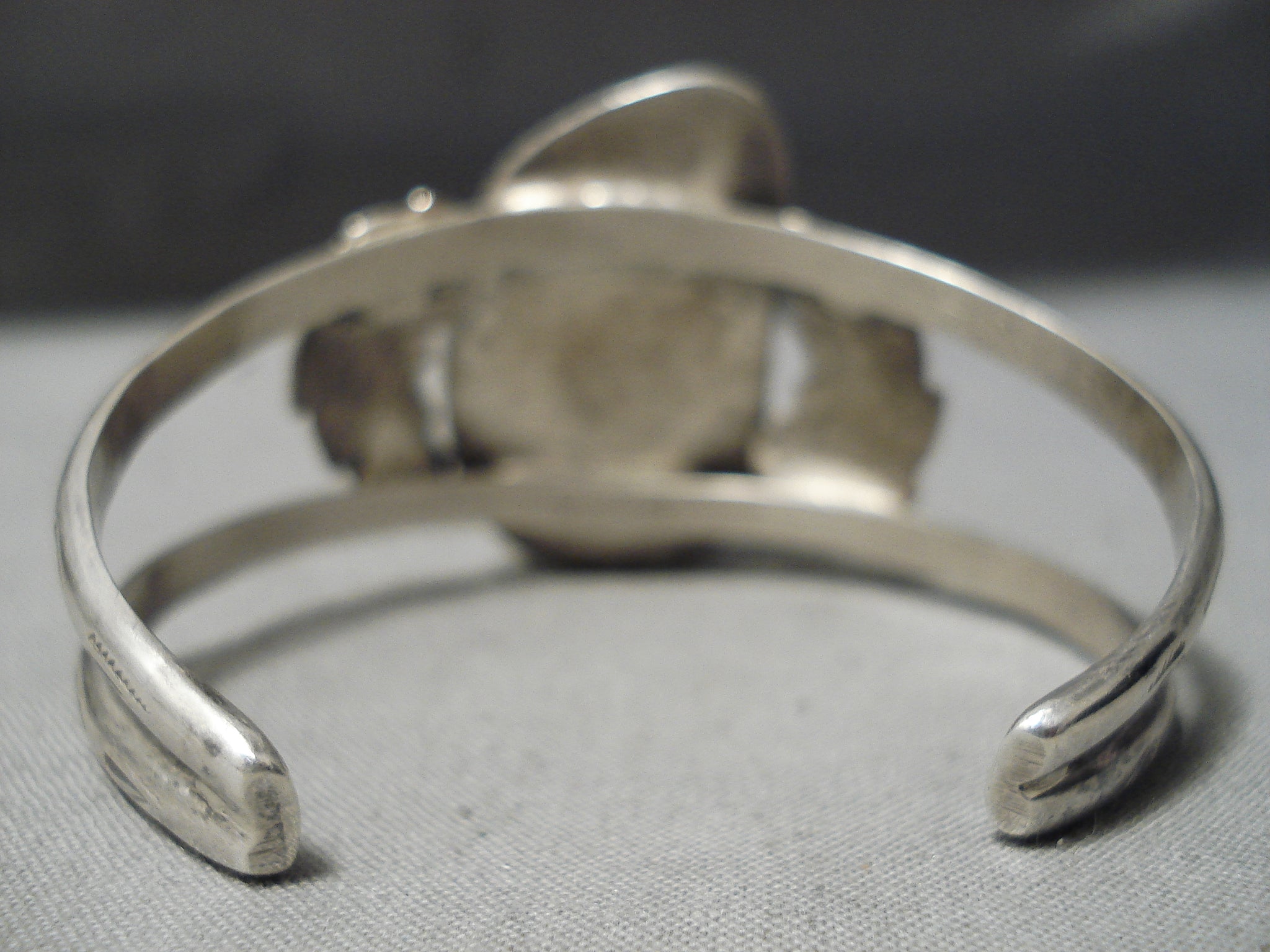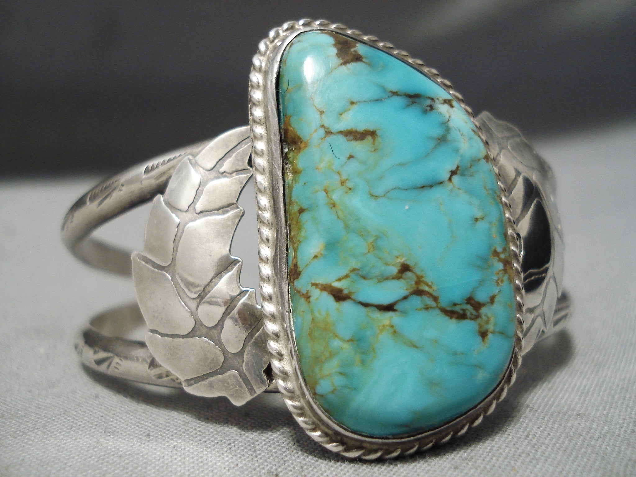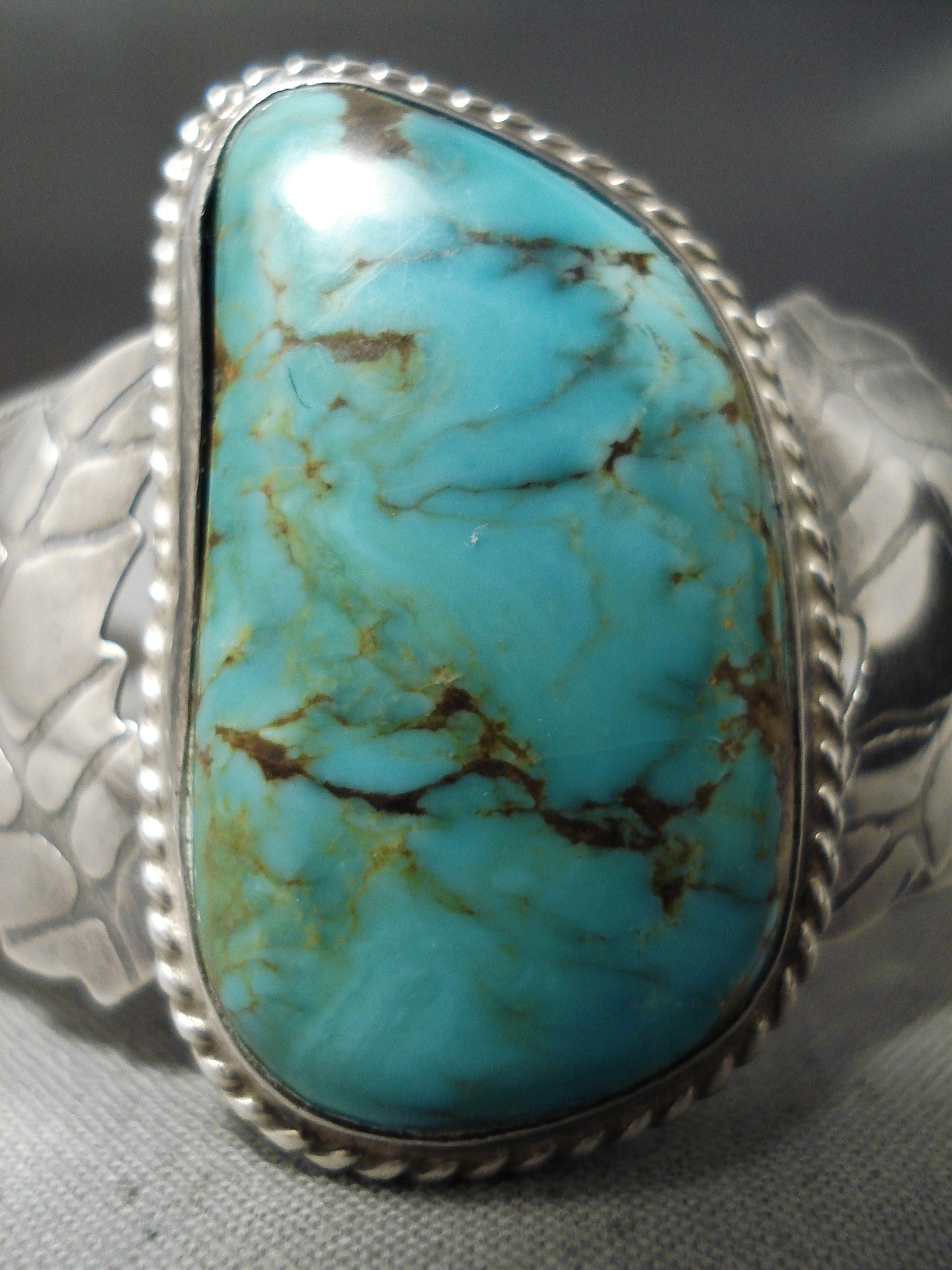 Stunning Vintage Native American Navajo Blue Diamonf Turquoise Sterling Silver Bracelet Old